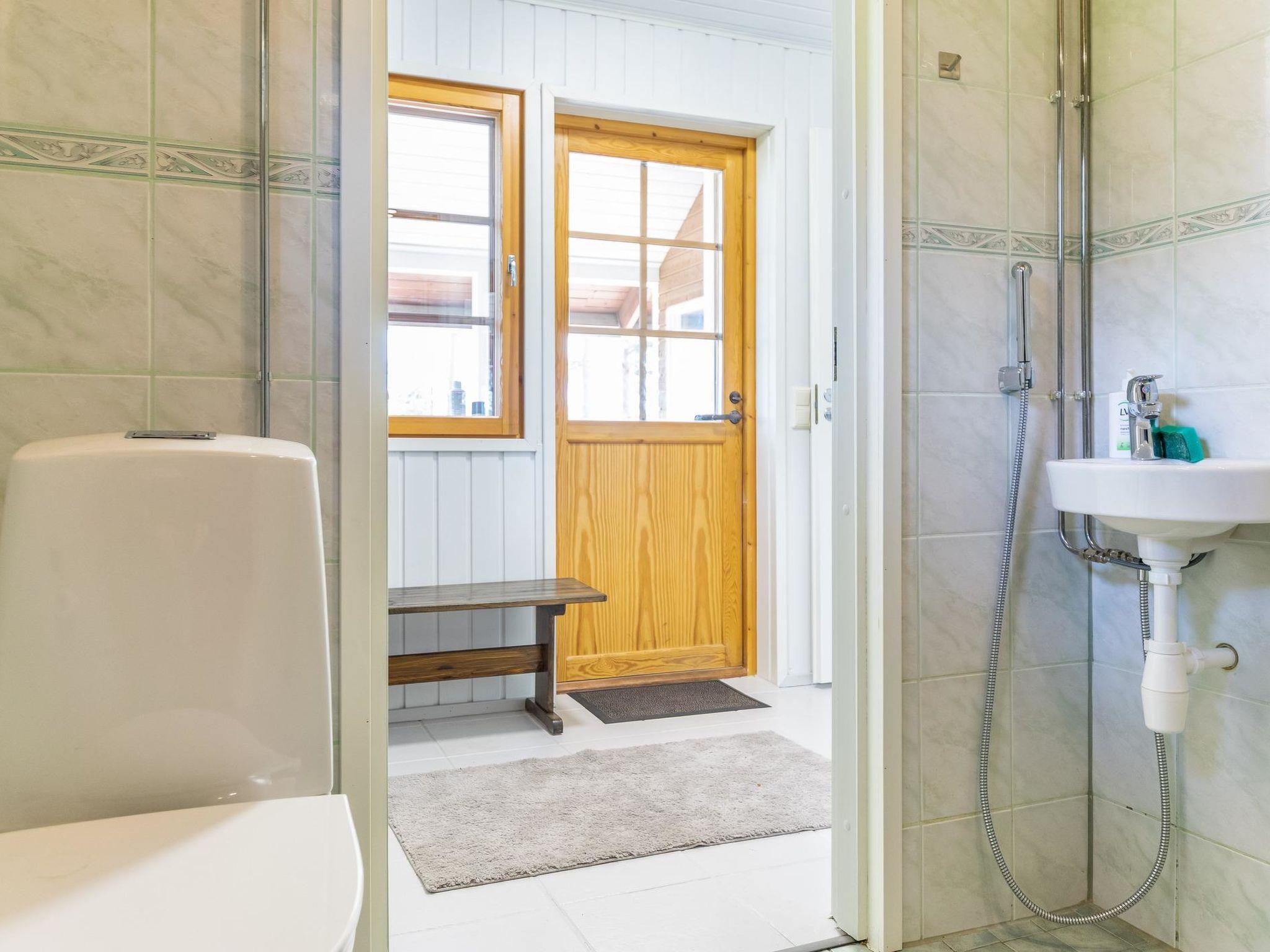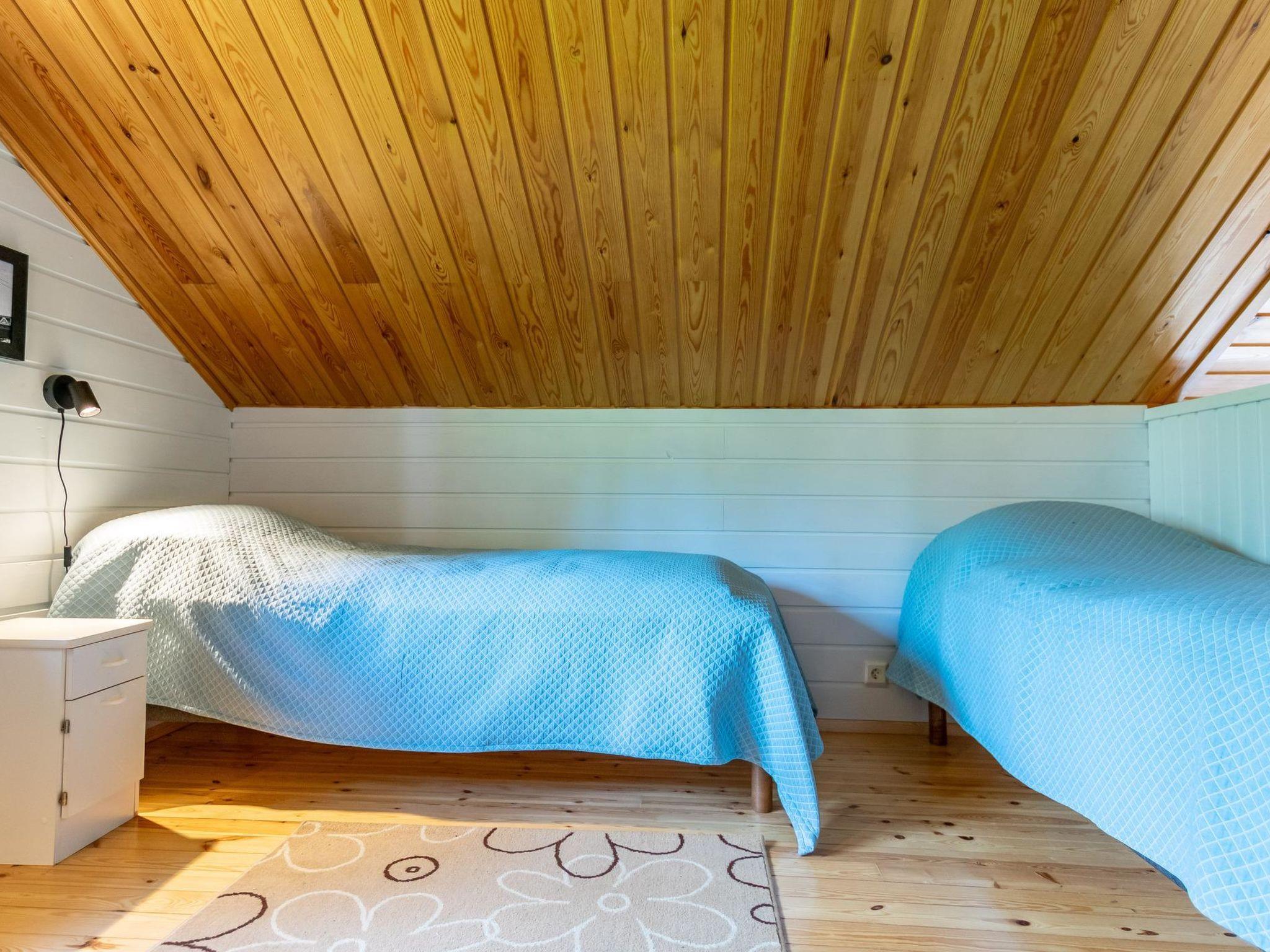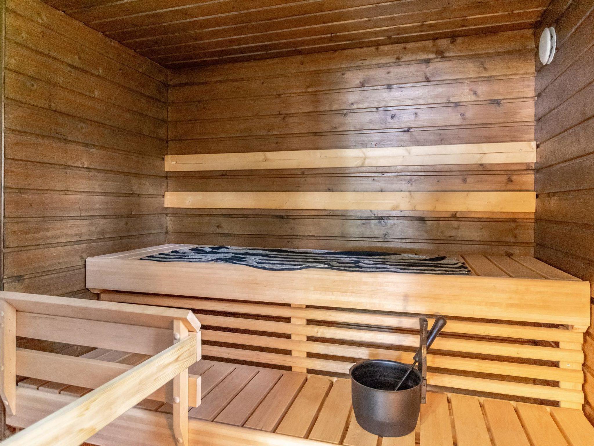 Downstairs there are two bedrooms. One bedroom has a double bed and the other two single beds. Downstairs there is also a sauna (wood-burning stove), a washroom with a shower and toilet, a dressing room with access to the terrace and a separate toilet. Upstairs is the loft with sleeping area for three persons.
