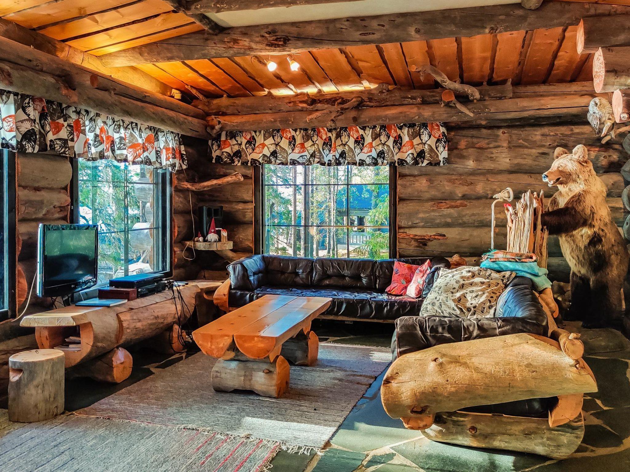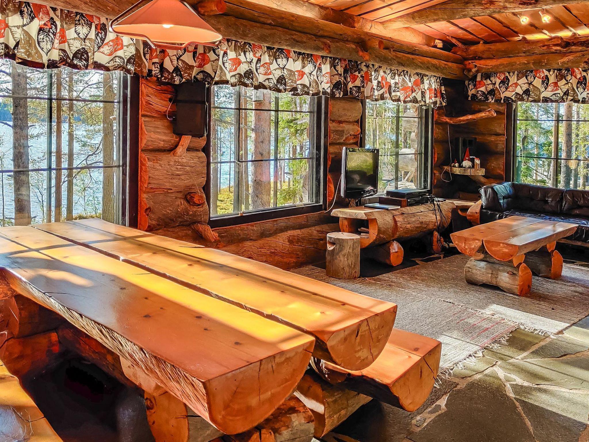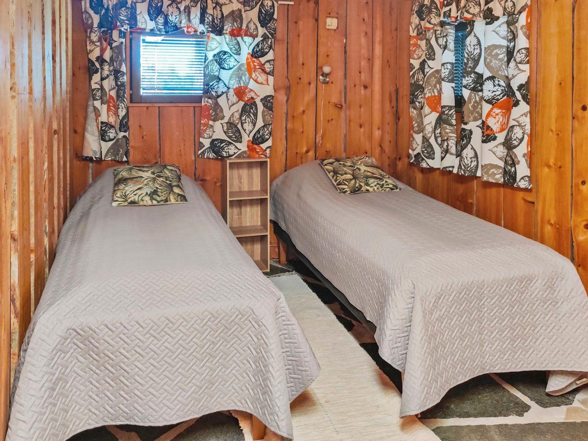 2-storey silverlog cottage 1993, kitchen, living room, bedroom double bed (width 160 cm), sleeping alcove 1 bed (120 cm wide), open porch, downstairs: bedroom 2 beds (width á 100 cm) + 1 bed (width á 80 cm), bedroom 2 beds (width á 100 cm), room with fireplace sofabed (width 160 cm), washroom, sauna ('ever-ready' elec. stove). There are 5 fireplaces in the cottage! Snowmobile port.