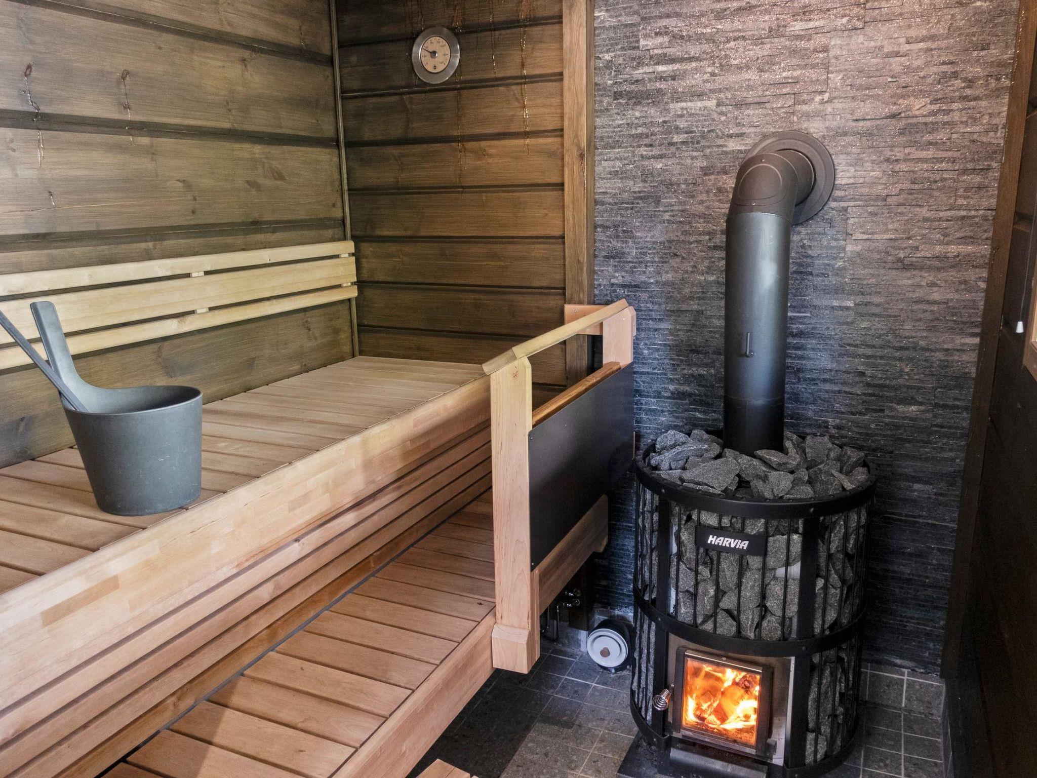 Log cabin, built in 2021. Living room/kitchen with bunk bed (lower bed 120 cm wide) and sofa bed. Sauna with wood-burning sauna stove, washroom/WC in connection with the sauna, access to the sauna via the porch.