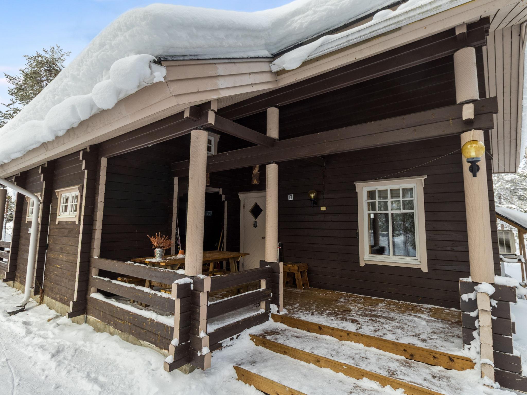 Apartment in semi-detached log building, 1989, living room/ kitchen, in ground floor there is sofa bed for two, upstairs 2 bedrooms, one with 2 beds, one with bunk bed with extendable lower bed. Additionally, sleeping alcove with sloping ceiling 2 beds, sauna with elec. stove, washroom, dressing room, open porch.