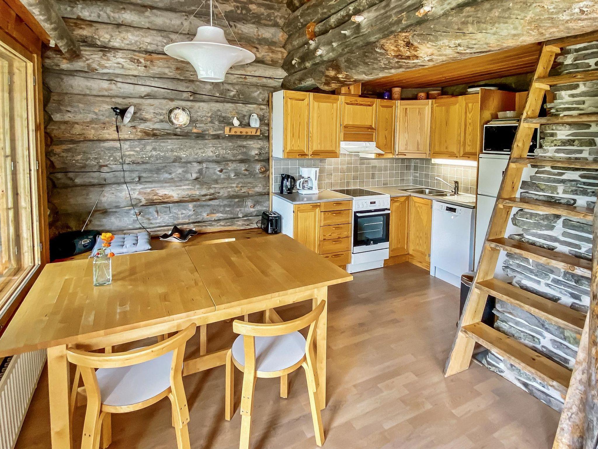 75 km east from Kemijärvi, location in Sallatunturi tourist center, Lake Keselmäjärvi 100 m (public beach, road between cottage and beach). Silverlog-detached house built in 1990, combined living room-kitchen: a sofa bed, bedroom: double bed (new matresses in 2022), bedroom: bunk bed, loft (20 square meters, steep stairs): 2 beds, sauna (electric stove), bathroom (2 showers and toilet), separate toilet, balcony. Sauna and bathroom renovated totally in 2013. A large storage (no heating), in which for example the possibility to maintenance of skis.