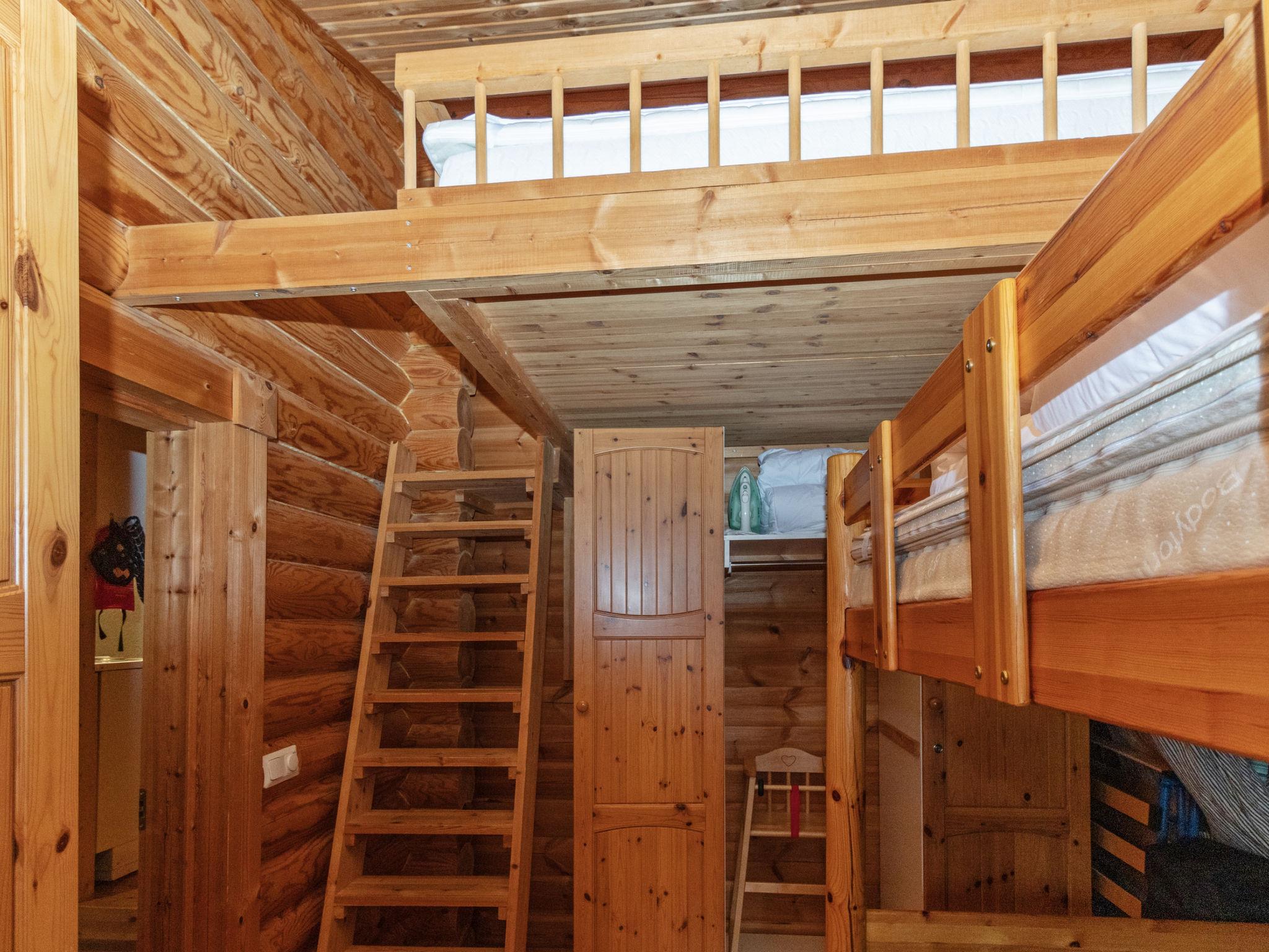 Round log cabin, built in 1991. The living room with sofa bed, bedroom with double bed, another bedroom with bunk bed (width 120 cm), bedroom also has a loft (containing 2 mattresses), sauna, washroom and separate WC.