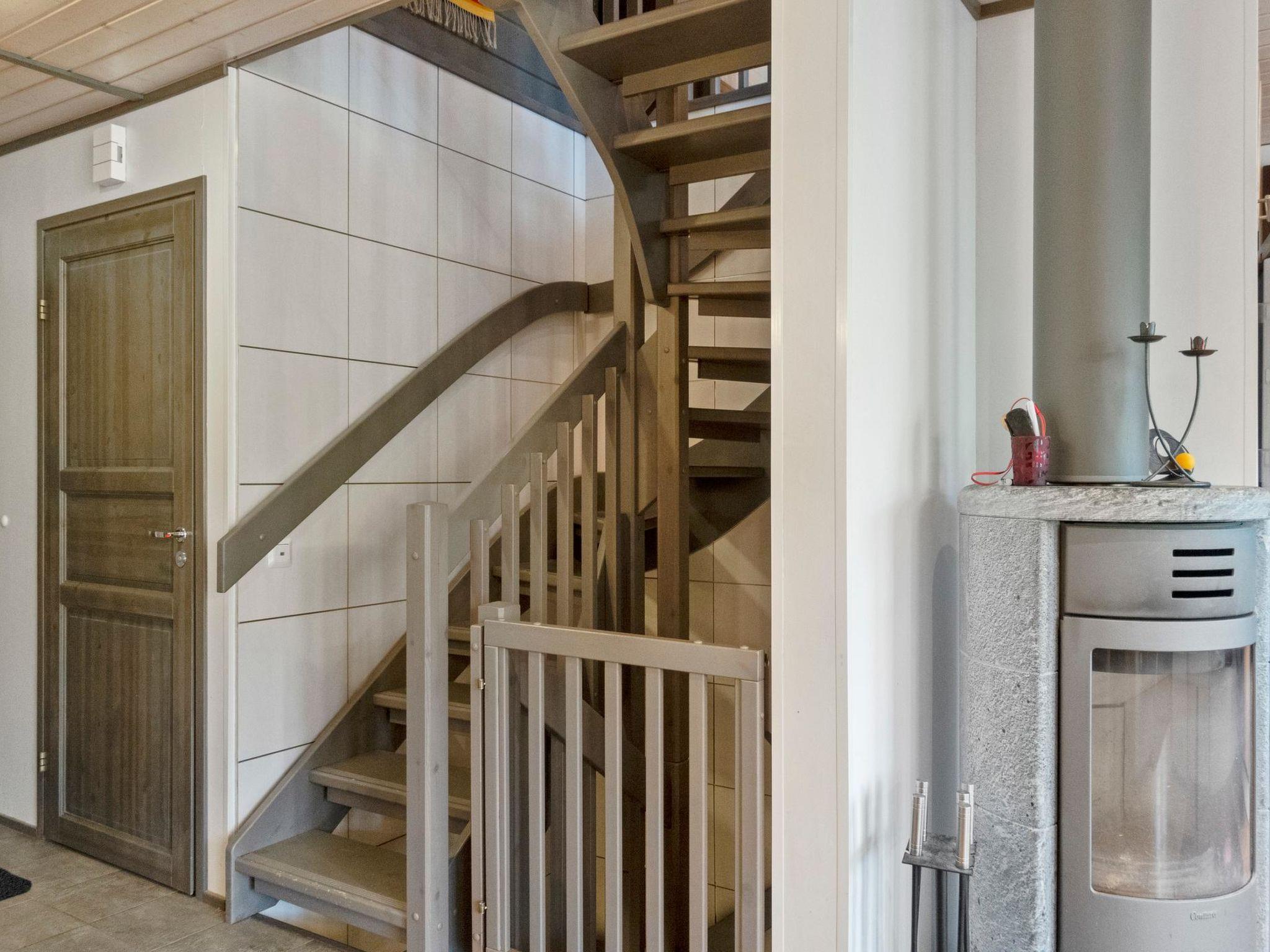On the ground floor there is sauna, washroom, bedroom with 2 beds (no window), living area/utility room, spreadable sofa and separate WC. Exit to the outside and also to the garage.