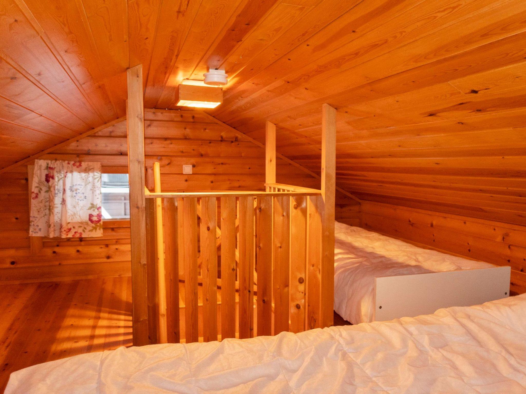 Living room/kitchen, 2 beds in the bedroom, 2 separate beds and double bed on upper floor. The upper floor (about 40 m²) has low room height, maximum height is 1.5 m and there are steep stairs. Sauna and washroom/WC.