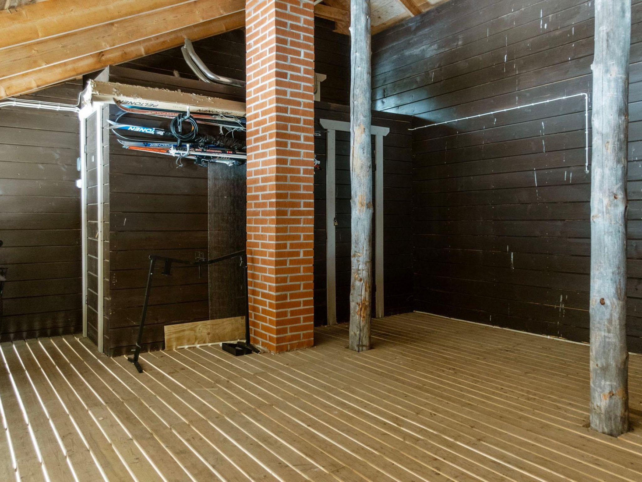 The apartment also has a sauna and washroom/WC. Between the apartments is a covered space. This space contains an outdoor fireplace, which is shared with other apartments. In addition, there is a loft space between the apartments (no heating), where you can do, for example, ski maintenance and equipment storage. The space also has a ski waxing table.