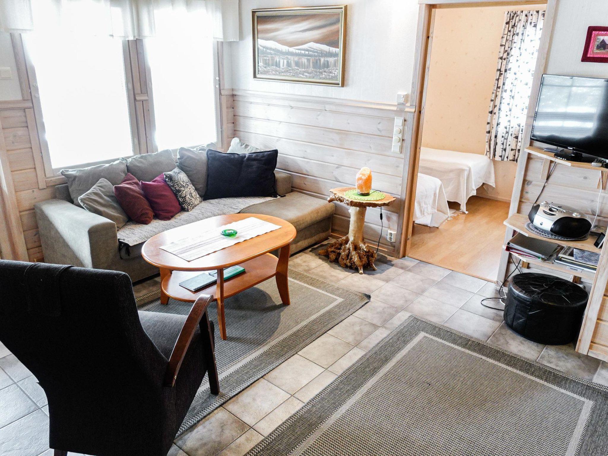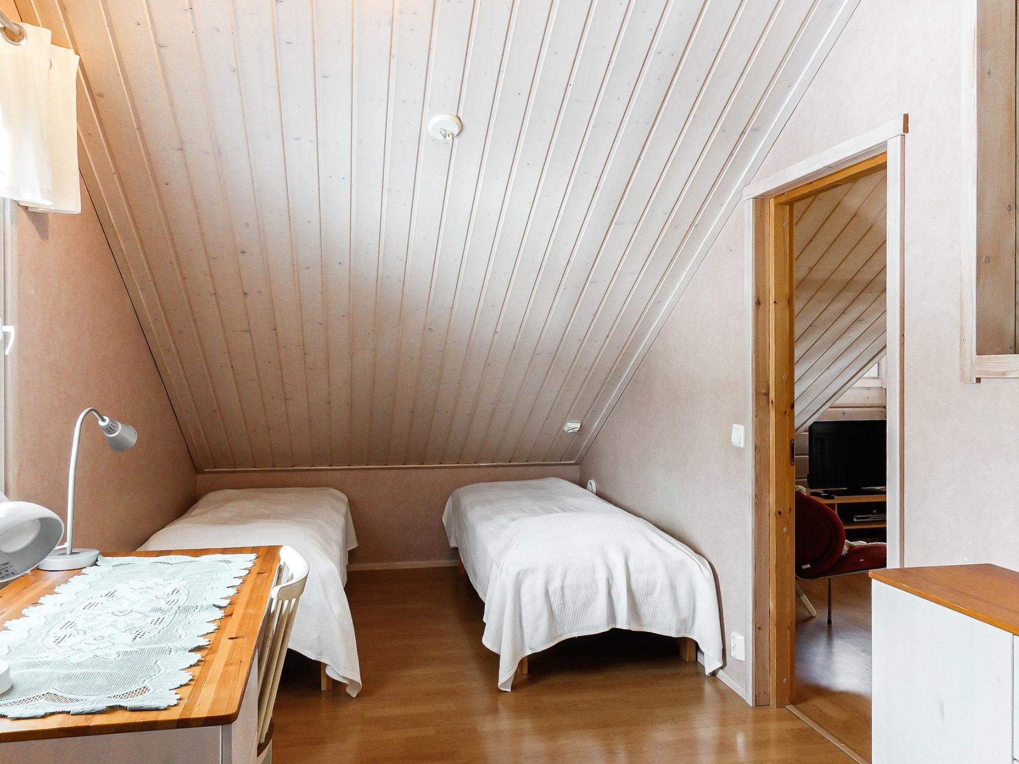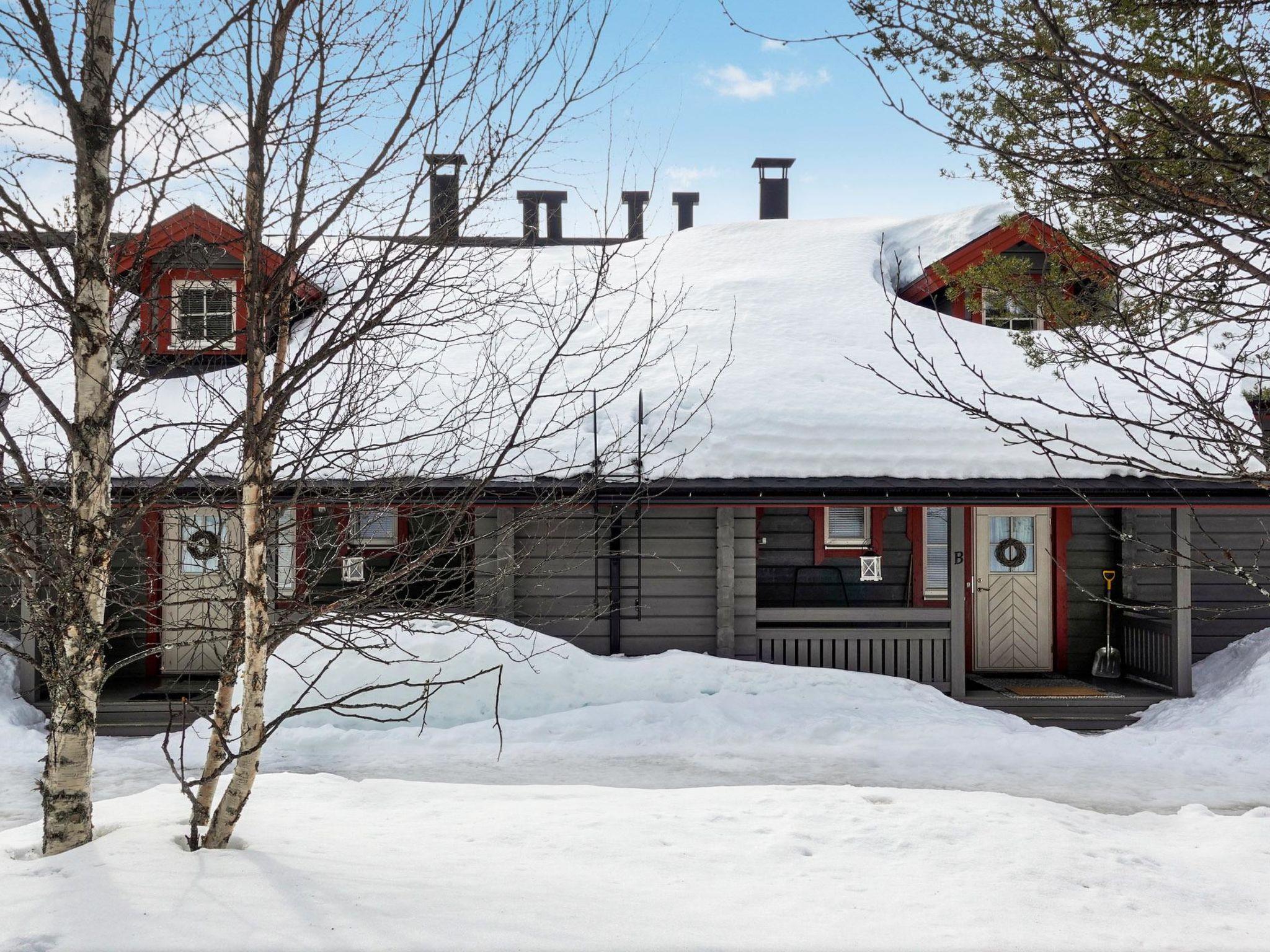 118 km north of Rovaniemi, in Orresokka area of Luosto Tourism Resort. One half of log (heat-hardened log type) semi-detached unit 2006, living room/kitchen, bedroom 2 beds, bedroom 2 beds, sleeping loft, which has a bedroom with 4 beds, sauna, washroom, open porch, WC also upstairs.