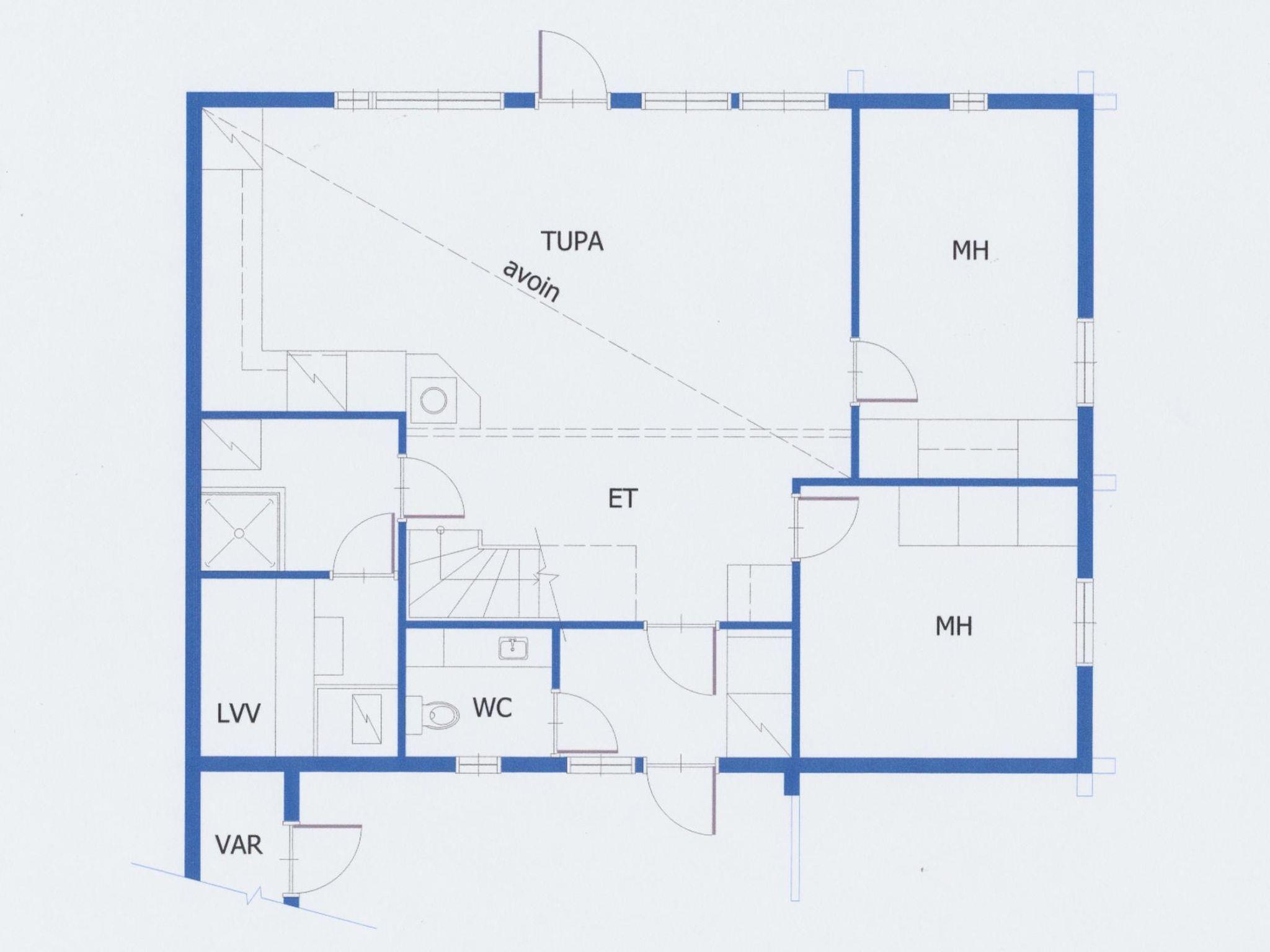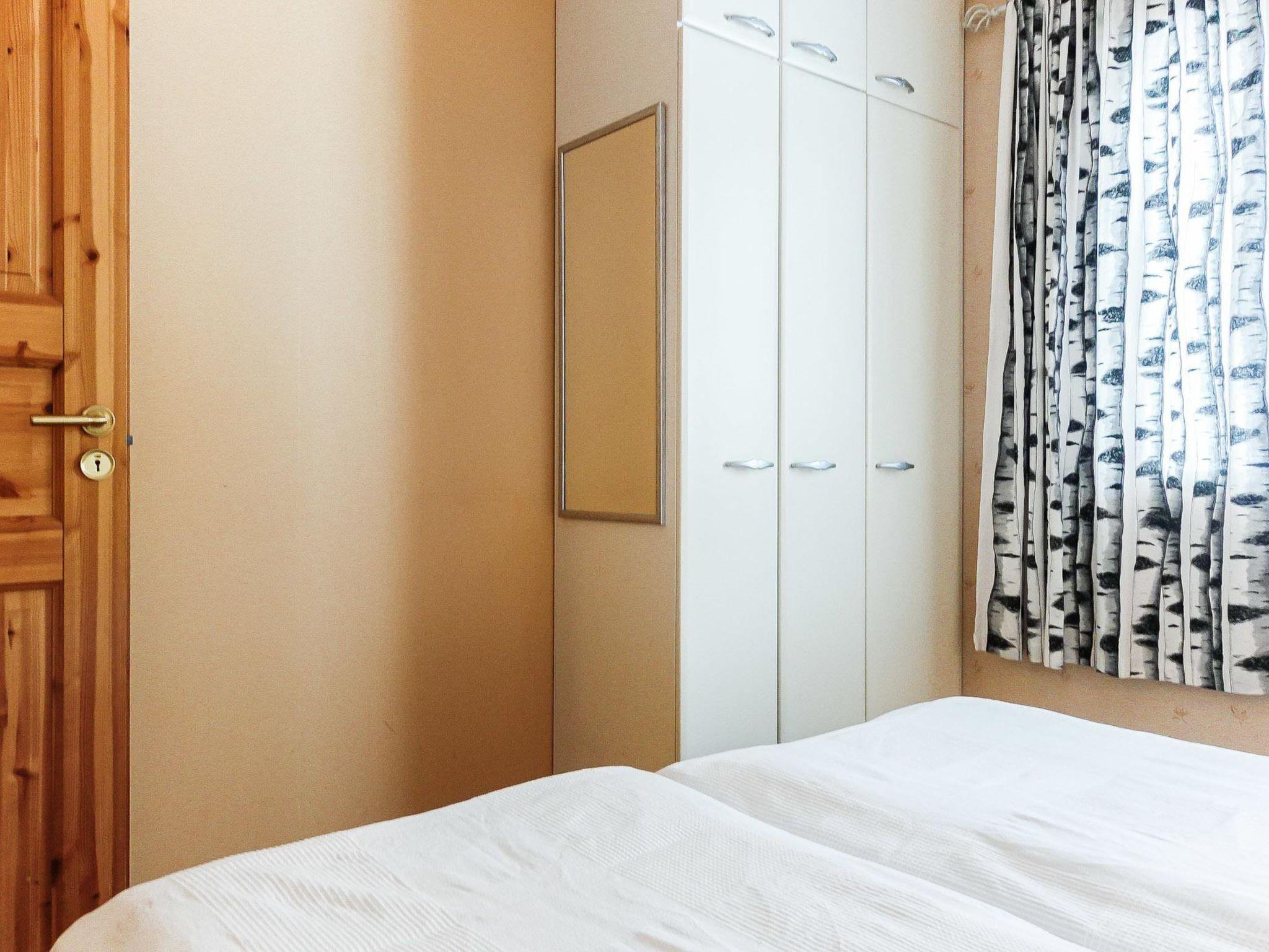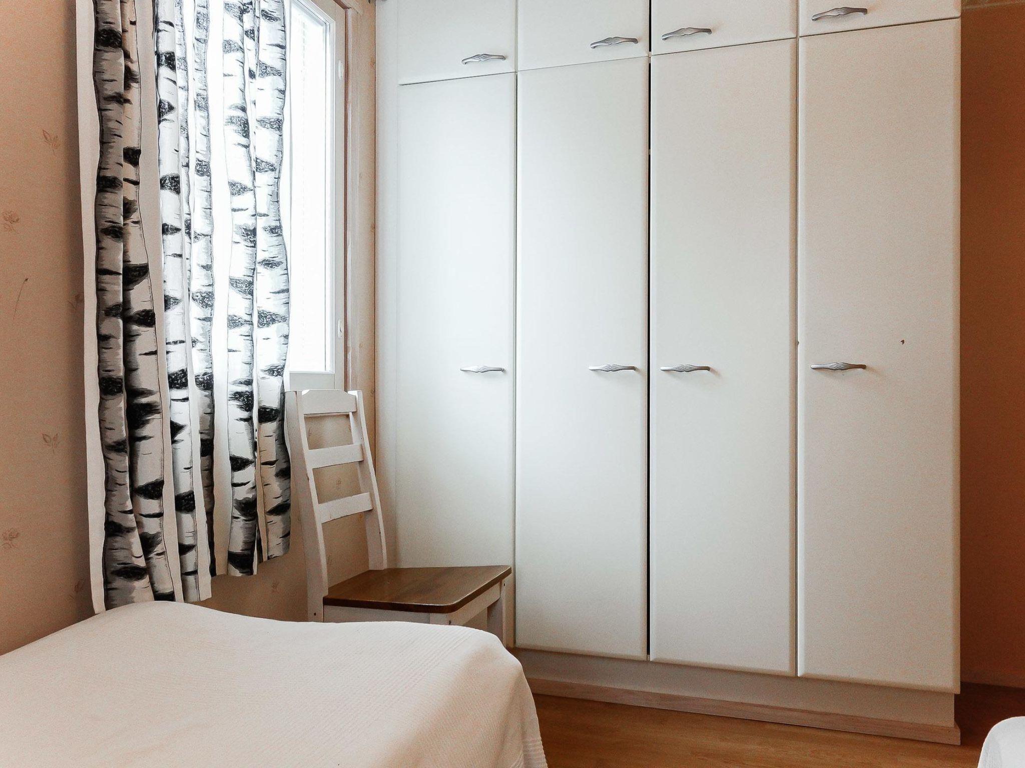 118 km north of Rovaniemi, in Orresokka area of Luosto Tourism Resort. One half of log (heat-hardened log type) semi-detached unit 2006, living room/kitchen, bedroom 2 beds, bedroom 2 beds, sleeping loft, which has a bedroom with 4 beds, sauna, washroom, open porch, WC also upstairs.