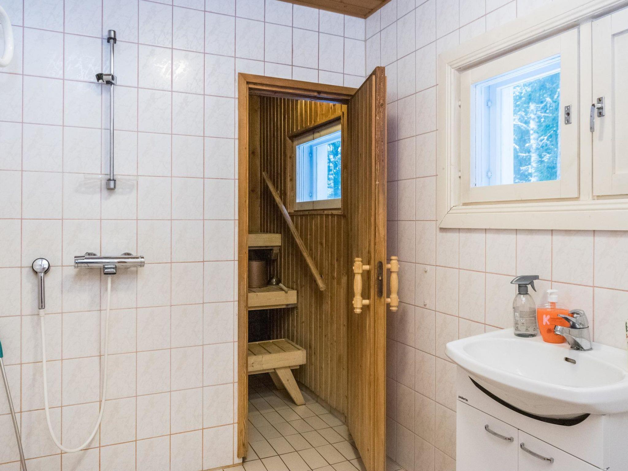 Wooden cabin 1992, living room/kitchen, 2 bedrooms with 2 beds in each, washroom, sauna, open veranda. Car shelter.