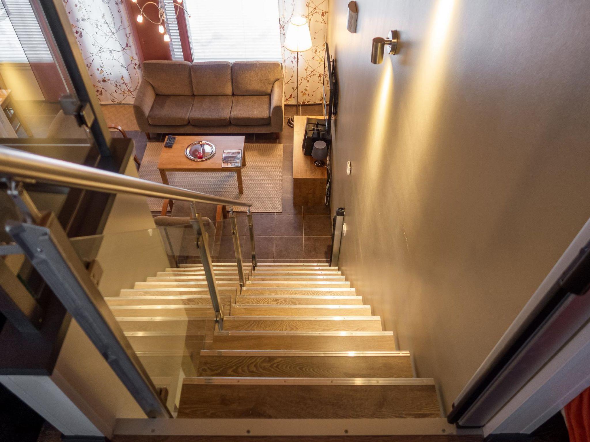The Vuokatinranta Suite holiday apartment is 92 m², on two floors. Downstairs, a bright and spacious living room kitchen with a cozy fireplace, a dining table for 6-8 people (extra chairs). Bedroom with beds for 2. From the living room, easy and sturdy stairs lead up to the loft, where there are separate beds for 4. A sofa bed that can be spread out as an extra bed in the loft for 1-2 guests. Access from the loft to a glazed balcony with wooden outdoor furniture. Relaxation and a cottage holiday are crowned by an atmospheric sauna with a Harvia -electric stove, two showers in the washroom. Access to a separate toilet space from the hall. A drying cabinet in the air cupboard.