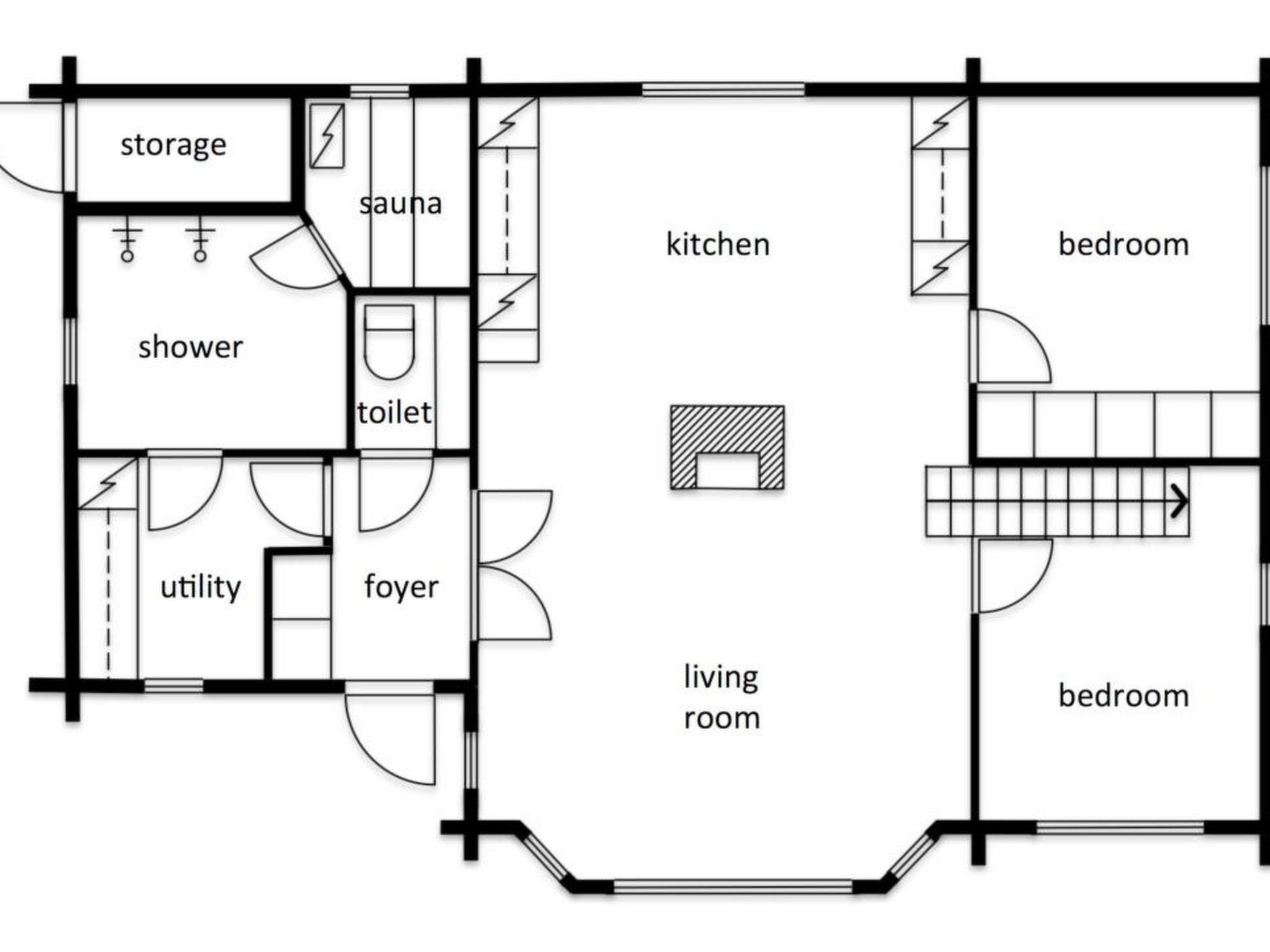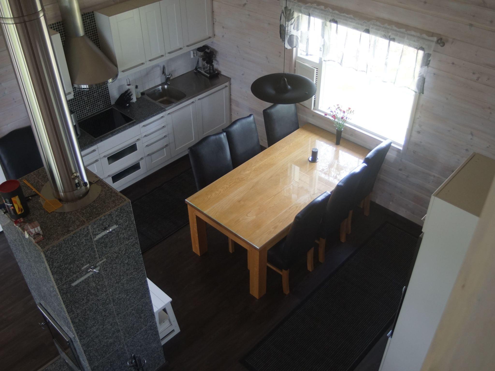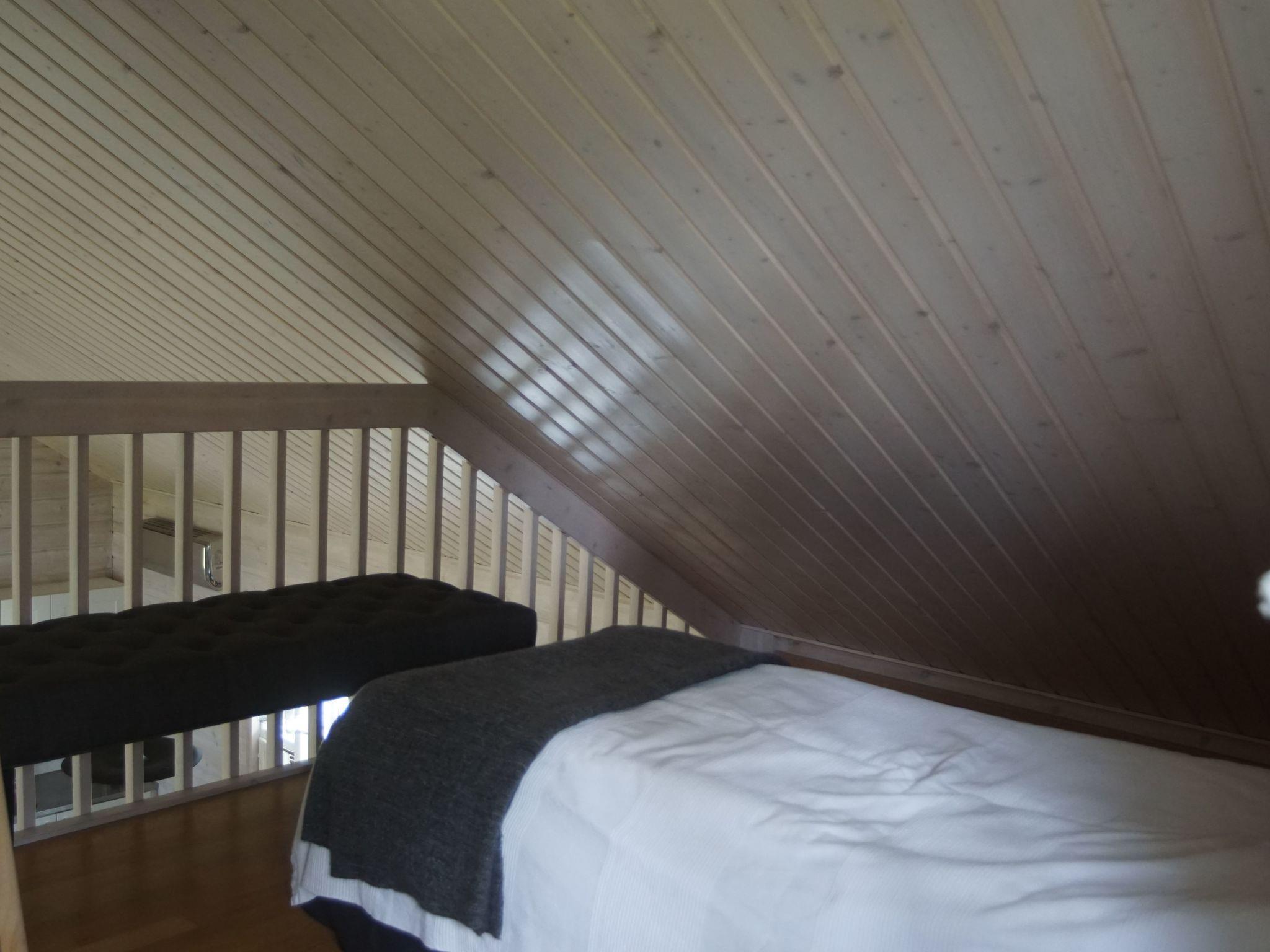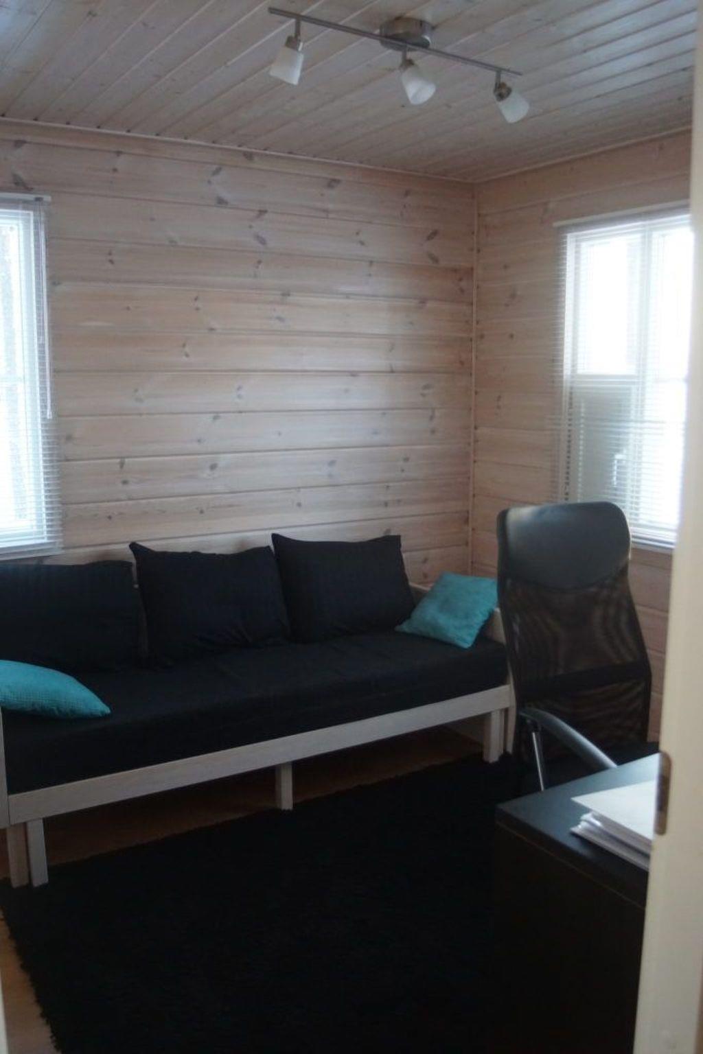 Villa Pikkujalo is built from thermal log and consists of living area, open kitchen, two bedrooms, loft, toilet, dressing/utility room, washing room with two showers and a sauna with electric stove. In the master bedroom there is a queen-size double bed and plenty of closets. In the other bedroom there is a smaller fold-out double bed with proper mattress and a desk. On the loft there are two full single beds. It is also possible to sleep in the lakeside sauna building.