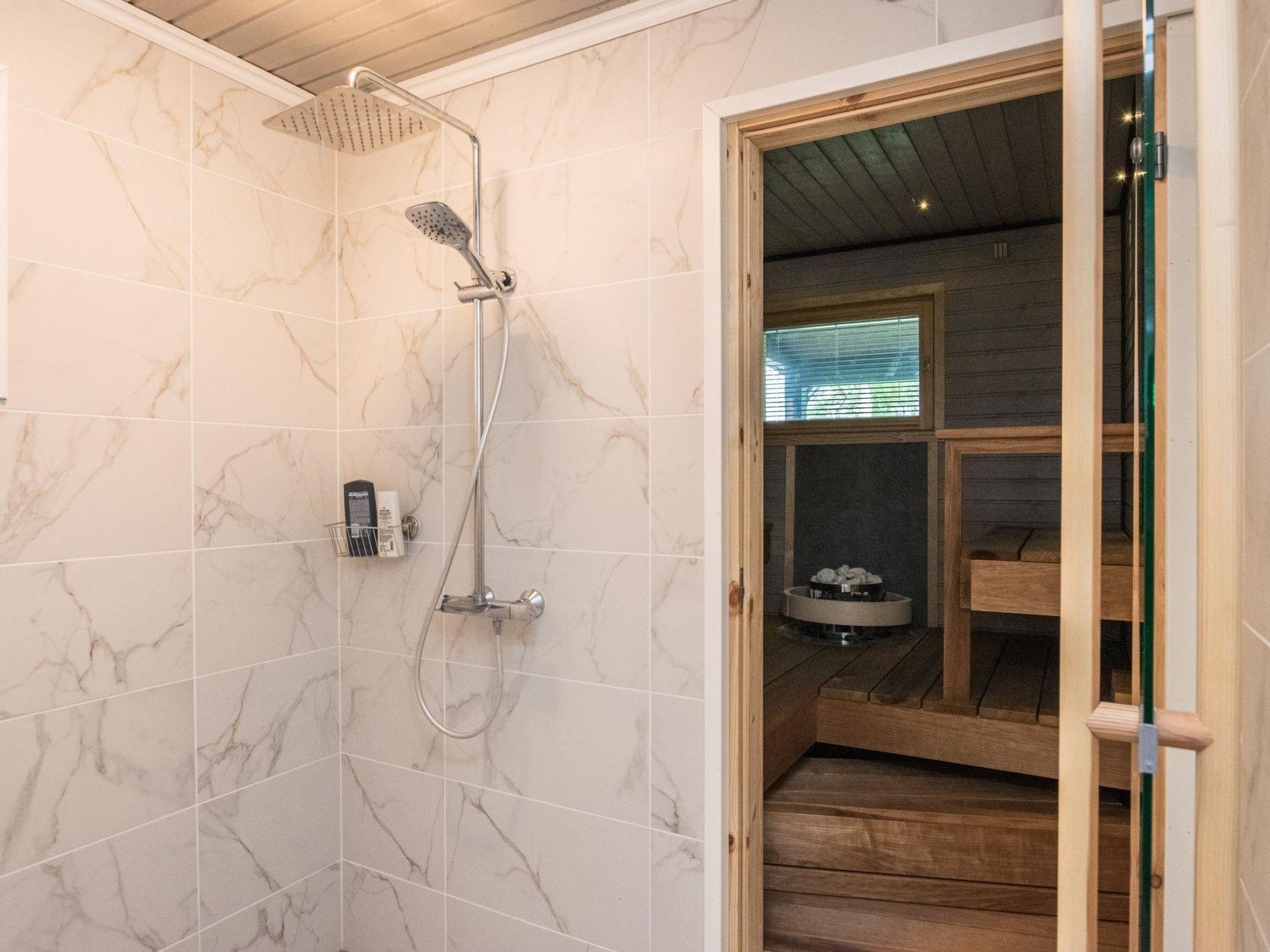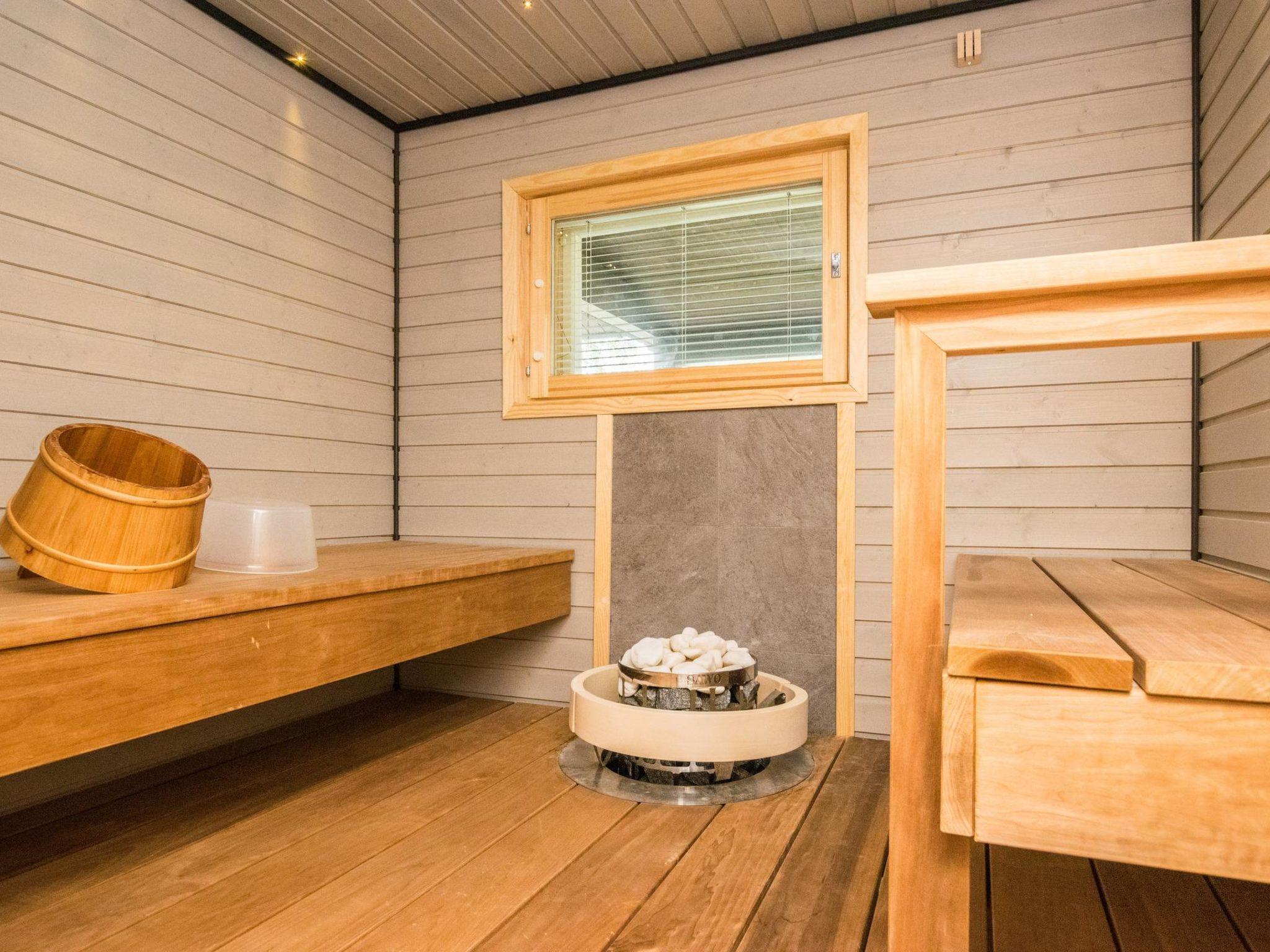 The lakeside sauna was built in 1994 and renovated in 2024. The fireplace room has a refrigerator and a sofa bed, providing two additional sleeping places during the summer. The sauna has a wood-burning stove and a water cauldron.