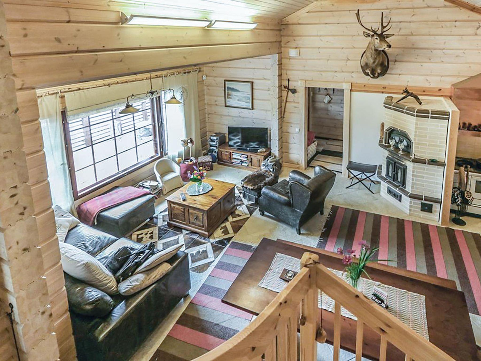 There is kitchen/living room, bedroom with wide double bed, bedroom with two 90 cm wide single beds, two 120 cm wide thick mattresses on the loft (the height of the loft is 140 cm, stable stairs leads to the loft), sauna, washroom, WC in the cabin. Air source heat pump (can be used for both warming and cooling).