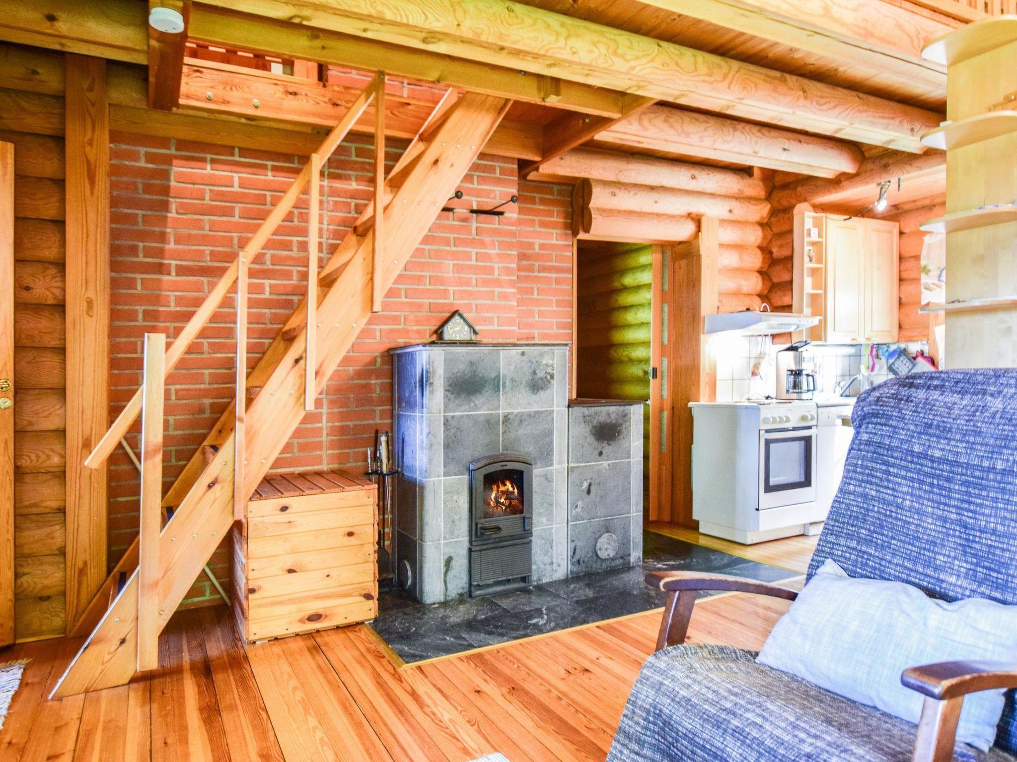 Roundlog building 1997, living room/kitchen, bedroom 2 beds, sleeping loft 2 beds and 1 extra bed plus balcony, washroom, sauna, open porch. Living room/kitchen has convertible sofa/bed as optional bed. Cottage has heating pump/inverter air conditioning system, wood-burning stove/kitchen range, underfloor heating in washroom. Lakeshore sauna with dressing room and attached room with 2 summer beds.