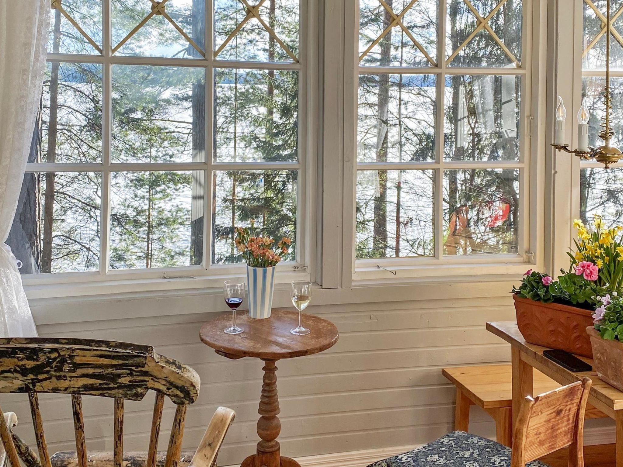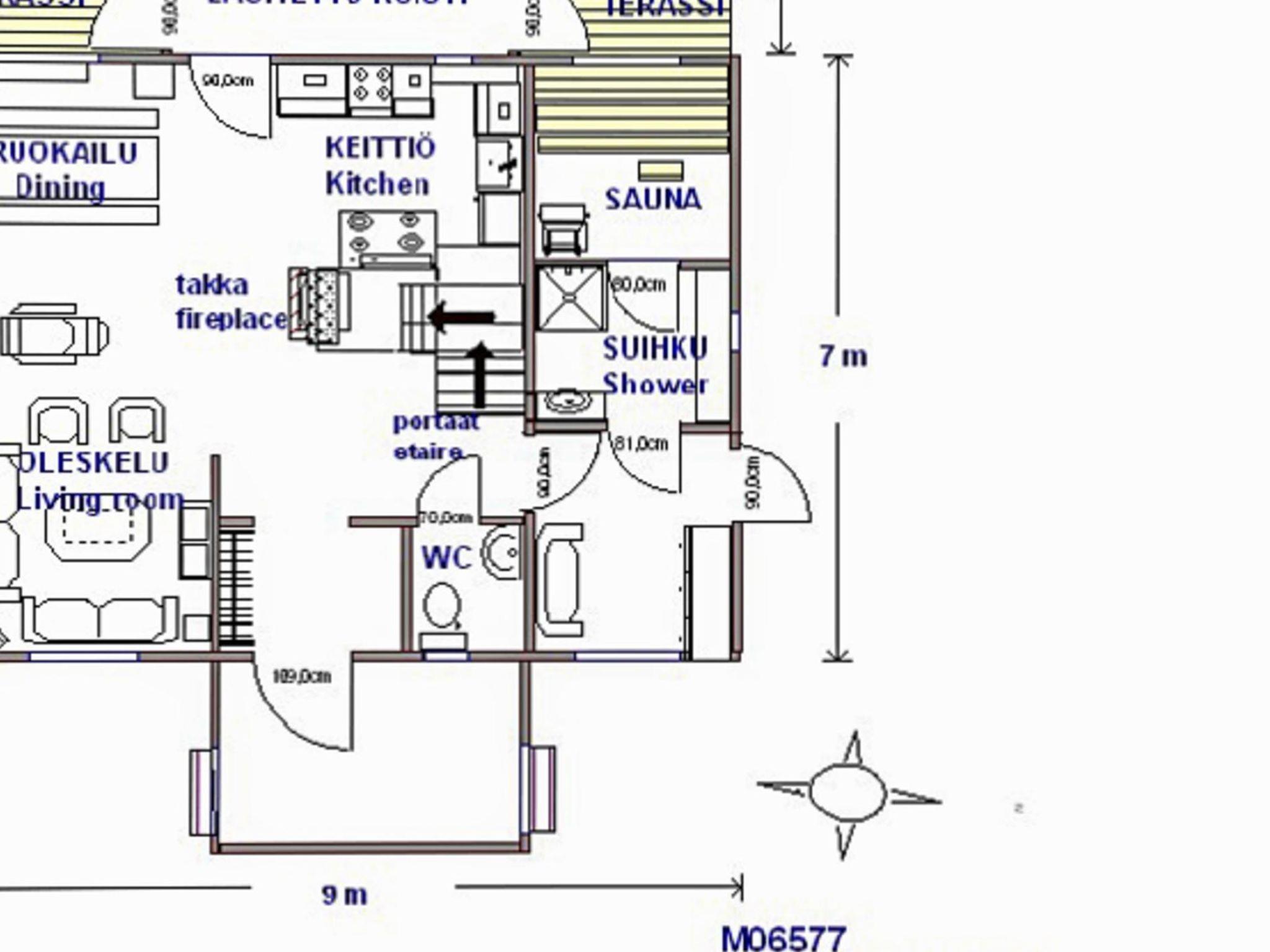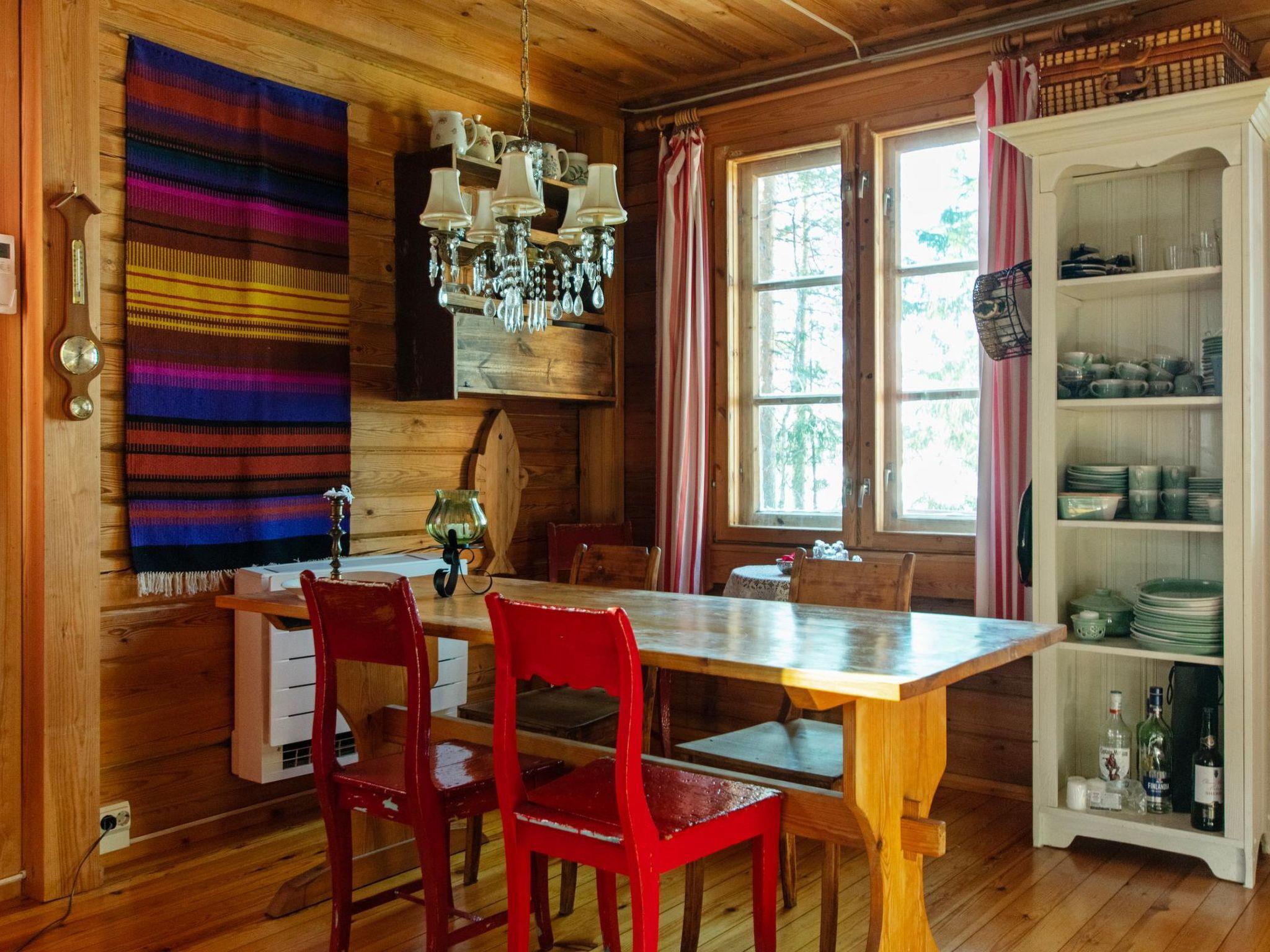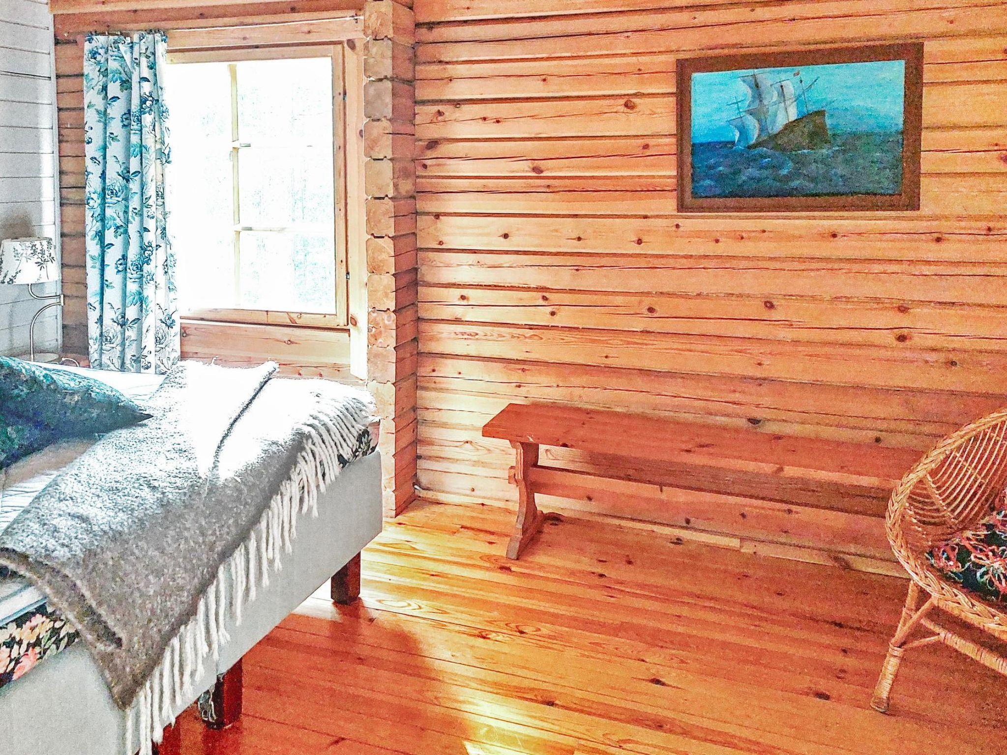 Log building 1997. Ground floor: kitchen, living room, dressing room, laundry room, sauna, glazed porch and 2 open porches. Kitchen renovated in 2007. Upstairs: (with a total of 3 bedrooms): a large bedroom opening onto the lake, with a double bed, a sofa bed for two and a cot for baby. Access to the outdoor terrace from the room. On the forest side, 2 bedrooms with double beds.