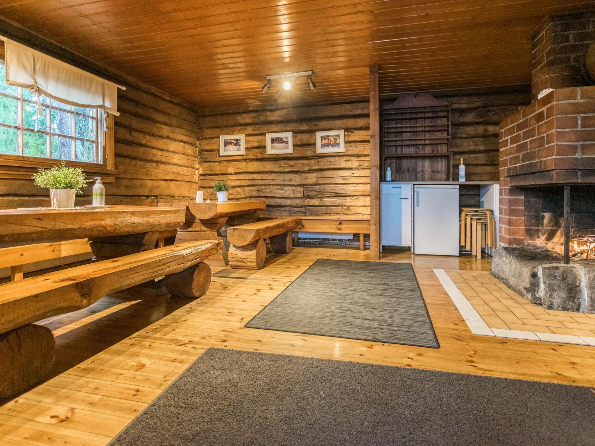 Log-built cabin. On the ground floor, spacious living room, kitchen, 2 bedrooms (both with two beds), WC with shower. On the upper floor, two bedrooms, one with two beds and another with double bed and two single beds, sauna (electric sauna stove), WC / washroom and dressing room. In the backyard, there is a covered cooking area with solid masonry grill.
