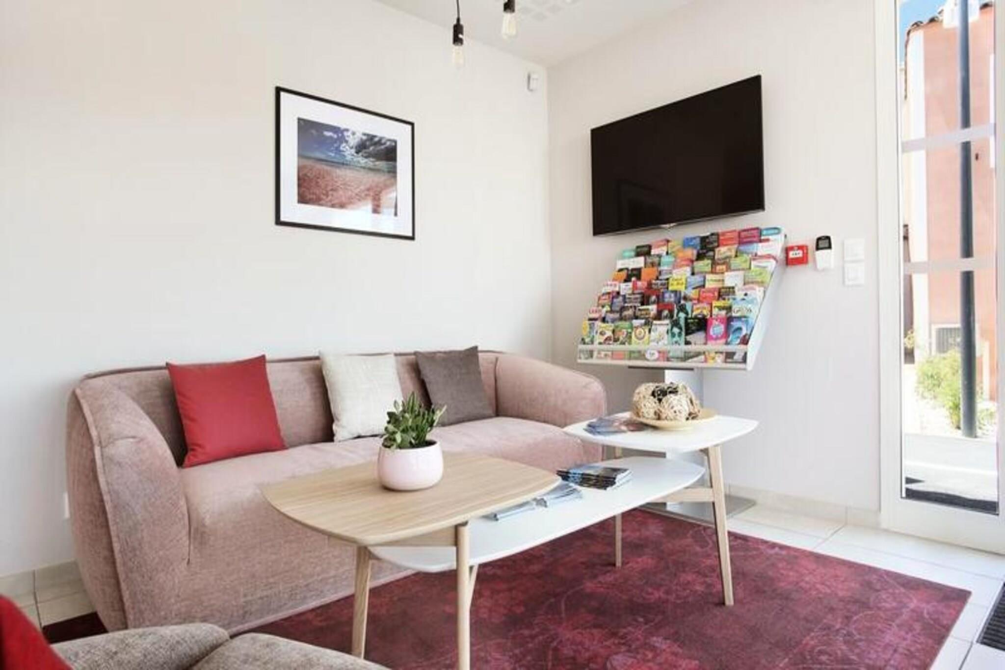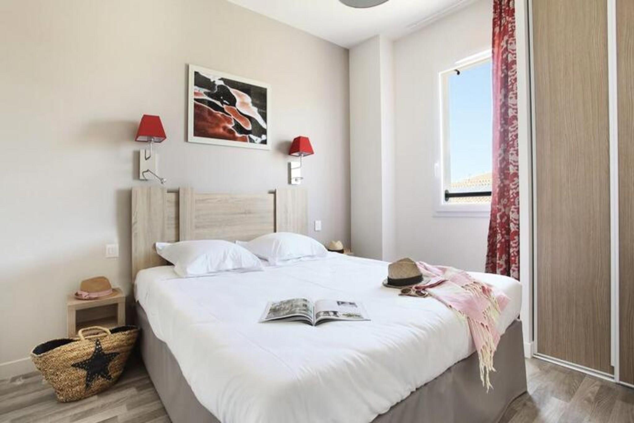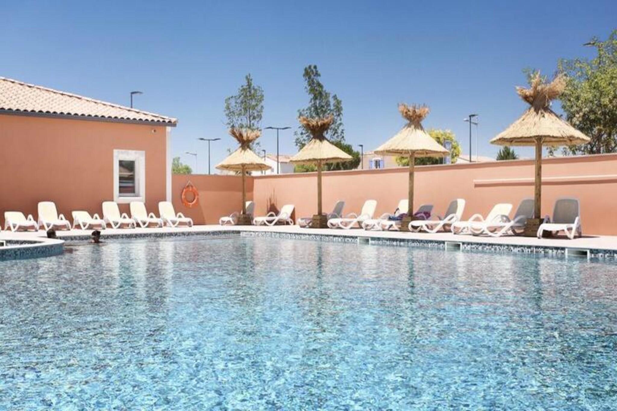 Dette hyggelige feriehus i Aigues-Mortes tilbyder et behageligt ophold med et sovev?relse med dobbeltseng, en kahyt med to k?jesenge og en sovesofa til ekstra g?ster. Det er k?ledyrsvenligt og tillader lodne ledsagere mod et ekstra gebyr. Hjemmet har Wi-Fi og et tv til underholdning, og g?sterne kan nyde en privat terrasse og have til at slappe af udend?rs. Beliggende kun 6 km fra strandene og 5 minutter fra det historiske centrum, er ejendommen ideel til at udforske Aigues-Mortes. Oplev byens middelaldervolde, nyd lokale markeder og caf?er, og udforsk n?rliggende attraktioner som de lyser?de strandenge og Camargue, der er tilg?ngeligt med b?d, 4X4 eller hesteryg. Byen er v?rt for den livlige Saint Louis-festival i august, der byder p? en middelalderoplevelse. Feriehuset har fuldt udstyret k?kken, moderne badev?relse med bruser eller badekar samt separat toilet. G?sterne kan ogs? nyde en opvarmet udend?rs pool med solarium. Yderligere tjenester omfatter parkering, leje af senget?j og gebyrer for slutreng?ring, med k?kken- og opvaskeansvar overladt til g?sterne.