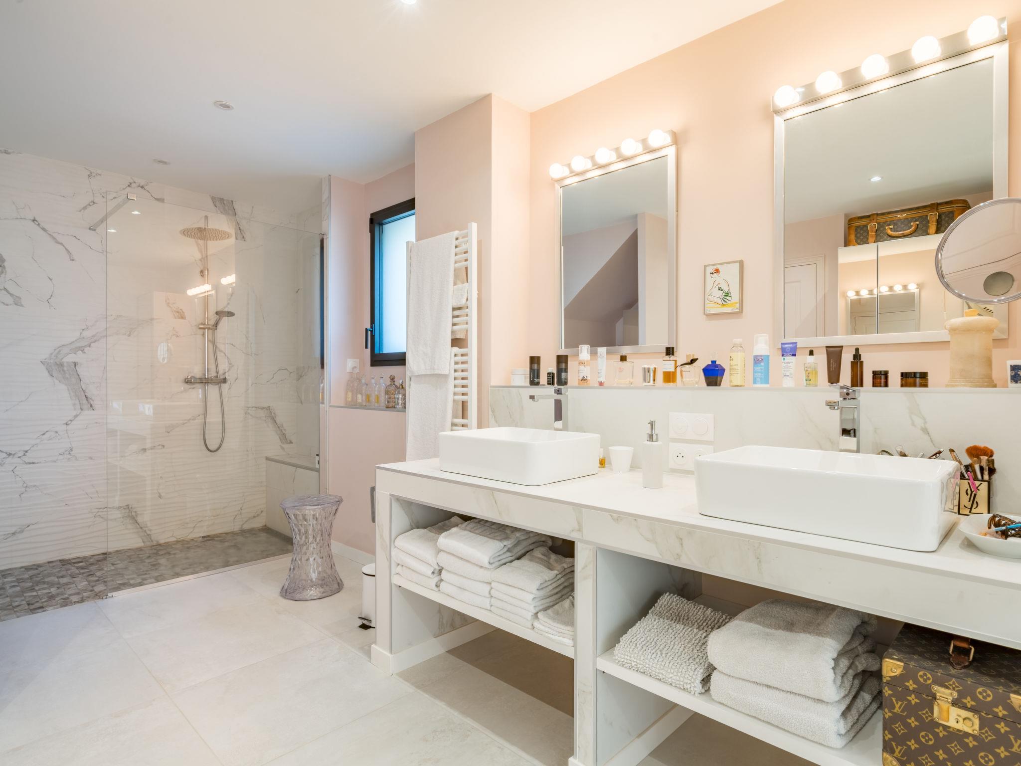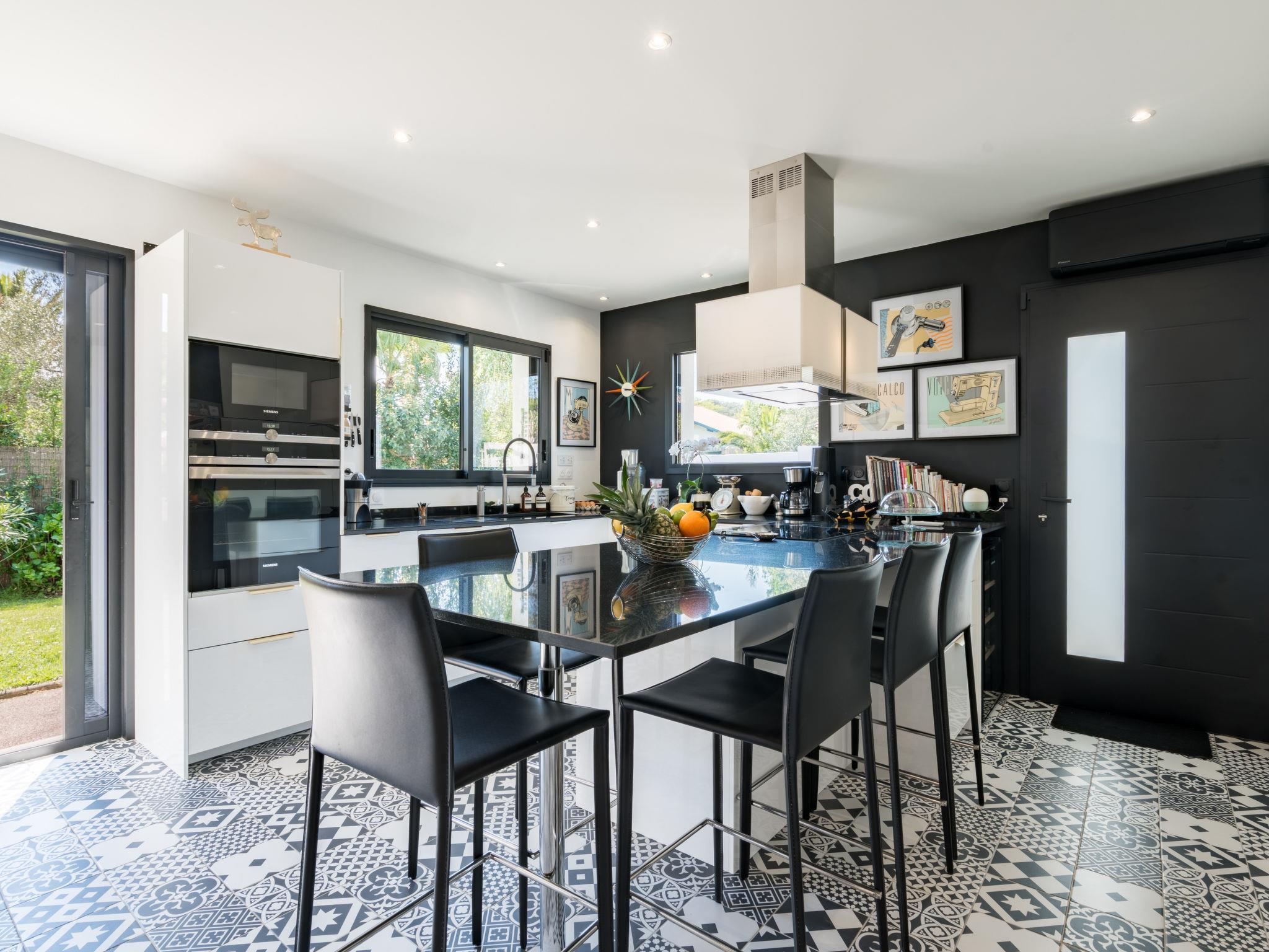 Anglet 3 km from Biarritz: Villa "Espérance", 2 storeys, renovated in 2024. In a quiet position residential area (villas), 3 km from the sea, 3 km from the beach. Private: property 370 m2 (fenced), garden with lawn and wildlife garden, parking. Shop 600 m, grocery 700 m, supermarket 2.2 km, bus stop "Moura, ligne Bayonne-Biarritz" 200 m, railway station "de Biarritz" 3.9 km, sandy beach "La Grande Plage de Biarritz" 3 km, indoor swimming pool 3 km, thermal baths "Athlantal" 6 km. Golf course (18 hole) 2.8 km, surf school 3 km. Nearby attractions: Halles des 5 Cantons 2.5 km, Phare de Biarritz 3.2 km, Port des Pêcheurs 3.5 km, Aquarium 3.7 km, Bayonne 4.5 km, Saint-Jean-de-Luz 17 km. Hiking paths: La Rhune 28 km, Le Jaizquibel 34 km.