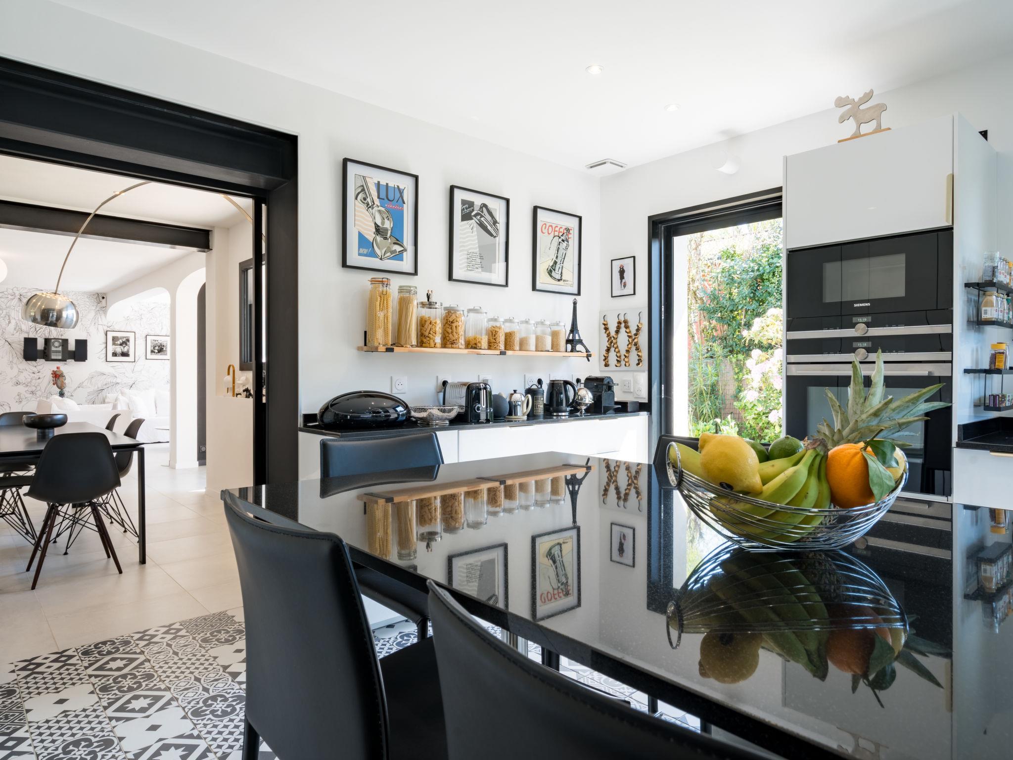 4-room villa 155 m2. Spacious, comfortable and stylish furnishings: living/dining room with TV (flat screen). Exit to the garden, to the terrace. 1 room with 1 french bed (160 cm, length 200 cm), shower and double hand-basin. Exit to the garden, to the terrace. Kitchen (oven, dishwasher, 4 induction hot plates, toaster, kettle, microwave, freezer, electric coffee machine, Capsules for coffee machine (Nespresso) extra). Sep. WC. Air-conditioning. Upper floor: 1 room with 1 french bed (160 cm, length 200 cm). Exit to the balcony. 1 room with 1 french bed (140 cm, length 190 cm). Bathroom, sep. WC. Terrace 9 m2, south facing position terrace 11 m2, south facing position, garden 350 m2. Terrace furniture, electric barbecue, deck chairs (4). Facilities: washing machine, dryer, iron, hair dryer. Internet (WiFi, free). Parking (fenced 2 cars). Please note: suitable for families. Non-smoking house. Smoke alarm. Offer by a private individual according to Art. 155, IV of CGI. 64024004663A6