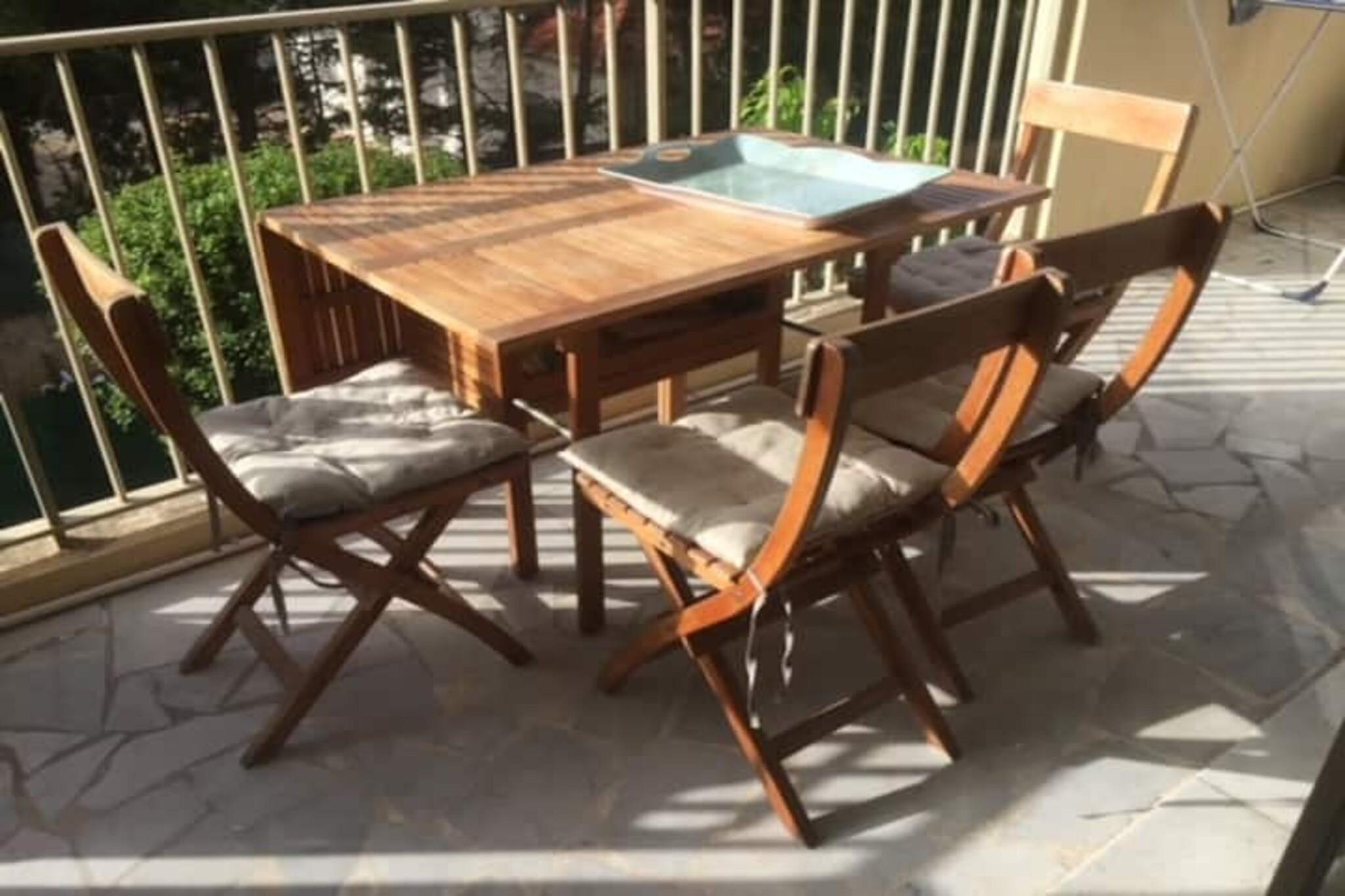 Indvendigt er huset kompakt, men omhyggeligt indrettet til at rumme op til 3 gæster. Du finder en komfortabel sovesofa i stuen, en enkeltseng på mezzaninen i soveværelset, et rent, moderne badeværelse og et separat toilet. Det åbne køkken, der er tilgængeligt fra stuen, er fuldt udstyret med moderne apparater - nok til lette måltider eller afslappende morgenmad. Du er velkommen til at tilbringe dine dovne eftermiddage på den skyggefulde terrasse uden for lejligheden - det er et roligt sted til morgenmad under åben himmel, en drink efter stranden eller bare afslapning. Yderligere faciliteter inkluderer adgang til sikker privat parkering i boligen, aircondition, højhastigheds-WiFi og en fælles pool, hvis du har brug for at tage et dyk ned i dit komfortable ophold. Når du har lyst til at vandre, ligger Antibes historiske centrum kun en kort gåtur væk med dens gamle bydel, livlige havn, lokale markeder og charmerende gader. Du kan nyde Middelhavskysten, udforske de historiske mure og byens kulturarv eller forkæle dig selv med stjerneklare kystvandringer og spise på restauranter ved havet. Dette hjem er perfekt for rejsende, der søger enkelhed, havudsigt og bekvemmelighed – folk, der ønsker tæerne i sandet om morgenen og et hyggeligt sted at hvile og lade op om aftenen.