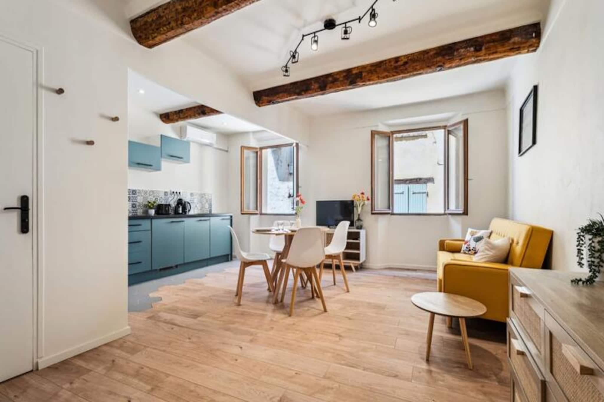 I hjertet af det fortryllende Safranier-distrikt i Antibes inviterer denne lyse og hyggelige etværelseslejlighed dig til at opleve den tidløse charme ved den franske riviera. Kun få skridt fra det glitrende Middelhav og det pulserende provencalske marked er dette 36 m² store tilflugtssted et paradis for par, der søger en romantisk ferie, eller solorejsende, der længes efter en fredelig flugt. De brostensbelagte gader og den varme atmosfære i dette historiske kvarter skaber den perfekte baggrund for dit ophold. Indenfor er lejligheden omhyggeligt designet til at kombinere komfort og praktisk anvendelighed. Den luftige opholdsstue har en dejlig stue og spiseplads, perfekt til afslapning efter en dag med udforskning. Det veludstyrede køkken indeholder alt det nødvendige, fra en kaffemaskine til et komfur, så du kan tilberede friske måltider med lokale ingredienser. Soveværelset tilbyder en blød seng på 160x200 cm, der sikrer afslappende nætter, mens det moderne badeværelse med bruser og separat toilet øger bekvemmeligheden. Yderligere faciliteter såsom aircondition, Wi-Fi, tv og hårtørrer sikrer et problemfrit ophold. Træd udenfor, og du vil finde dig selv fordybet i Antibes' pulserende liv. Gå en tur på det provencalske marked for at opdage friske råvarer og kunsthåndværk, eller besøg Picasso-museet for en dosis kultur. De nærliggende strande inviterer dig til at sole dig eller tage en forfriskende dukkert i det azurblå vand. Nyd lokale delikatesser på charmerende spisesteder som Le Fricot eller Salé/Sucré, som alle er inden for gåafstand. For dem, der ønsker at udforske yderligere, ligger Antibes togstation kun 15 minutters gang væk, og Nice Côte d'Azur Lufthavn ligger 40 minutters kørsel derfra. Uanset om du er her for at nyde solen, udforske den rige historie eller forkæle dig selv med de kulinariske lækkerier på Côte d'Azur, tilbyder denne lejlighed den perfekte base for en uforglemmelig middelhavsferie.
