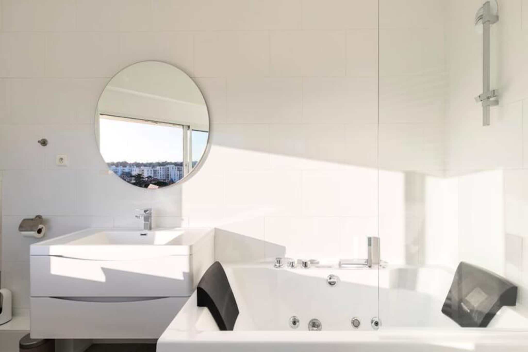 Hvor Atlanterhavets azurblå bølger møder Biarritz' charme, tilbyder denne fantastiske duplex med panoramaudsigt et uforglemmeligt tilflugtssted ved havet. Lejligheden ligger i en ikonisk bygning kun få skridt fra Miramar-stranden og har en betagende udsigt over havet, byen og det historiske fyrtårn. Forestil dig at starte dagen med en spadseretur langs sandstranden og slutte den med et afslappende bad i jacuzzien, mens du kigger ud over byens blinkende lys. Dette er mere end et ophold; det er en oplevelse af elegance og ro i hjertet af Biarritz. Duplexlejligheden strækker sig over to etager og kombinerer moderne komfort med tidløs charme. Den lyse stue, indrettet med smagfuld dekor, åbner op til et fuldt udstyret køkken, hvor du kan tilberede måltider, mens du nyder havbrisen. Lejligheden kan komfortabelt rumme op til fire gæster og har et hyggeligt soveværelse med en dobbeltseng og et soveområde med en queensize-seng. Linned af høj kvalitet, friske håndklæder og gratis Wi-Fi sikrer et problemfrit og behageligt ophold. Træd udenfor, og du vil finde dig selv omgivet af det pulserende liv i Biarritz. Grande Plage-promenaden med sin fantastiske havudsigt er perfekt til solnedgangsture, der fører til det ikoniske Biarritz-fyrtårn. Det nærliggende Saint-Charles-kvarter byder på charmerende butikker, caféer og restauranter, mens det travle Halles de Biarritz-marked kun ligger en kort gåtur væk. For surfere og strandelskere ligger den berømte Côte des Basques kun 10 minutters kørsel derfra. Uanset om du er her for at surfe, opleve kulturen eller blot slappe af ved havet, er denne duplex den perfekte base for at udforske Biarritz' skønhed og elegance. Lad bølgernes rytme og den baskiske kysts charme skabe minder, der varer hele livet.