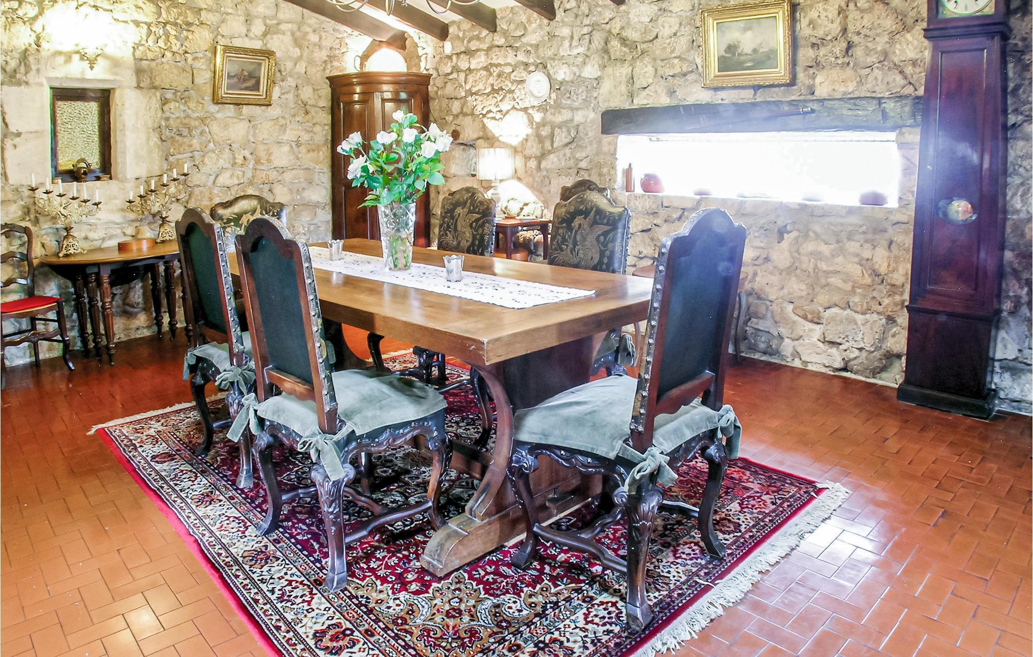 Feriehuset fungerer som vinterbolig for ejerne, der er glade for antik. De tykke stenvægge sikrer et køligt interiør selv på de varme sommerdage. Haven er omgivet af smukke træer og er vidunderlig til solbadning. I haven bag huset er poolen omgivet af en mur, der opbevarer solenergi.