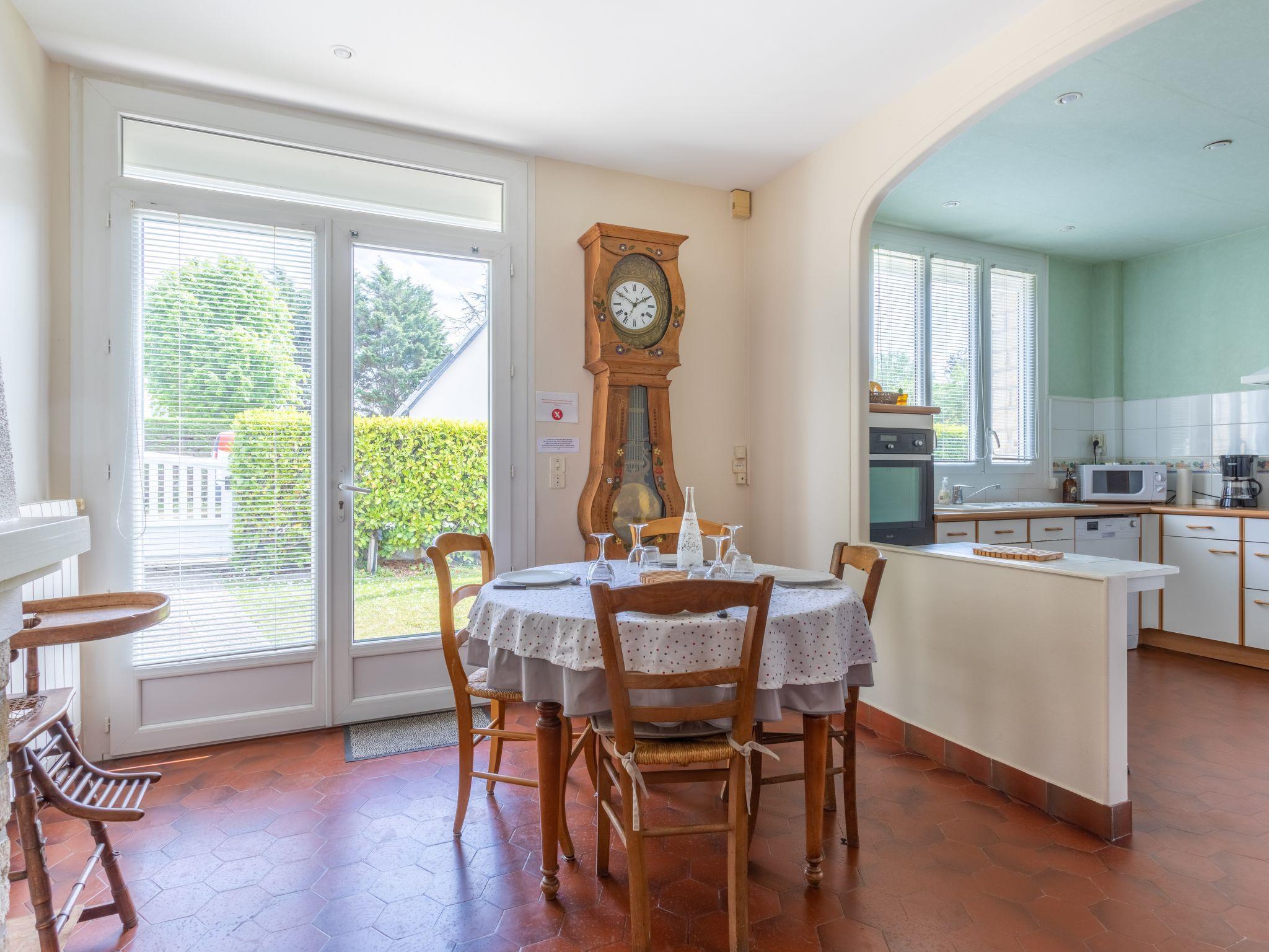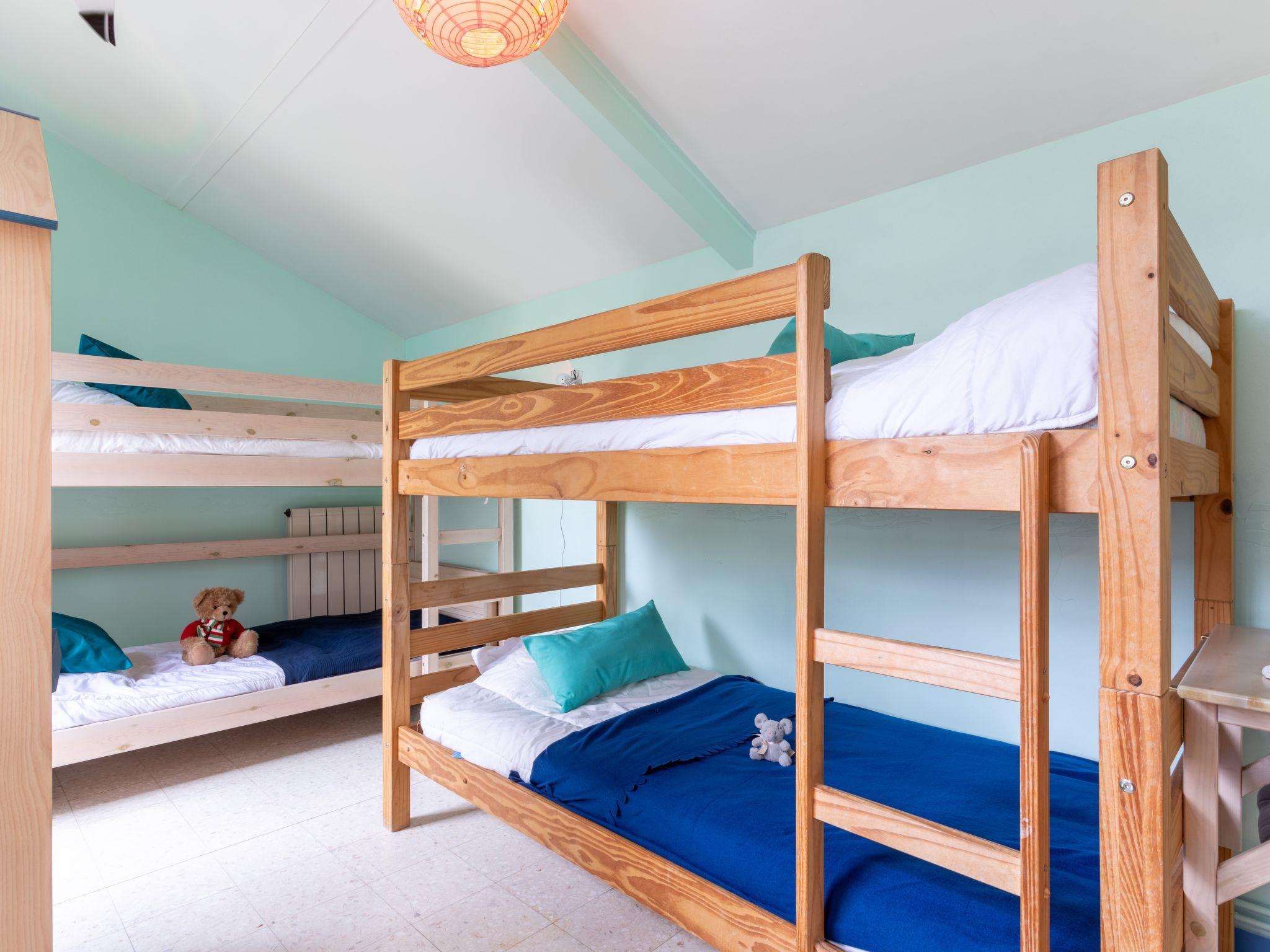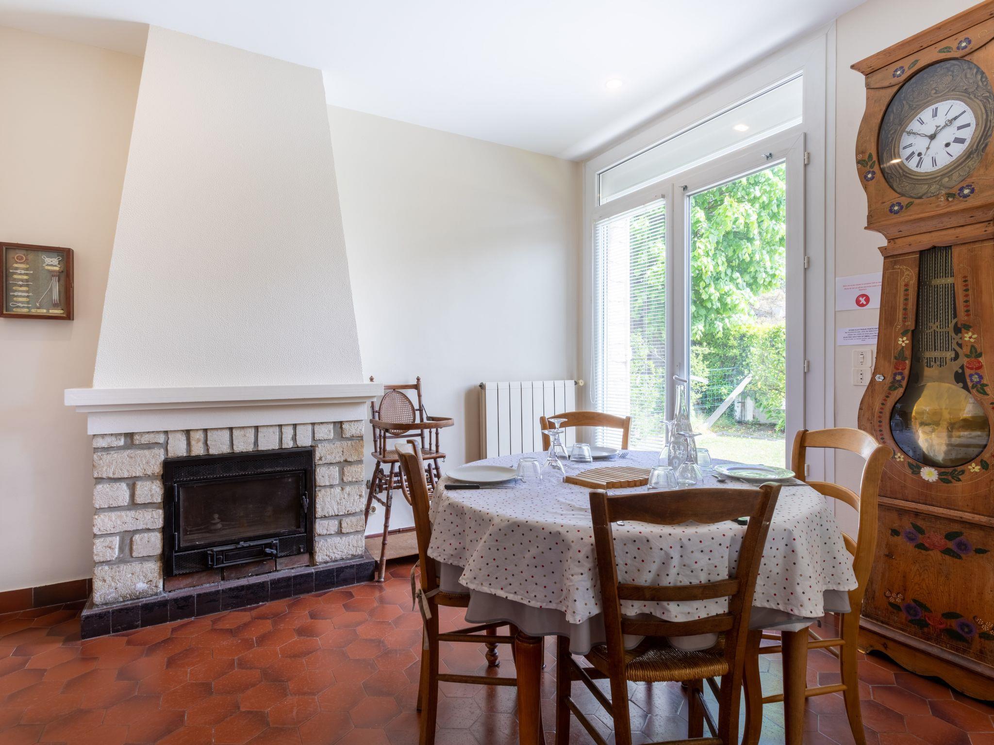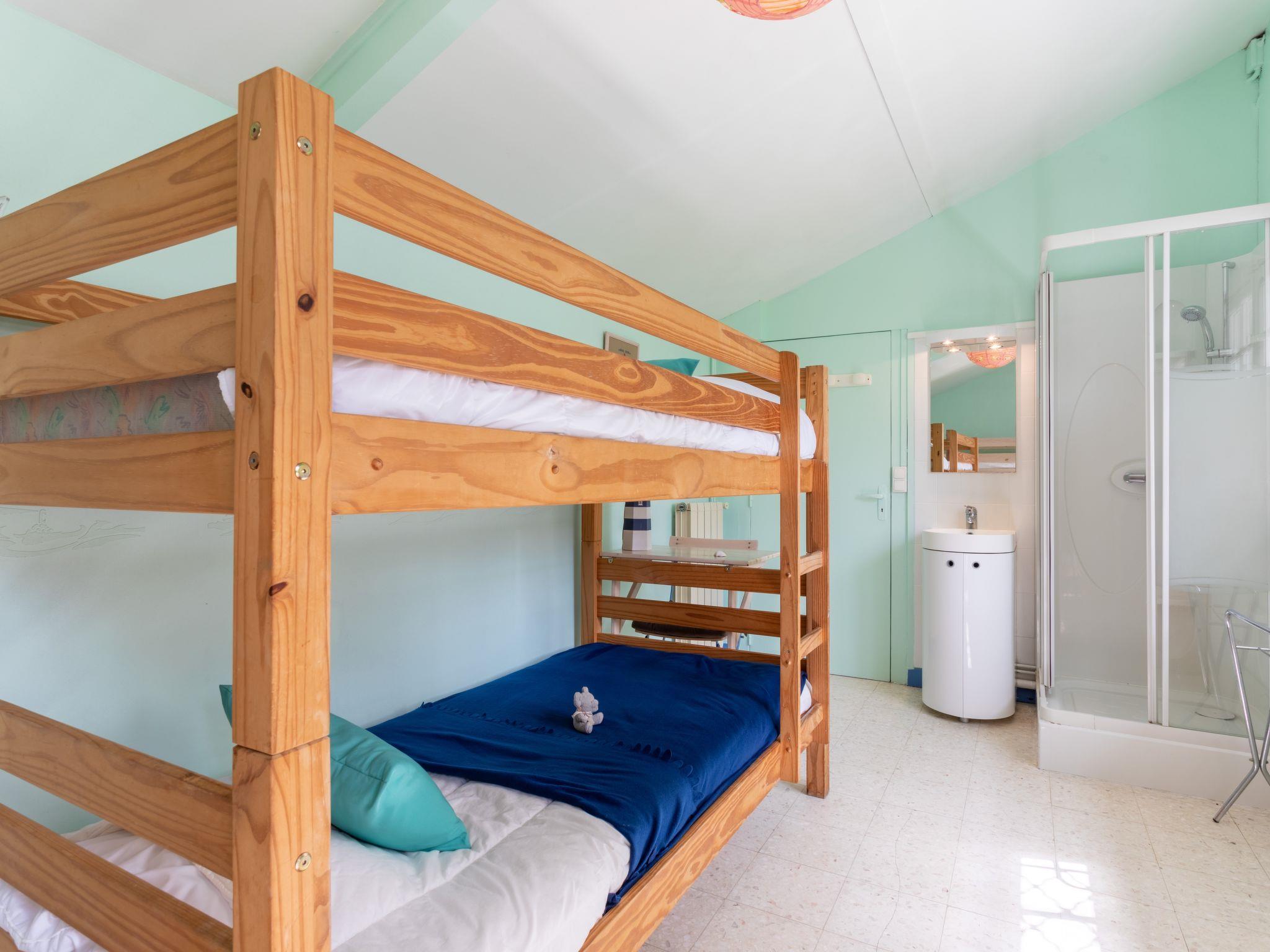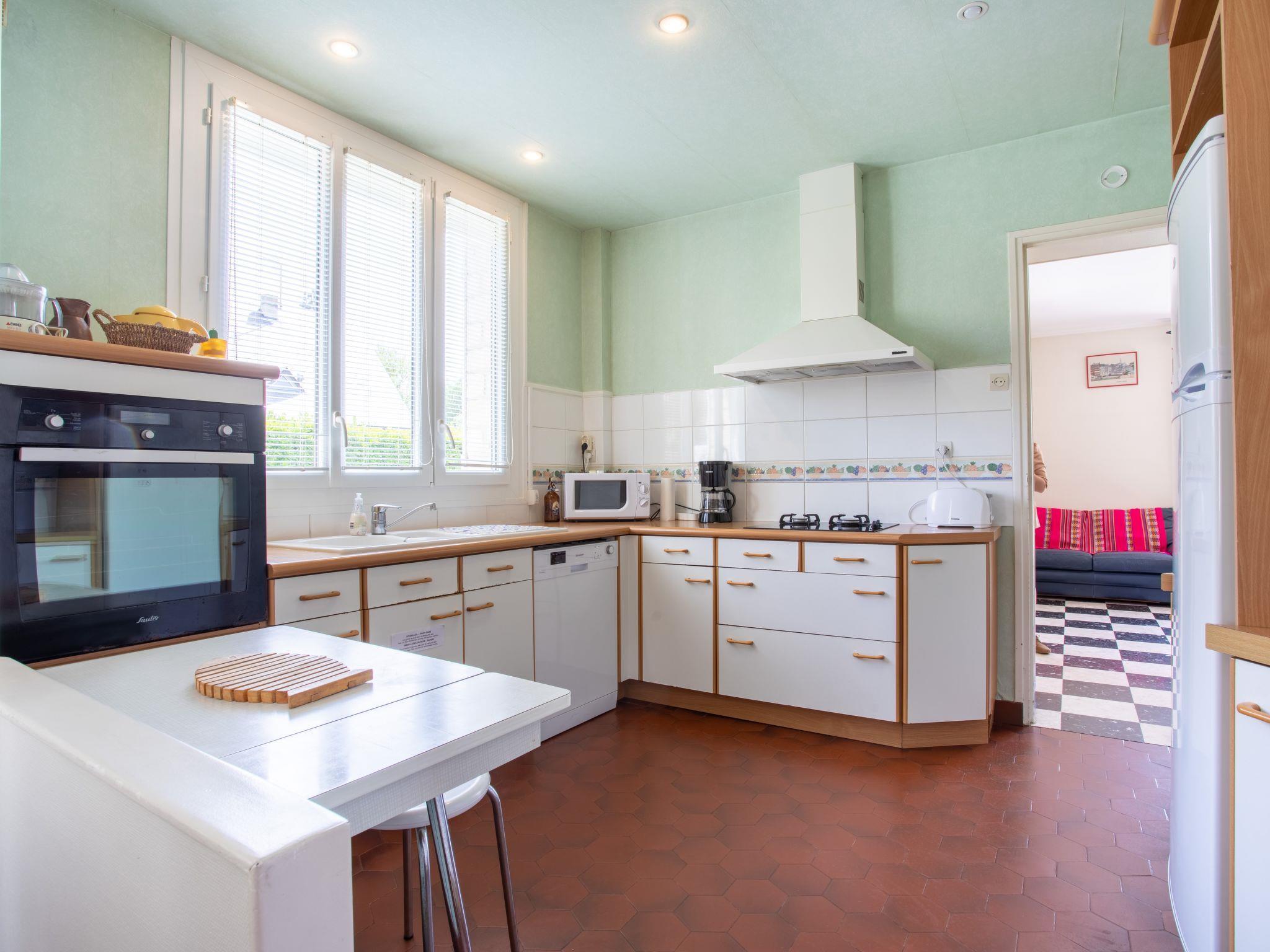 4-room house 108 m2. Rustic furnishings: living/dining room with TV (flat screen), electric shutters. Exit to the garden, to the terrace. 1 room with 1 french bed (140 cm, length 190 cm), electric shutters. 1 room with 1 french bed (160 cm, length 200 cm). Exit to the garden. 1 room with 1 x 2 bunk beds (90 cm, length 190 cm), shower. Open kitchen (2 hot plates, oven, dishwasher, 2 ceramic glass hob hotplates, toaster, kettle, microwave, freezer, electric coffee machine) with dining nook. Shower/WC. Electric heating. Terrace 8 m2, roofed, south facing position and west facing position, garden 300 m2. Terrace furniture. Facilities: washing machine, dryer. Internet (WiFi, extra). Parking (fenced). Please note: smoke alarm. FR 54188
