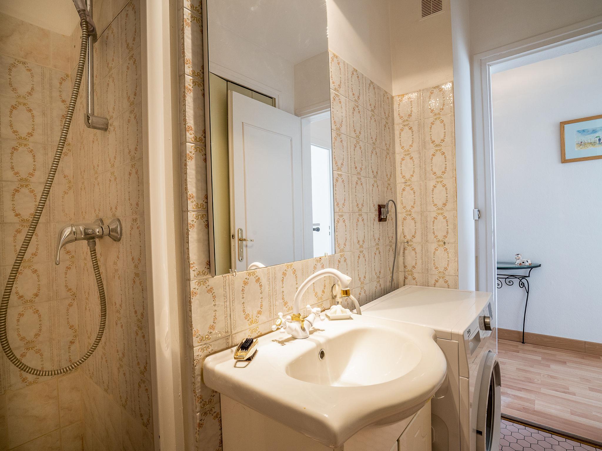 1-room studio 30 m2 on 1st floor, north facing position. Living/dining room with 1 double fold-away bed (160 cm, length 200 cm), TV (flat screen), electric shutters. Exit to the balcony. Kitchenette (4 hot plates, oven, toaster, kettle, microwave, electric coffee machine). Shower, sep. WC. Gas heating. Parquet floors. Balcony 8 m2. Balcony furniture. Marvellous view of the sea. Facilities: washing machine, iron. Internet (WiFi, extra). Parking space n 10. Please note: smoke alarm.