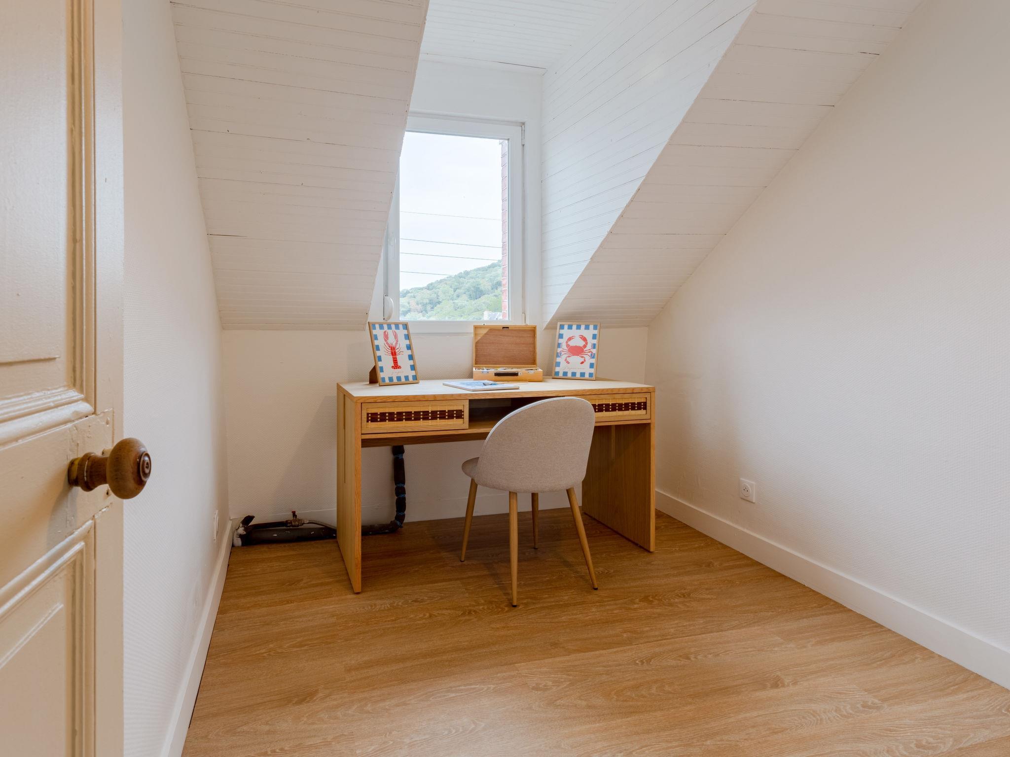 6-room house 170 m2, south-east facing position. Living/dining room with TV (flat screen). Exit to the garden, to the terrace. Kitchen (oven, dishwasher, 4 ceramic glass hob hotplates, toaster, kettle, microwave, freezer, electric coffee machine). Exit to the terrace. Sep. WC. Upper floor: 2 rooms, each room with 1 french bed (180 cm, length 200 cm). 1 room with 1 bed (90 cm, length 190 cm). Bath/WC. 2nd upper floor: 1 room with sloping ceilings with 1 french bed (180 cm, length 200 cm). Office with sloping ceilings. Terrace 15 m2, terrace 20 m2, garden 700 m2. Terrace furniture. Facilities: washing machine, dryer, baby cot. Internet (WiFi, free). Please note: maximum 1 pet/ dog allowed. Smoke alarm. Offer by a private individual according to Art. 155, IV of CGI.
