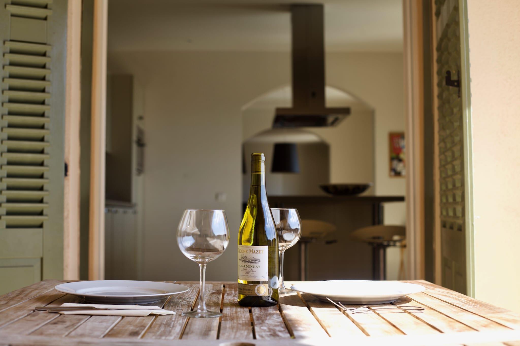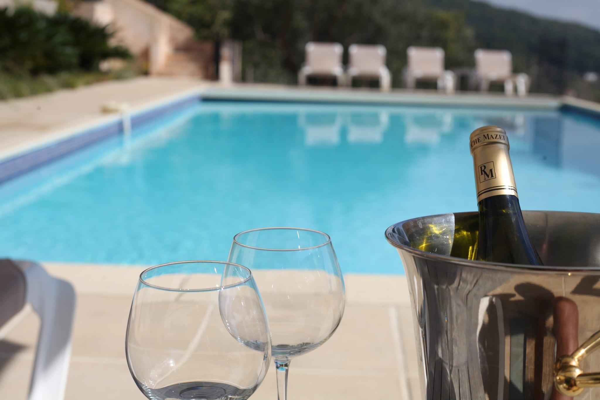 Denne stilfulde villa i Cabris, Provence-Côte d'Azur, tilbyder et luksuriøst ophold for op til 8 gæster. Stueetagen har en rummelig stue med satellit-tv, pejs, dvd-afspiller og stereoanlæg, plus en spisestue og et fuldt udstyret åbent køkken med alt fra en kogende vandhane til en blender. Gulvvarme sikrer hele året komfort, og havedøre fører til private overdækkede og åbne terrasser. Ovenpå finder du fire soveværelser, herunder to med en-suite badeværelser og balkoner. Sengetøjet inkluderer en king-size seng, dobbeltseng og enkeltsenge med babyfaciliteter såsom barnesenge og høje stole. Hovedbadeværelset har badekar, bruser, dobbelt håndvask og toilet. Udenfor kan du nyde en indhegnet, oplyst have med liggestole, parasol, grill, boulebane, legeredskaber og en privat 12x6 m swimmingpool. Villaen ligger kun 2 km fra Cabris Centre?lokalt?, tæt på restauranter, butikker og attraktioner. Spis på Auberge de la chêvre d'Or, Le Petit Prince eller Bellevue, og udforsk Cabris point de vue for en fantastisk natur. Nærliggende haver omfatter Jardins de la Princesse Pauline og Jardins du MIP. For drinks, besøg Chez Nicolas Bar Le Grand Pré. Med Grasse togstation 9 km væk og Nice Lufthavn 52 km væk, er denne kæledyrsvenlige villa med gratis Wi-Fi en perfekt base for din flugt fra Côte d'Azur.