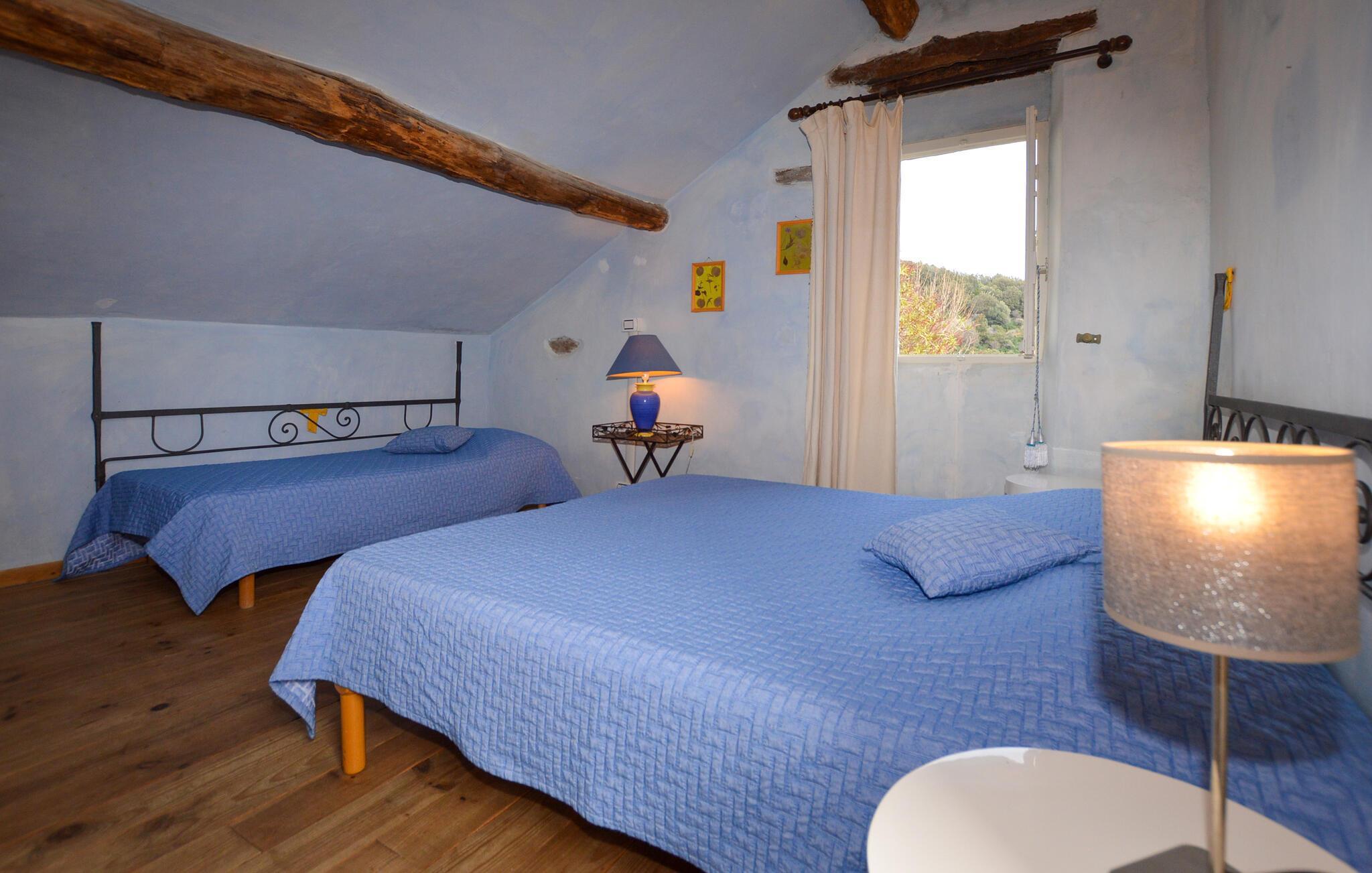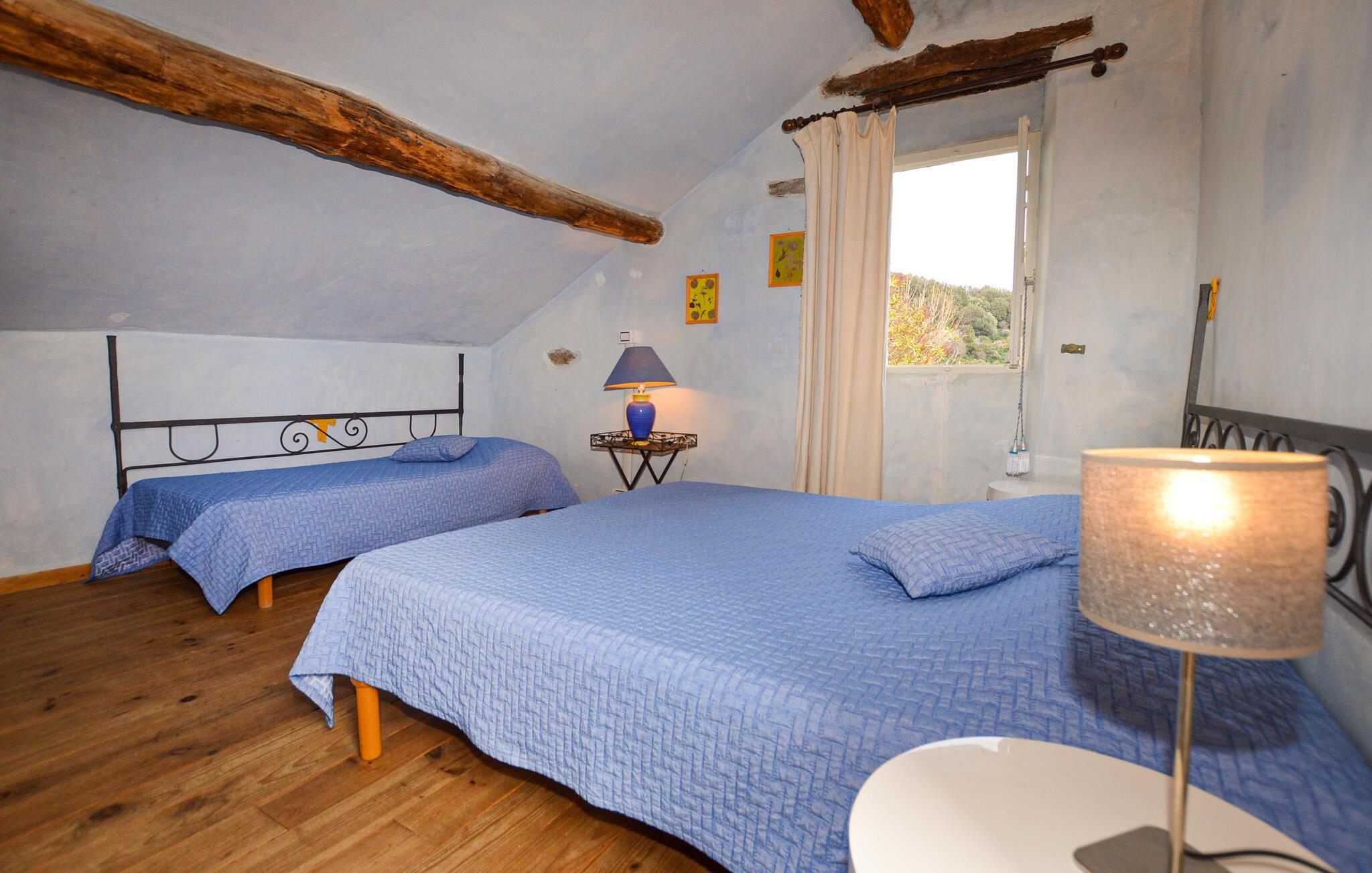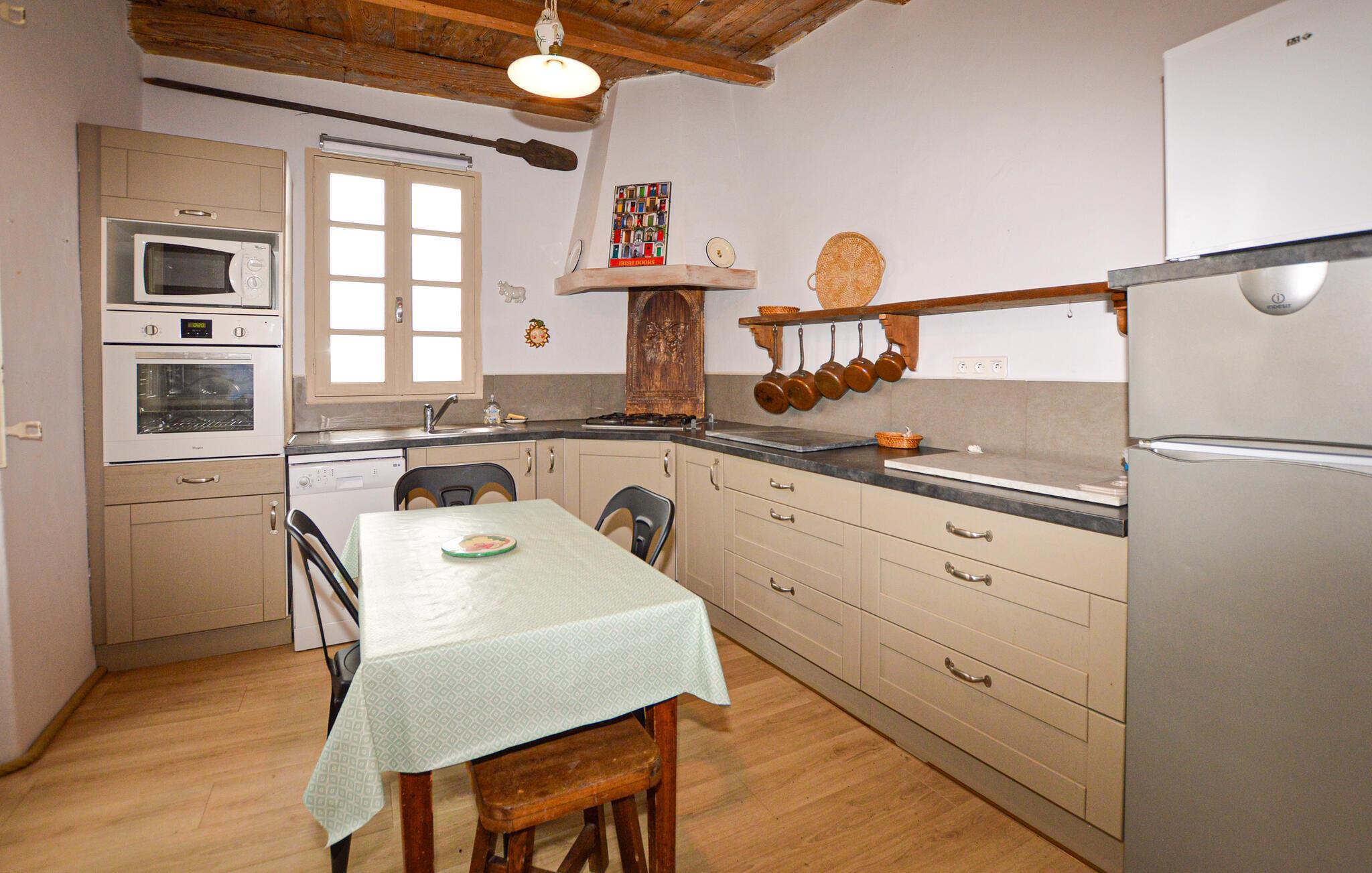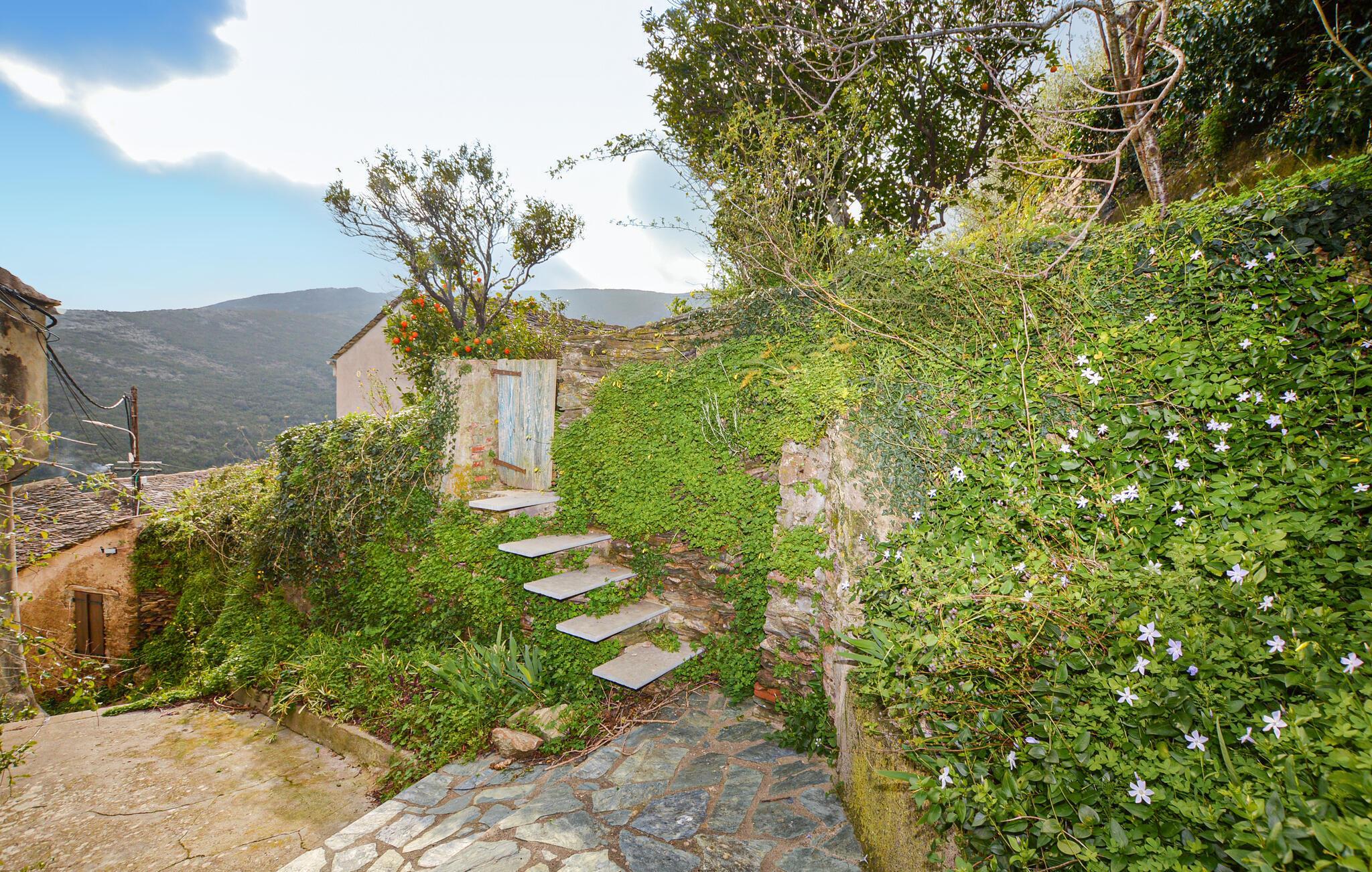 Denne romantiske ferieoase venter jer højt oppe i Korsikas bjerge, og tilbyder jer masser af plads til en afslappende pause med familien. Tilbring hyggelige spilleaftener i den hyggelige stue og tilbered lækre måltider i det rummelige køkken. Gennemse det lille, interne bibliotek for noget interessant læsning, og gør jer godt tilpas i den indbydende sofa.