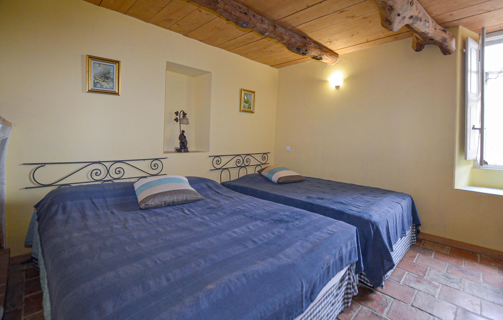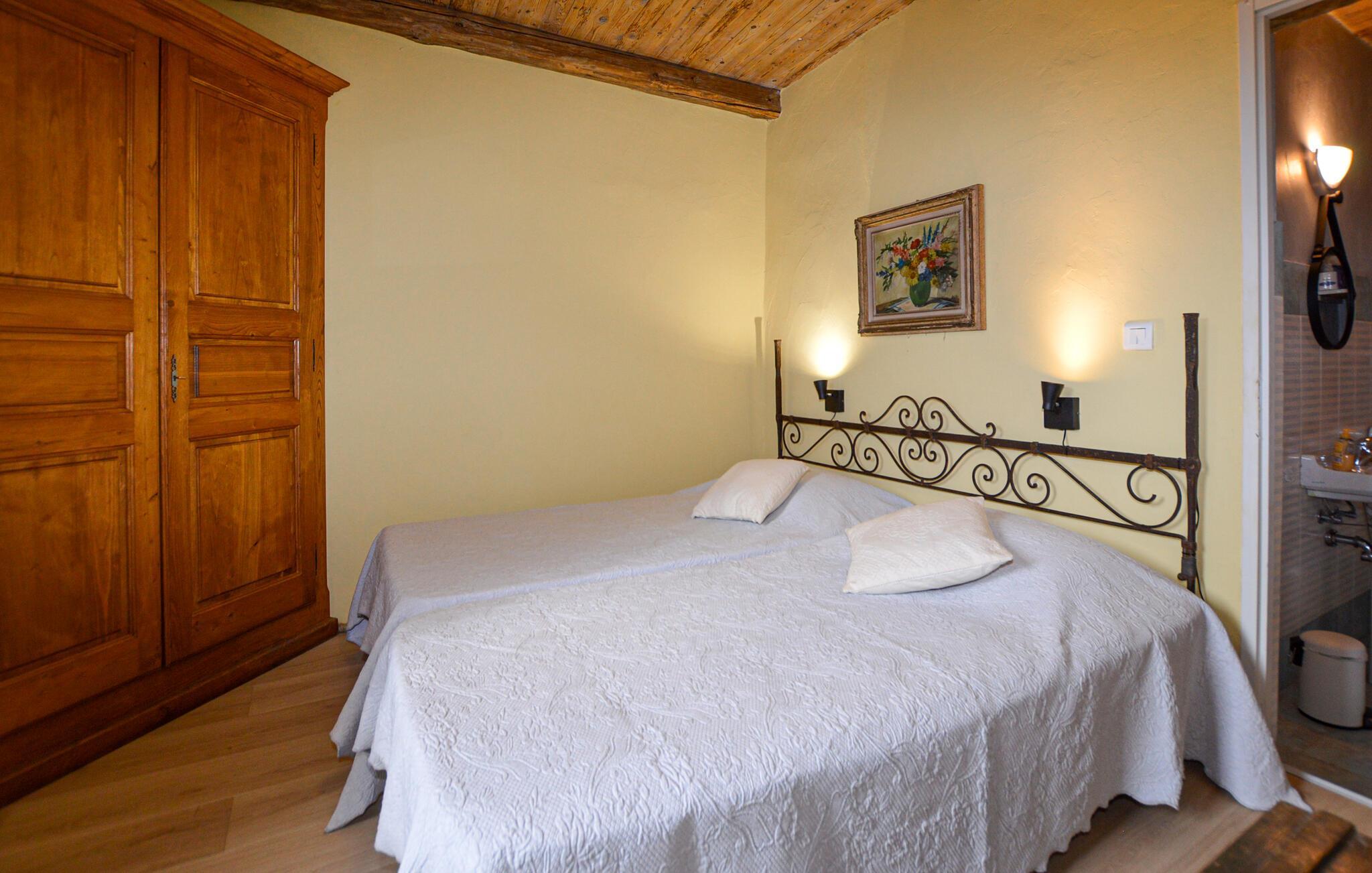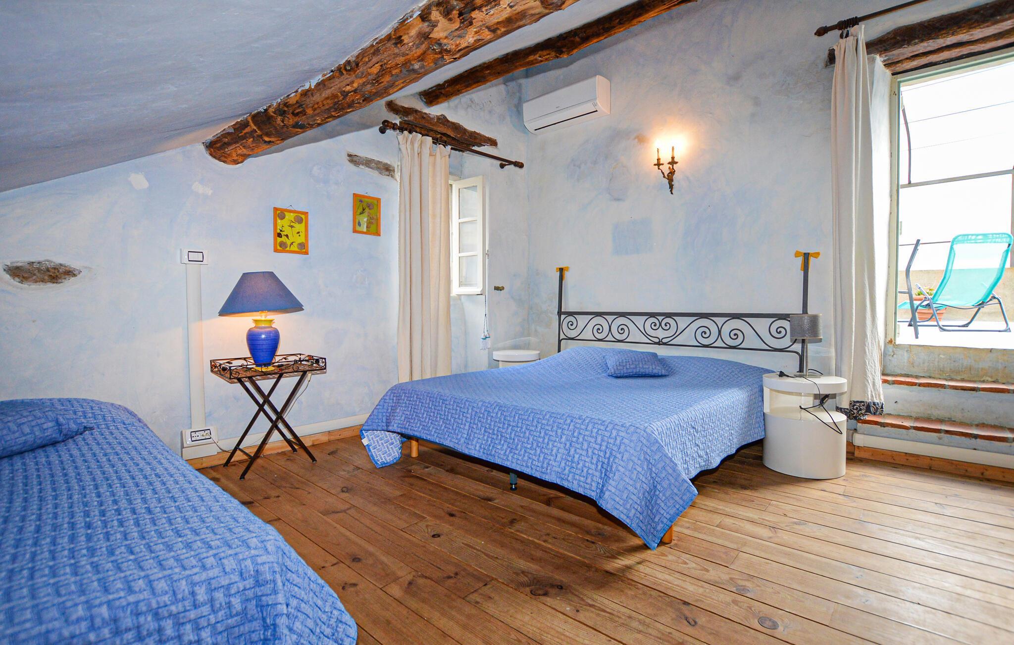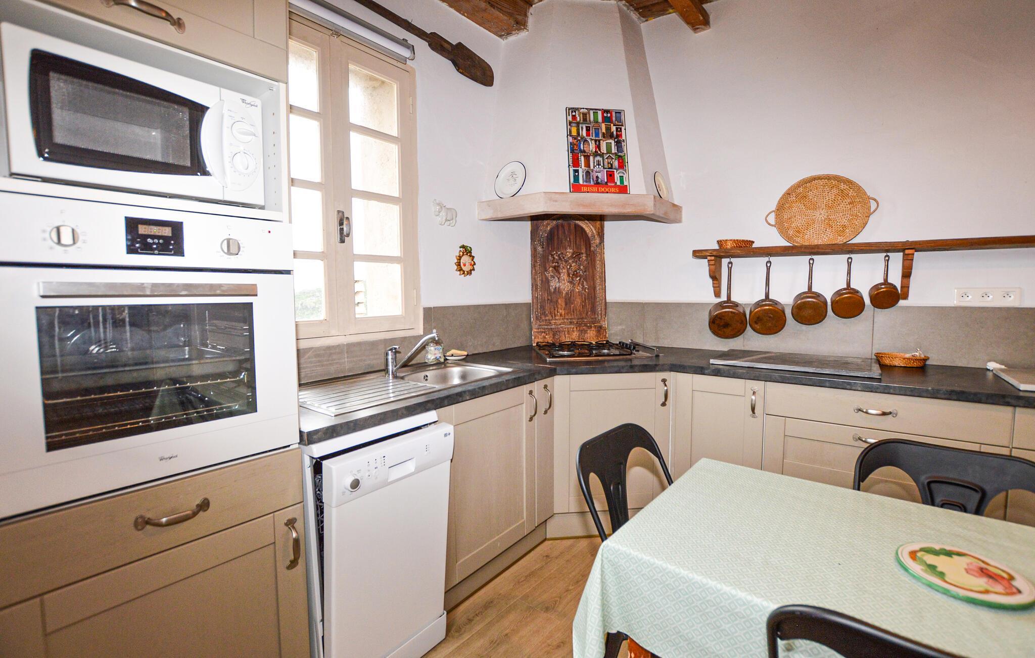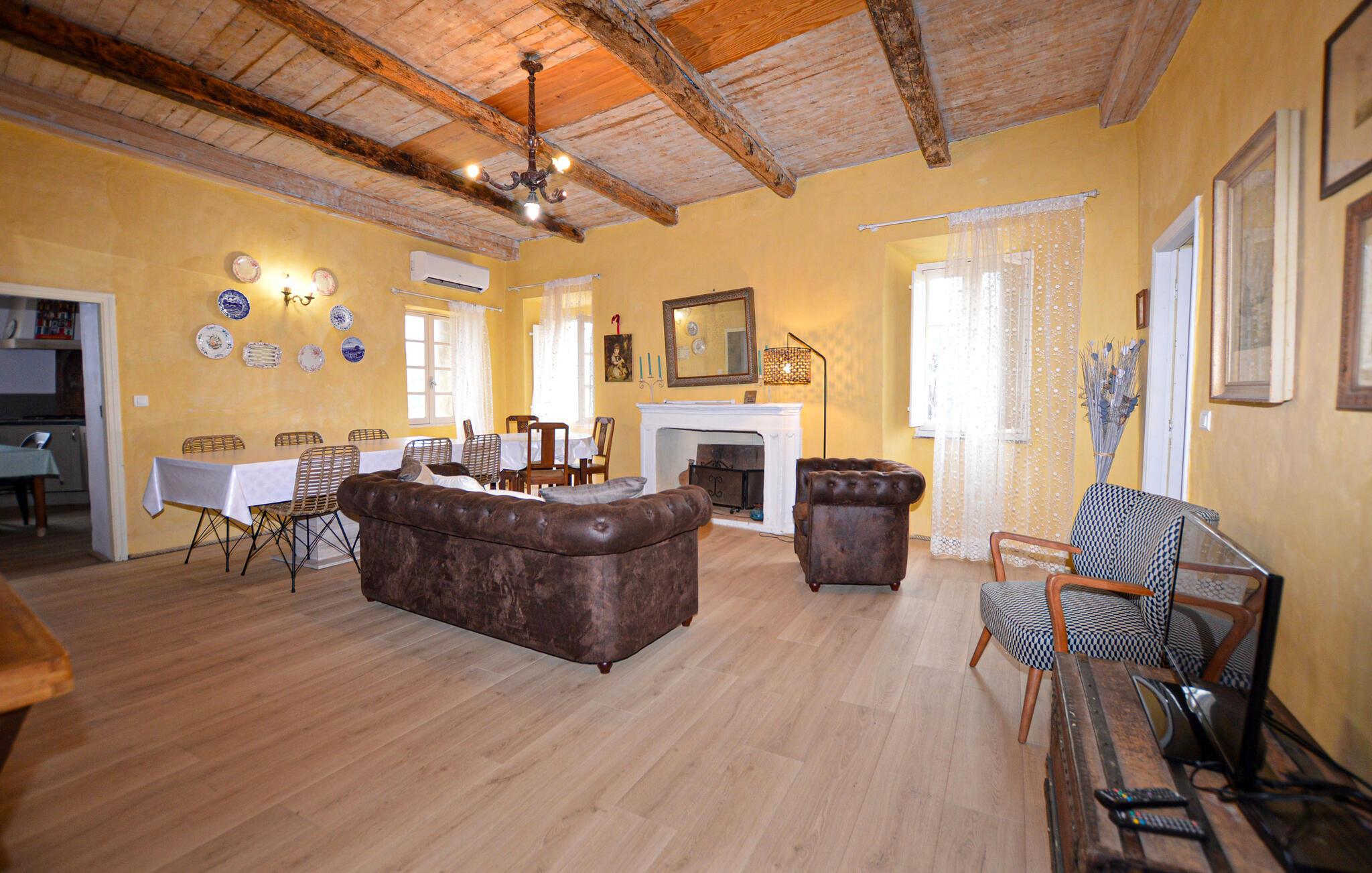 Denne romantiske ferieoase venter jer højt oppe i Korsikas bjerge, og tilbyder jer masser af plads til en afslappende pause med familien. Tilbring hyggelige spilleaftener i den hyggelige stue og tilbered lækre måltider i det rummelige køkken. Gennemse det lille, interne bibliotek for noget interessant læsning, og gør jer godt tilpas i den indbydende sofa.