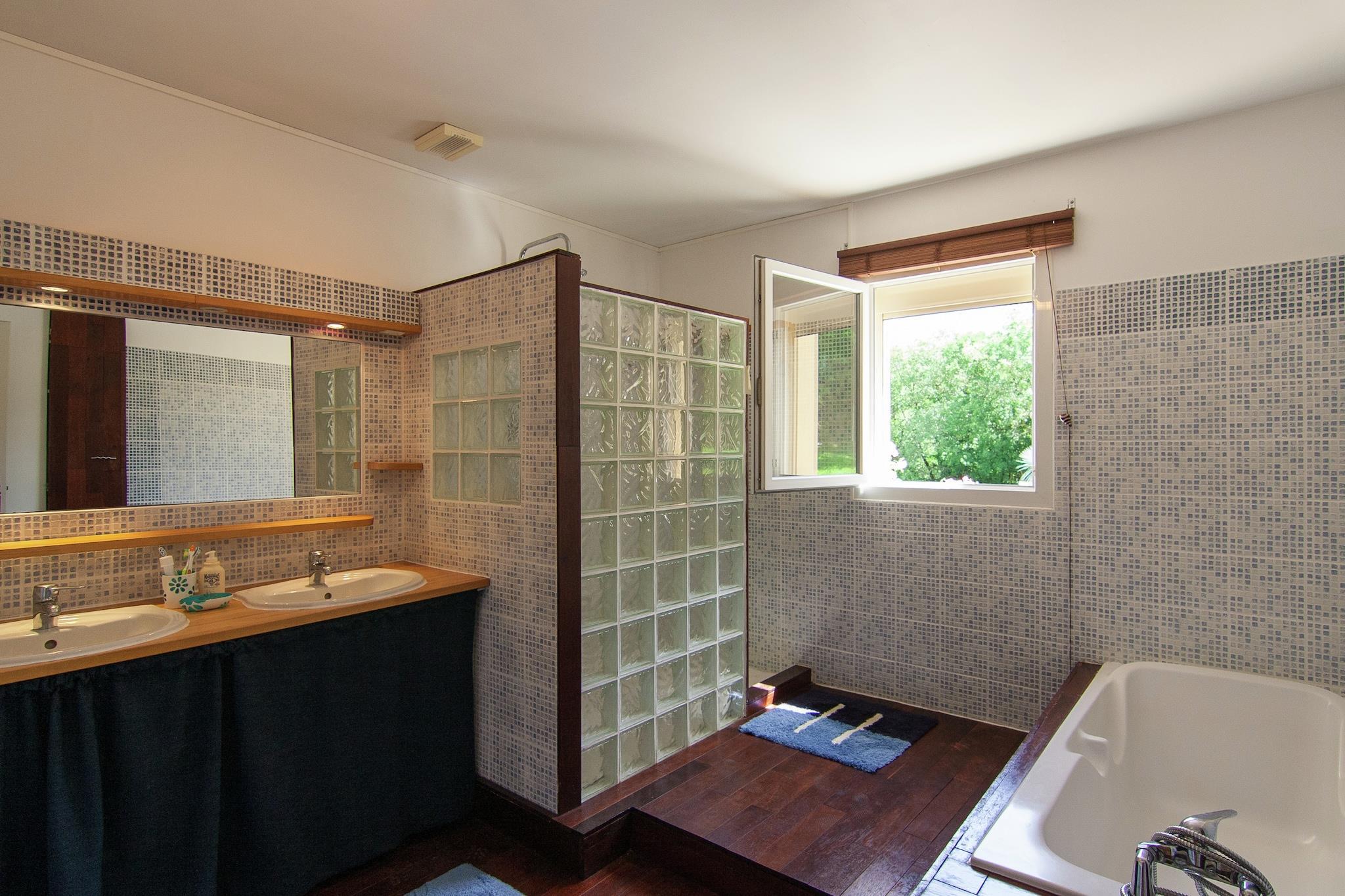Stueetage: (åbent køkken(elkedel, komfur(Komfur med fire kogeplader, elektrisk), emhætte, kaffemaskine(kopper, kaffetragt), ovn, mikrobølgeovn, opvaskemaskine , køle-fryseskab), stue / spisestue(Fjernsyn(fladskærm, parabol), DVD-afspiller, CD-afspiller), soveværelse(dobbeltseng(dobbelt dynebetræk, 160 x 200 cm)), soveværelse(2x enkeltseng(dynebetræk, 90 x 200 cm)), soveværelse(køjeseng(dynebetræk)), badeværelse(badekar, bruser, 2x håndvask, varme(elektrisk)), toilet, bibliotek, pulterkammer(vaskemaskine)) Kælderetage: (Soveværelse med badeværelse(dobbeltseng(dobbelt dynebetræk, 160 x 200 cm), bruser, håndvask), toilet) Poolhus: (terrasse) varme(gulvvarme), terrasse(privat), have(privat, delvist indhegnet, > 1000 m2), havemøbler, grill(trækul), parkering, liggestole, Parasol, swimmingpool(privat, opvarmes, vand alarm, 8 x 5 m., opened from Jun upto and including Sep), barneseng, barnestol, strygebræt, strygejern