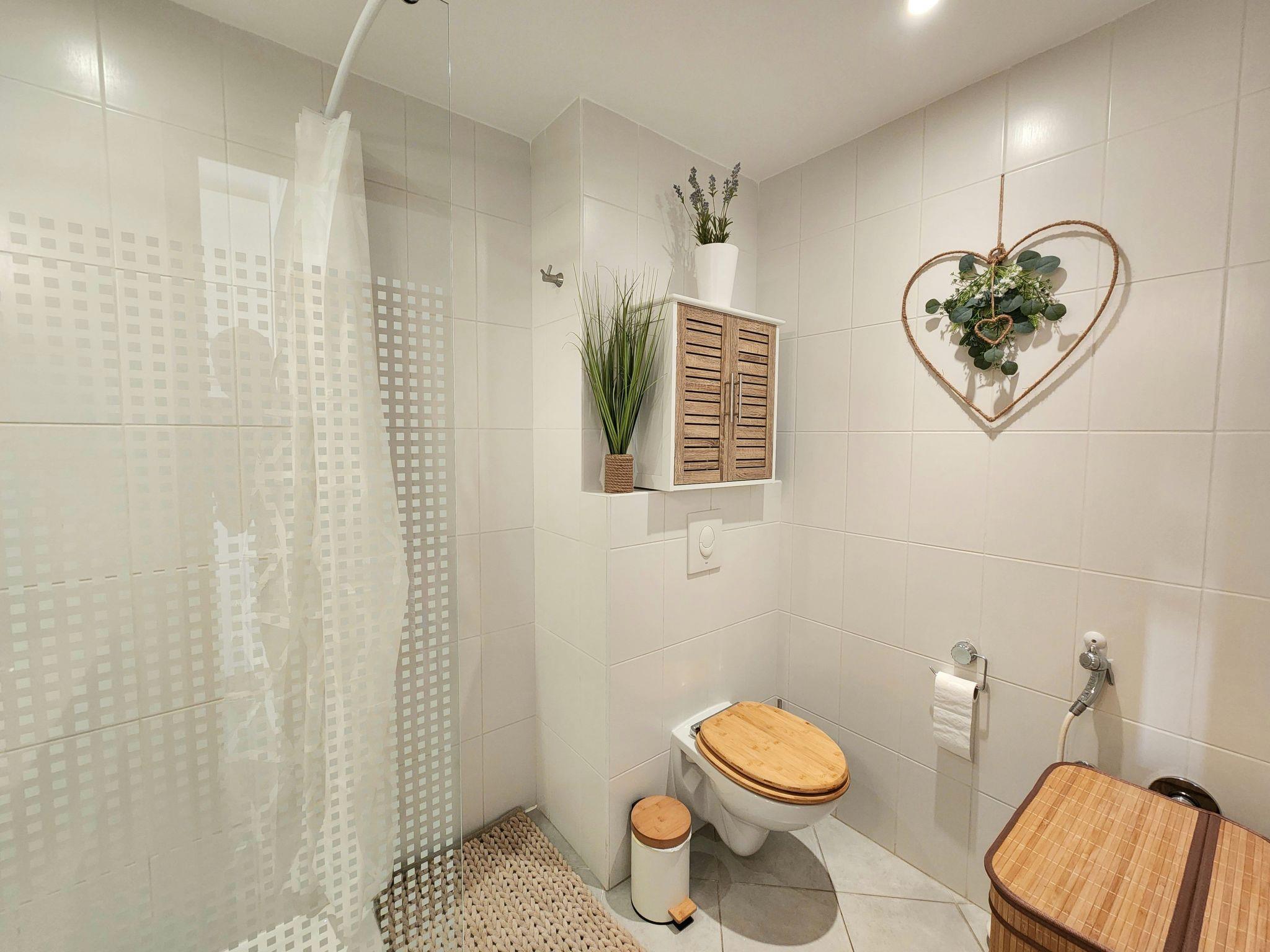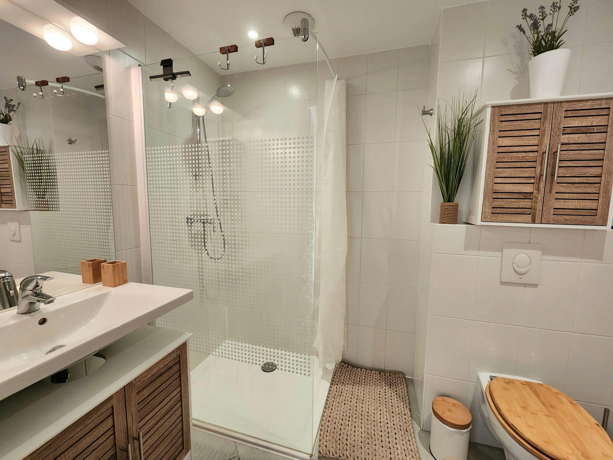 Outside, the terrace invites you to relax and share moments together. Although barbecues are not permitted, this outdoor space is still the ideal place to enjoy a morning coffee or an evening glass of wine. For cycling enthusiasts, the flat offers covered, lockable bike parking and a convenient ramp at the front entrance, ensuring safety and comfort for your sports equipment.