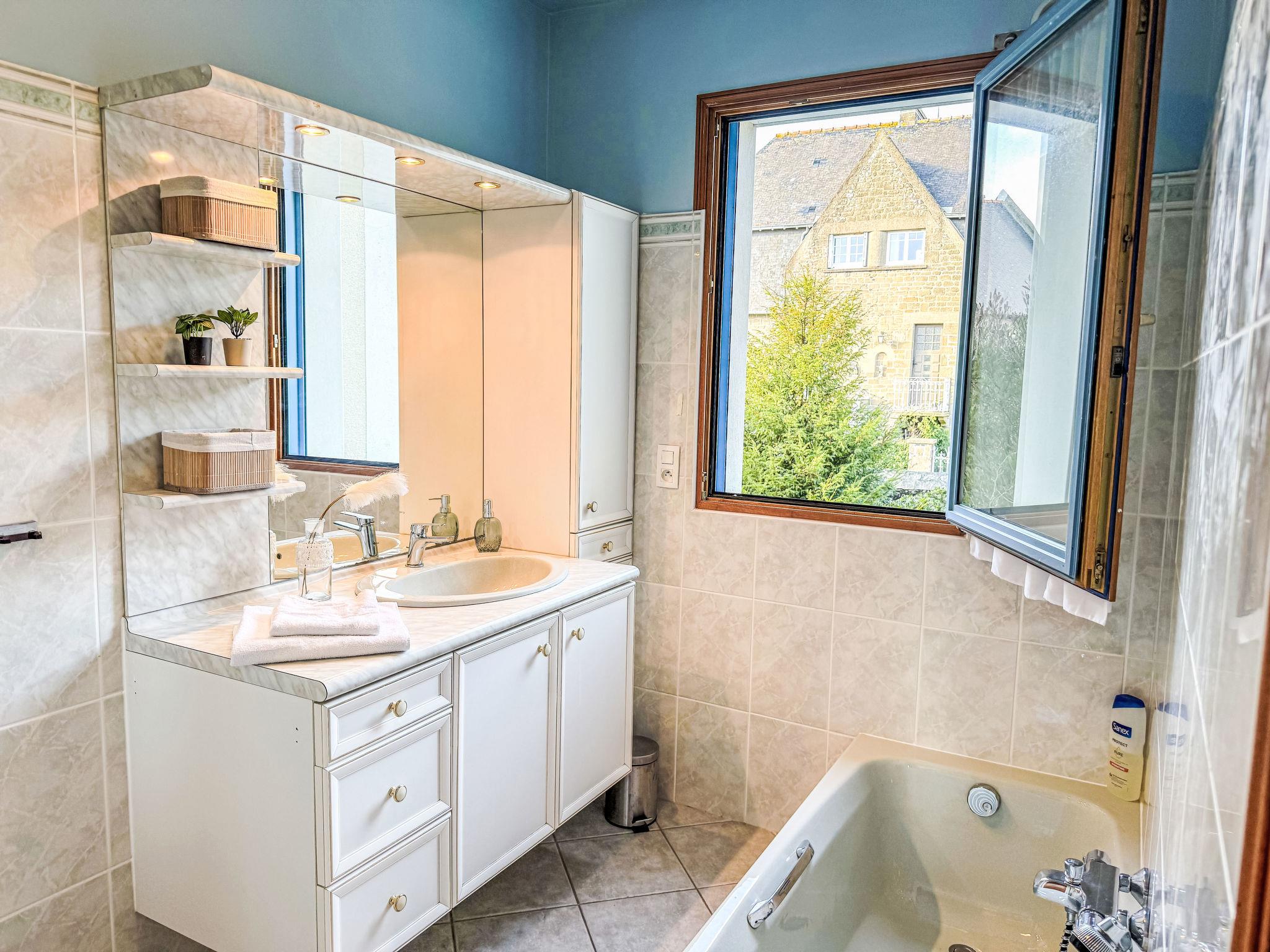 Beautiful, comfortable single-family house "Brise Marine", 2 storeys. In the centre of Cancale, in the residential district, excellent location: right in the centre but still quiet, traffic calmed area, 250 m from the sea, 250 m from the beach, in a cul-de-sac. Private: well-kept garden (fenced) with lawn. Table tennis. In the house: table football. Single garage. Shop 500 m, grocery 400 m, supermarket 1.7 km, shopping centre 14.2 km, restaurant 500 m, bakery 400 m, café 500 m, 5 minute walk to the centre, bus stop "Eglise" 400 m, sandy beach "Plage du Port Briac" 2 km, outdoor swimming pool 15.3 km, thermal baths "Thermes marins de Saint-Malo" 12.4 km. Sports harbour 500 m, golf course (24 hole) 25 km, surf school 12.4 km, minigolf 750 m, riding stable 2.2 km. Nearby attractions: Saint-Malo 14.7 km, Dinard 20.2 km, Dinan 32.3 km, Dol de bretagne 19.7 km, Grand Aquarium de Saint-Malo 13.8 km, Mont Saint-Michel 36 km.