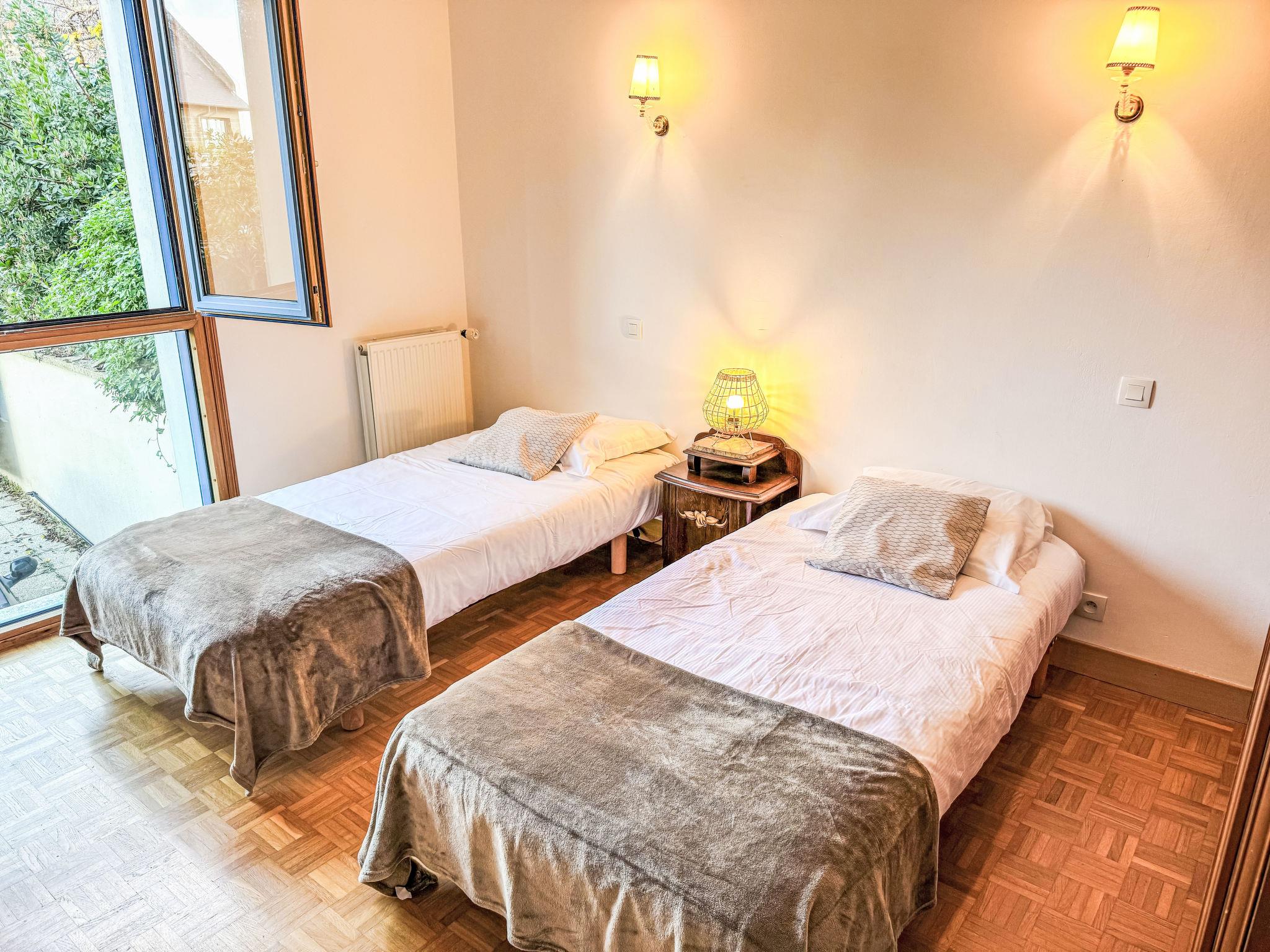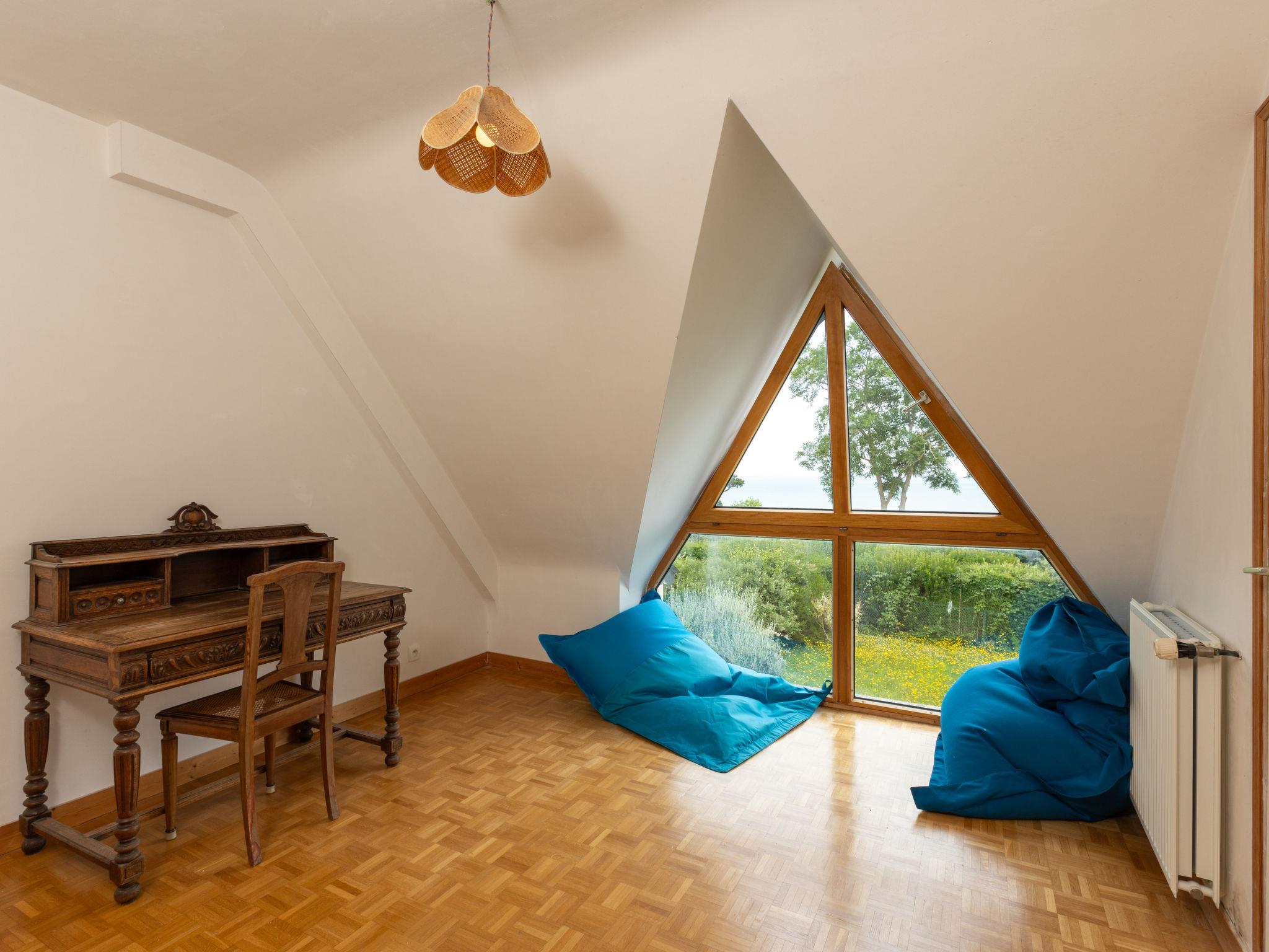 7-room house 260 m2. Comfortable furnishings: large living/dining room with TV (flat screen). Exit to the terrace. 1 large room with 2 beds (90 cm, length 190 cm). 1 room with 1 french bed (1 x 140 cm, length 190 cm). Kitchen (oven, dishwasher, 3 ceramic glass hob hotplates, toaster, kettle, microwave, electric coffee machine) with dining table. Exit to the garden, to the terrace. Bath/shower, sep. WC. Upper floor: 2 rooms, each room with 1 french bed (1 x 140 cm, length 190 cm). 1 room with 1 bed (90 cm, length 190 cm), 1 french bed (1 x 140 cm, length 190 cm). Exit to the balcony. Large office. Bath/shower, sep. WC. Terrace 12 m2, south facing position. Balcony furniture, barbecue. Very beautiful view of the sea. Facilities: washing machine. Internet (WiFi, free). Please note: suitable for families. Non-smoking house. Smoke alarm. Offer by a private individual according to Art. 155, IV of CGI.
