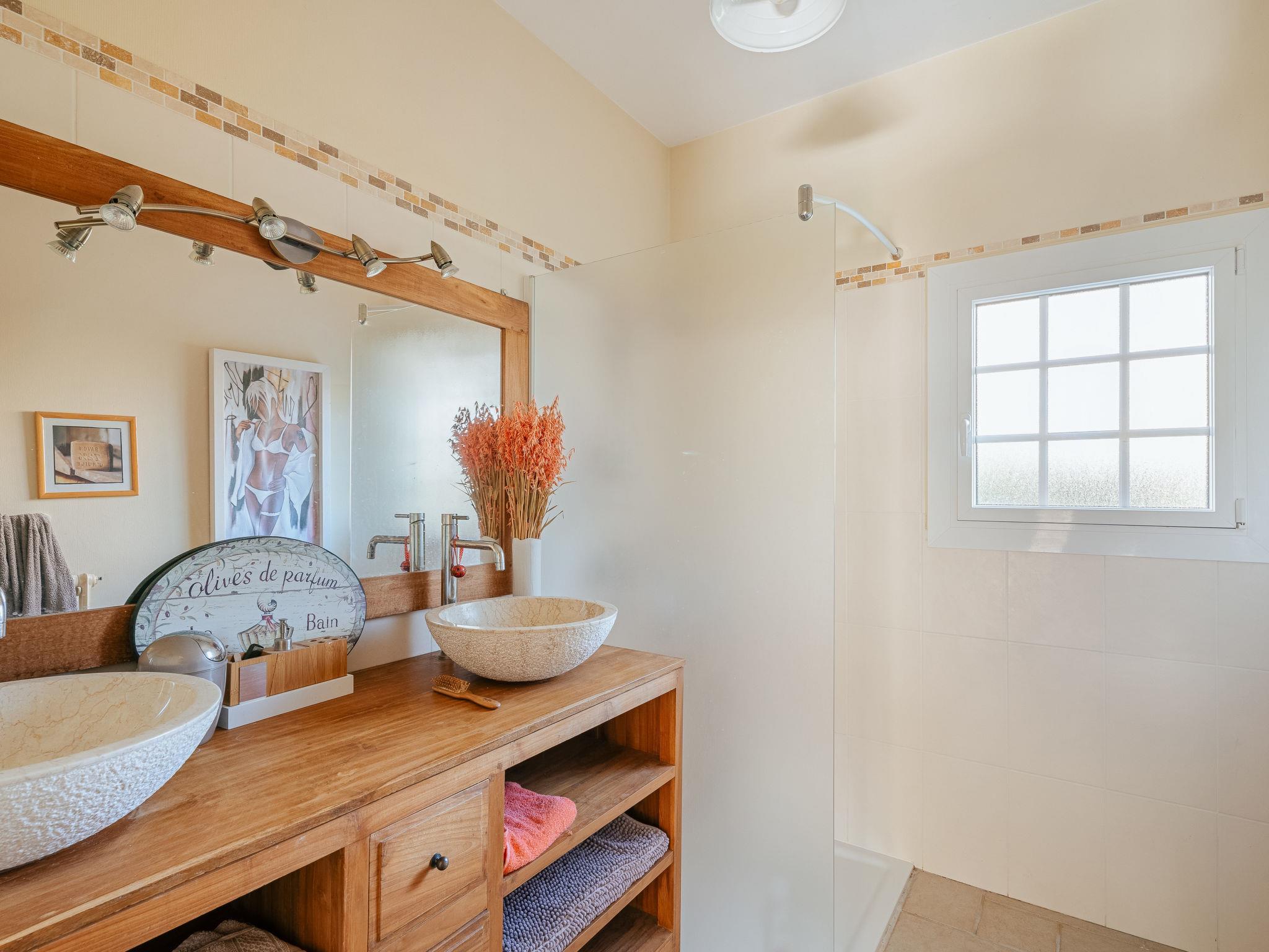 "Terre Neuvas", 4-room terraced house 110 m2 on 2 levels. Comfortable and tasteful furnishings: large living/dining room with TV (flat screen), electric shutters. Exit to the garden. 1 room with 1 french bed (1 x 180 cm, length 200 cm). Exit to the terrace. Open kitchen (dishwasher, 3 induction hot plates, toaster, kettle, microwave, freezer, electric coffee machine). Exit to the garden. Shower, sep. WC, double hand-basin. Oil heating. Heating available only from 15.10. to 15.04. Upper floor: 1 room with 1 french bed (1 x 140 cm, length 190 cm). 1 large room with 2 beds (90 cm, length 190 cm), 1 french bed (1 x 140 cm, length 190 cm). Large terrace 25 m2, south facing position terrace, large garden 750 m2, south facing position. Terrace furniture, barbecue. Facilities: washing machine, iron, hair dryer. Internet (WiFi, extra). Parking. Please note: smoke alarm. Offer by a private individual according to Art. 155, IV of CGI.