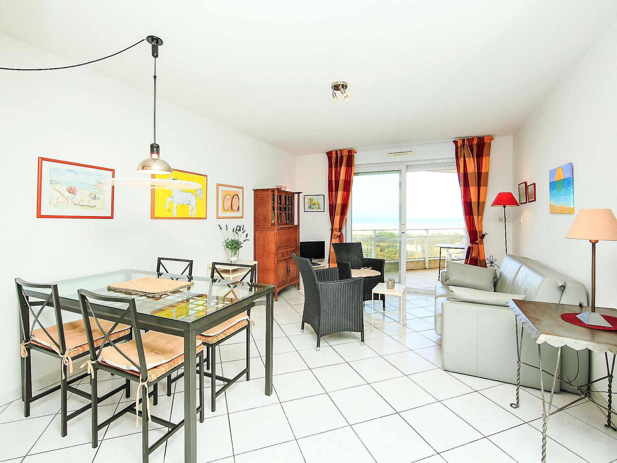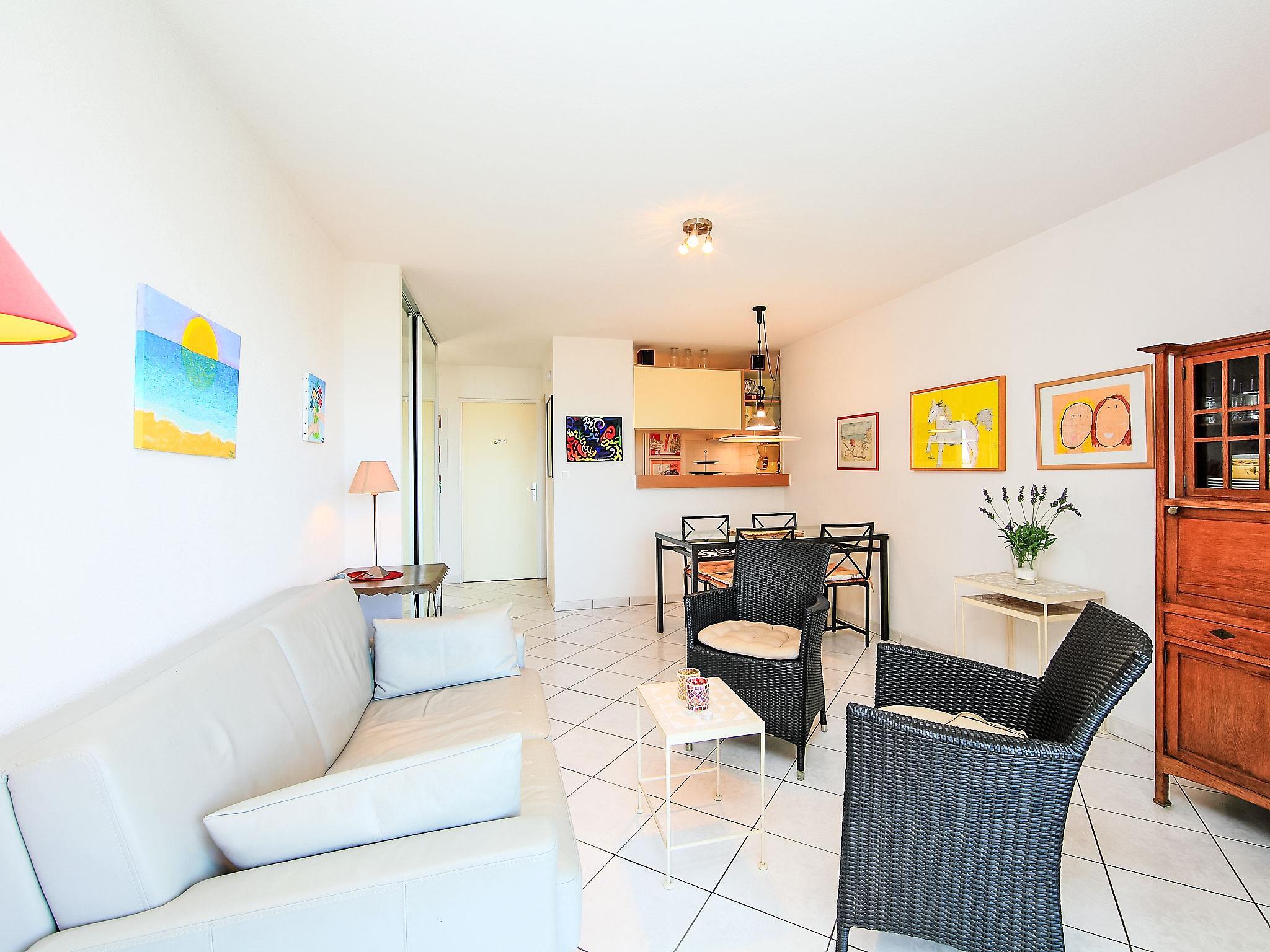 3-room apartment 48 m2 on 1st floor. Beautiful furnishings: living/dining room with flat screen and hi-fi system. Exit to the terrace. 1 room with 1 french bed (2 x 90 cm, length 190 cm). Exit to the terrace. 1 children's room with 1 x 2 bunk beds (90 cm, length 190 cm). Exit to the terrace. Open kitchen (dishwasher, 4 ceramic glass hob hotplates, toaster, kettle, microwave, electric coffee machine, combination microwave). Bathroom, sep. WC. Heating. Small terrace 8 m2, east facing position, small terrace 8 m2, west facing position. Terrace furniture. Beautiful view of the sea and the mountains. Facilities: washing machine, iron, hair dryer. Internet (WiFi, extra). Garage. Please note: smoke alarm. FR6660.180.4
