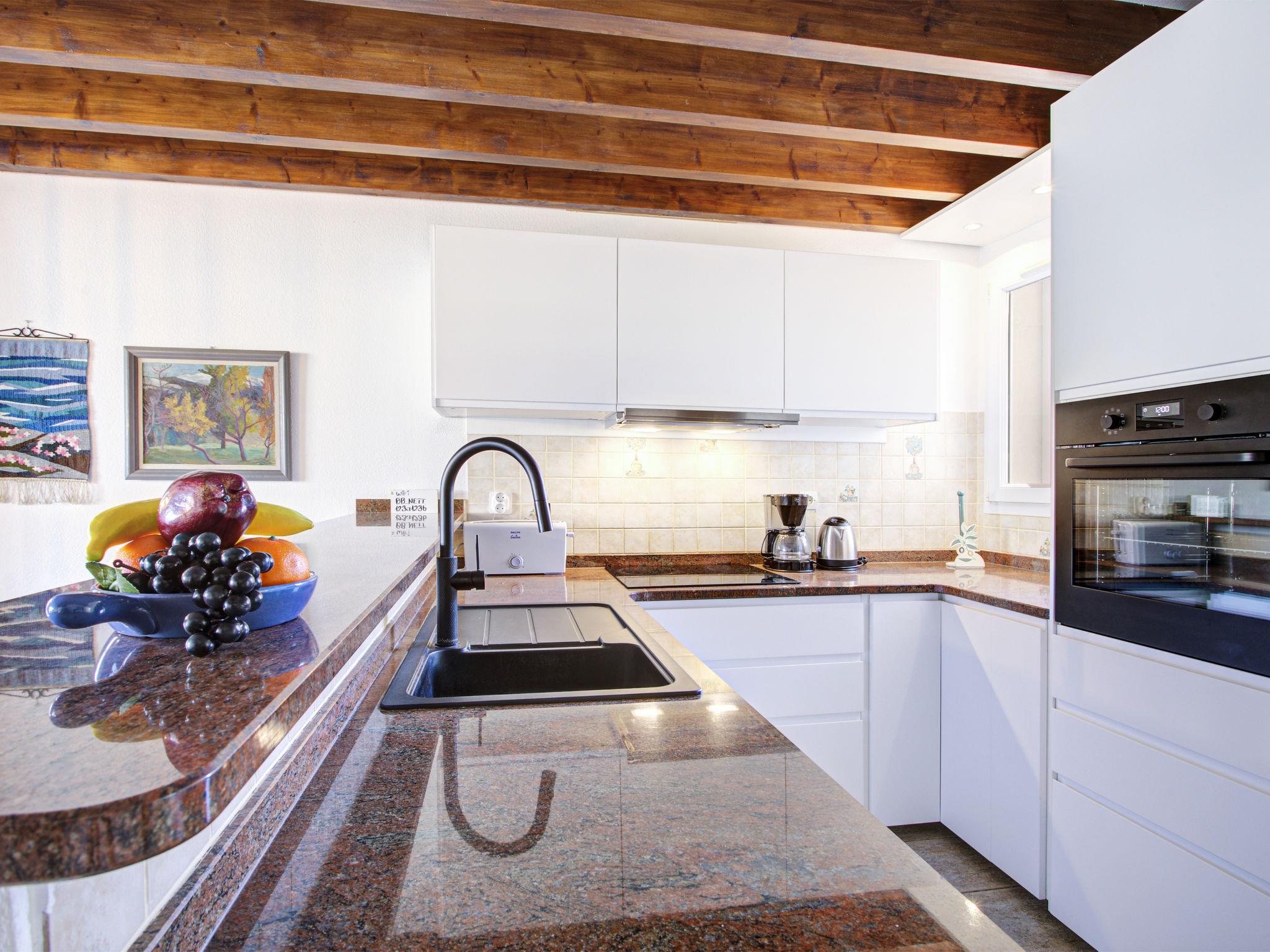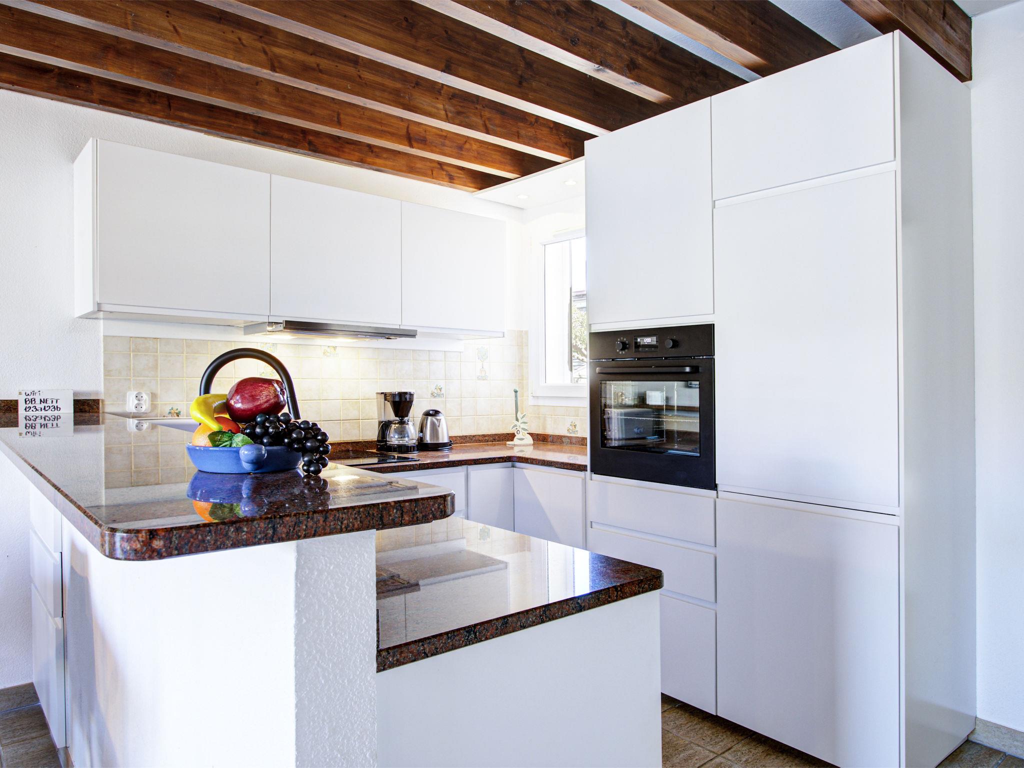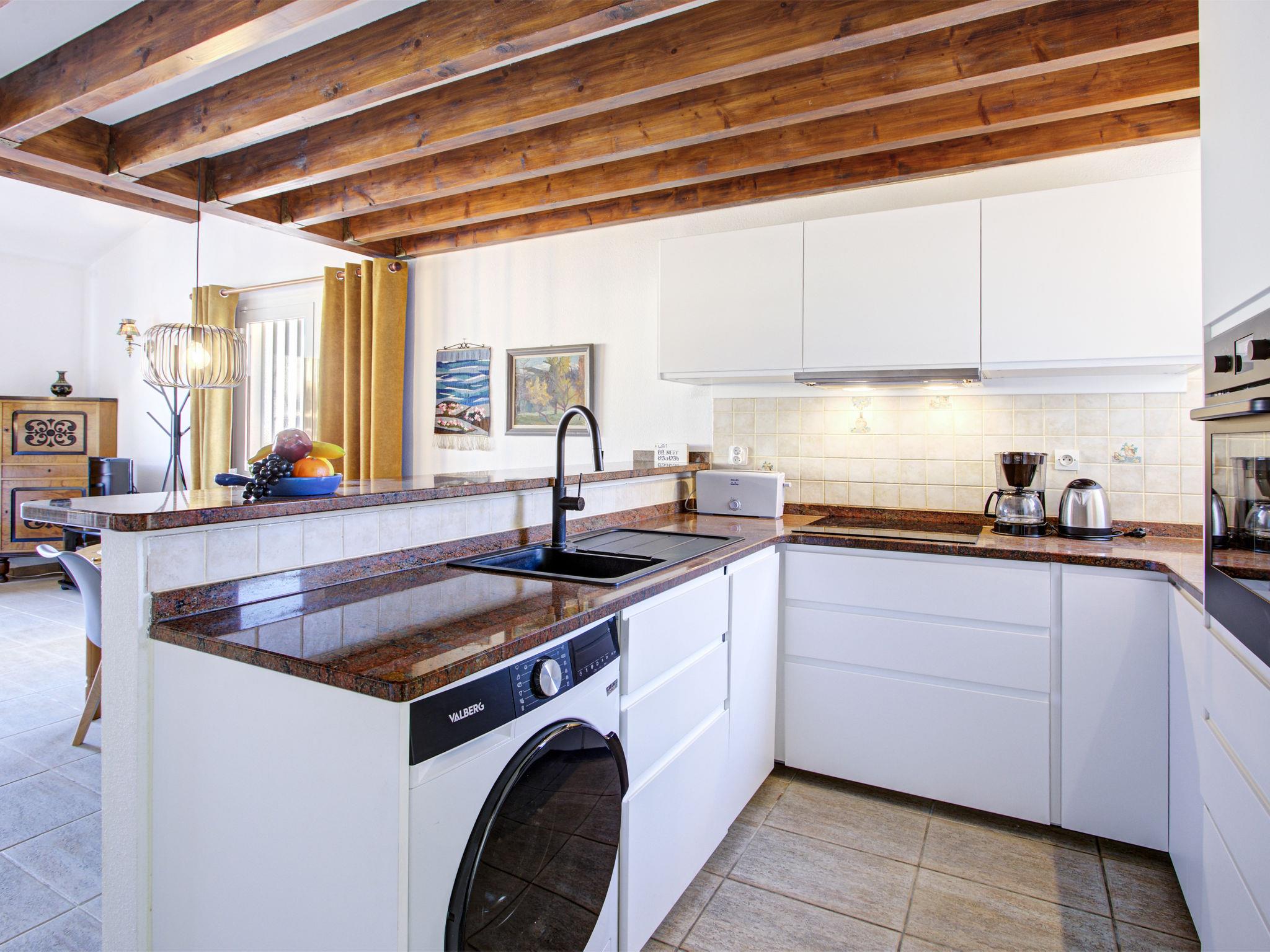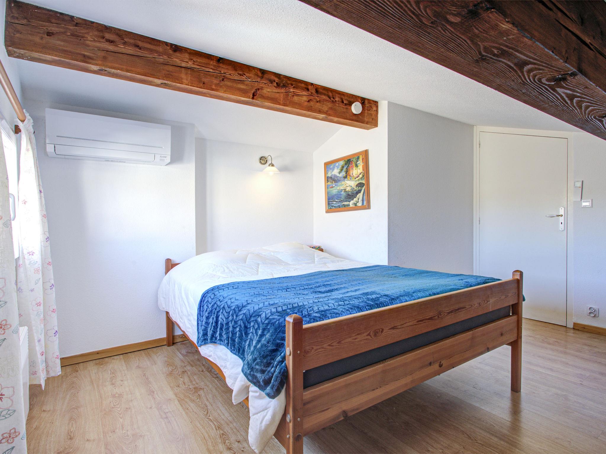 3-room house 73 m2 on 2 levels. Comfortable and beautiful furnishings: living/dining room with 1 double sofabed (1 x 140 cm, length 190 cm), TV, flat screen and air conditioning. Exit to the terrace. 1 room with 1 french bed (1 x 140 cm, length 190 cm), air conditioning. Open kitchen (oven, dishwasher, 4 ceramic glass hob hotplates, toaster, kettle, freezer, electric coffee machine). Shower/WC. Electric heating. Upper floor: 1 room with 1 french bed (1 x 160 cm, length 200 cm), air conditioning. Shower/WC. Terrace 25 m2, north facing position and west facing position terrace 70 m2, east facing position. Terrace furniture. Facilities: washing machine. Internet (WiFi). Parking. Please note: non-smokers only. Smoke alarm. Offer by a private individual according to Art. 155, IV of CGI.