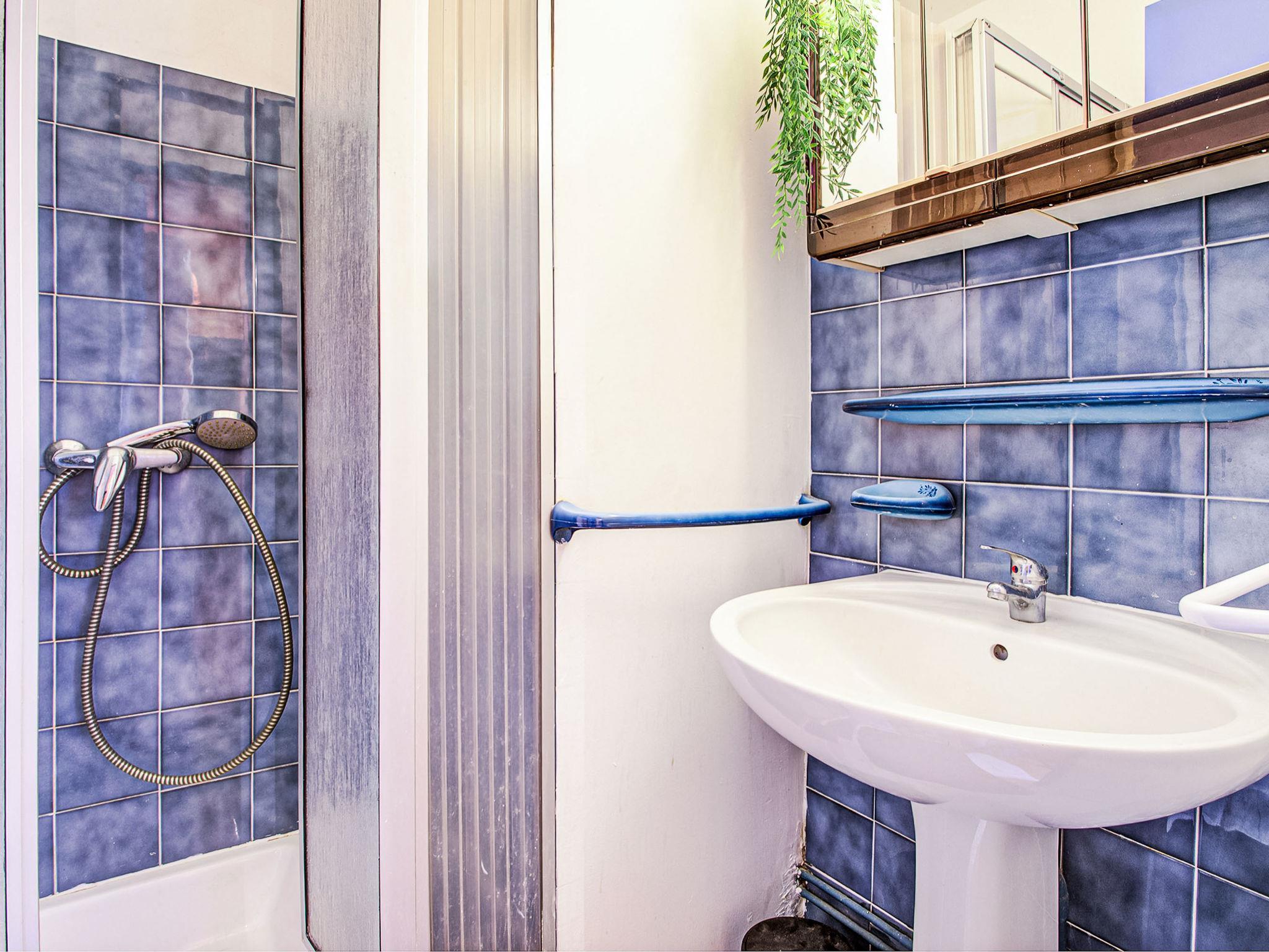 1-room apartment 22 m2 on 4th floor, north-east facing position. Simple furnishings: with 1 fold-away bed (120 cm, length 190 cm), 1 wall-trunk bed (80 cm, length 190 cm), TV (flat screen), fan. Exit to the balcony. Open kitchen (mini-oven, oven, 2 ceramic glass hob hotplates, toaster, kettle, microwave, electric coffee machine). Shower, sep. WC. Electric heating. Balcony 4 m2, north facing position and, east facing position. Terrace furniture. Side view of the sea. Facilities: washing machine. Internet (WiFi, extra). Please note: non-smokers only. Smoke alarm. Offer by a private individual according to Art. 155, IV of CGI.