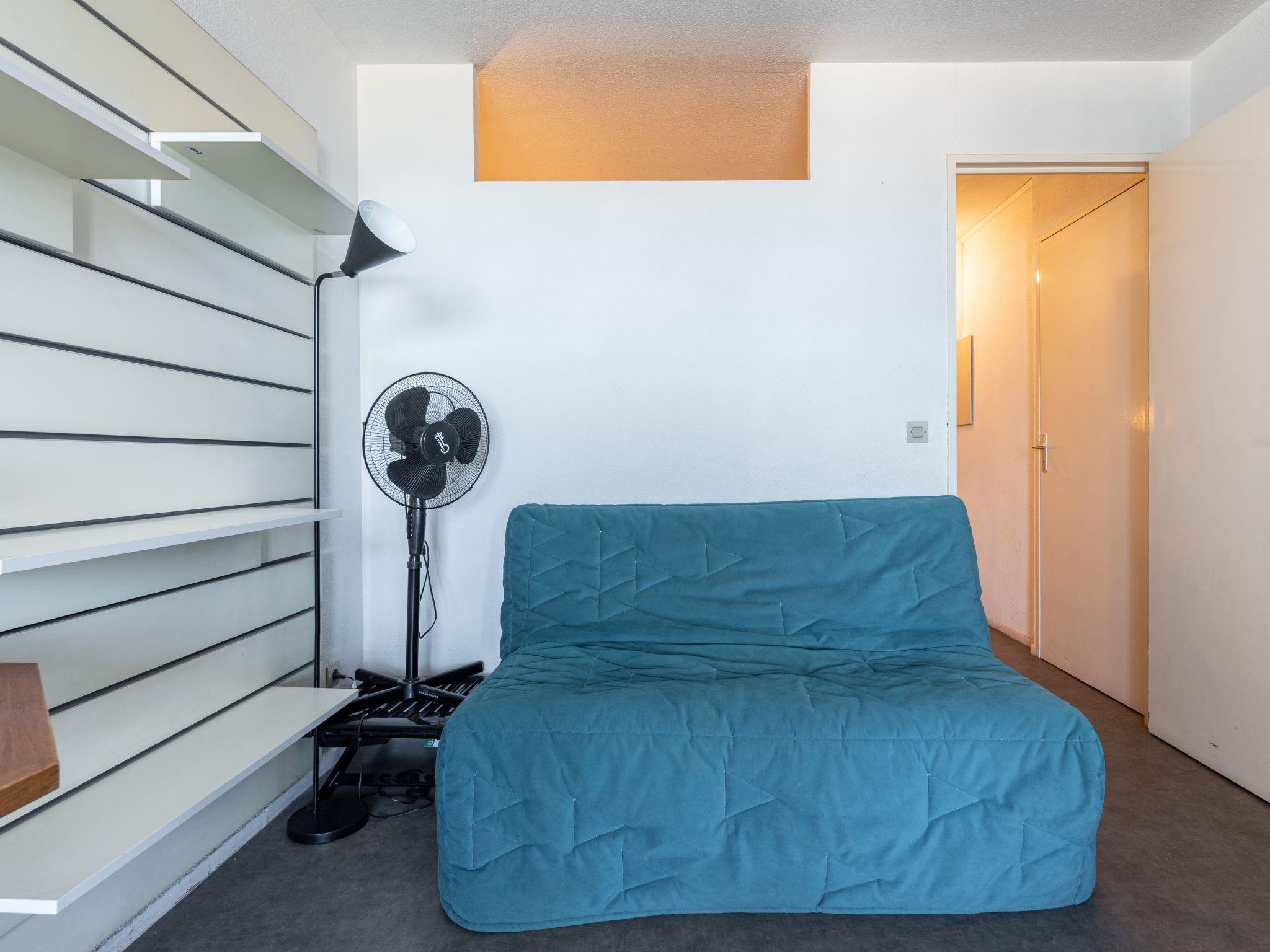 2-room apartment 41 m2 on 4th floor. Living/dining room with 1 double sofabed (1 x 140 cm, length 190 cm), TV (flat screen), fan. Exit to the balcony. 1 small room with 1 french bed (1 x 140 cm, length 190 cm). Sleeping alcove with 1 bed (90 cm, length 190 cm). Kitchenette (4 hot plates, mini-oven, oven, toaster, kettle, microwave, electric coffee machine). Bathroom, sep. WC. Electric heating. Balcony 7 m2, east facing position. Terrace furniture. View of the sea. Facilities: Internet (WiFi, extra). Parking. Please note: 1 pet/ dog allowed. Smoke alarm.