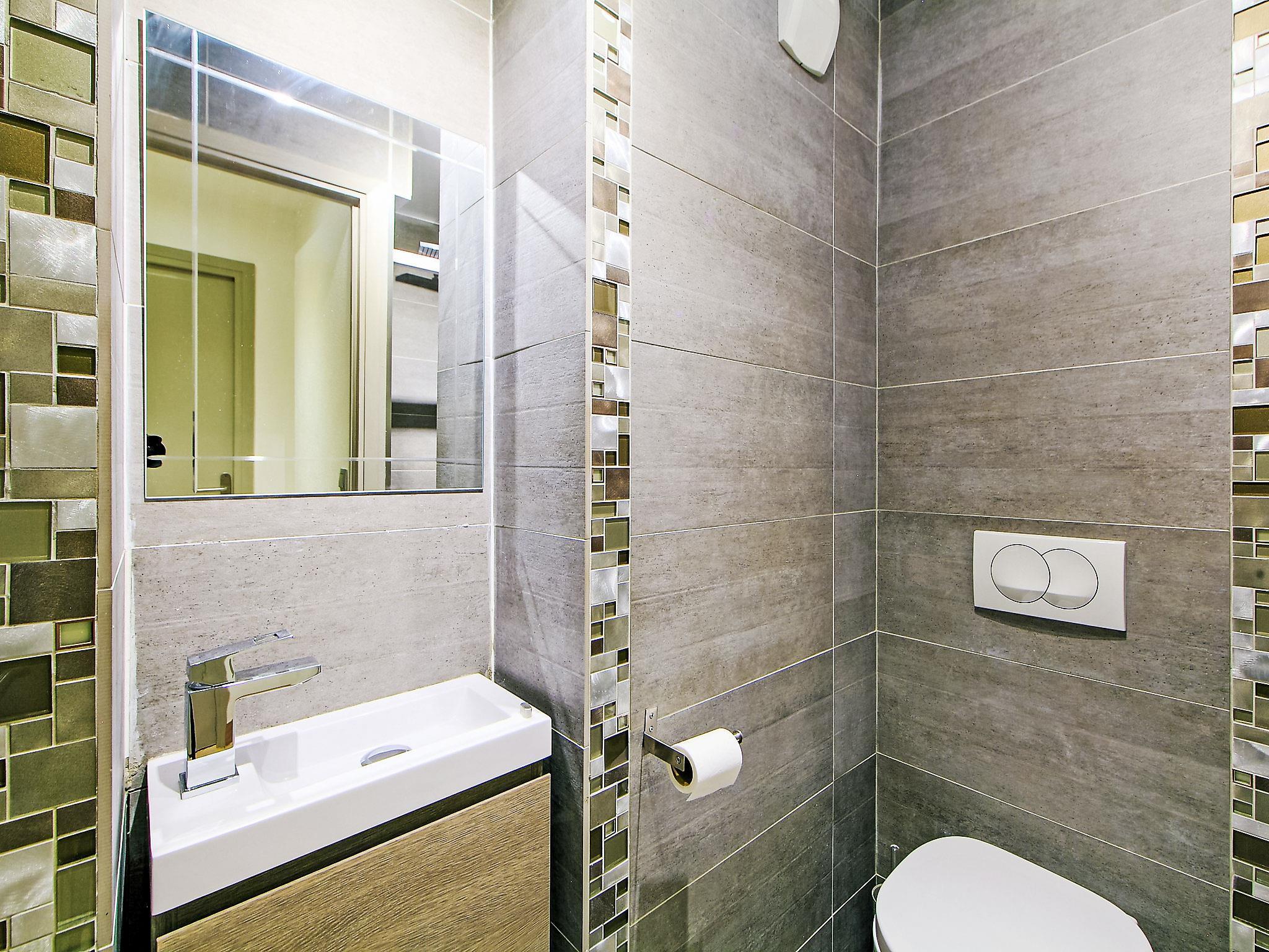 4-room apartment 92 m2 on 1st floor. Fully renovated in 2015, comfortable and modern furnishings: living/dining room with satellite TV, flat screen and air conditioning. Exit to the terrace. 1 room with 1 french bed (160 cm), air conditioning. Exit to the terrace. 1 room with 1 french bed (160 cm), air conditioning. Exit to the terrace. 1 small room with 1 bed (120 cm), air conditioning. Large, open kitchen (oven, dishwasher, 3 induction hot plates, microwave, electric coffee machine). Bath/WC, shower/WC. Forced-air heating. Terrace 12 m2, terrace 15 m2. Terrace furniture. Very beautiful view of the sea. Facilities: washing machine, dryer. Internet (WiFi, free). Please note: smoke alarm. 06029003778AK