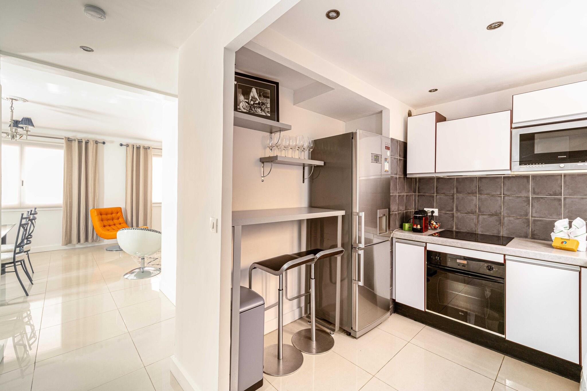 This elegant apartment is superbly positioned in the heart of Cannes, located behind the famous Martinez. - By plane: Nice airport is 30 minutes from Cannes. - Private chauffeur from Nice airport: booking on request - By car: Public parking 100 m away - By train: the station is a short walk away. This 66 square meter apartment, located on the ground floor of a building with elevator, is a haven of peace in the heart of the city. It offers spacious, comfortable living space, ideal for a relaxing stay. Here's a detailed description of its features and amenities: - A large, bright and welcoming living room where you can relax and spend time with family or friends. It is equipped with a TV, a sofa bed and also includes a dining area. - A fully equipped open kitchen: The kitchen is well equipped with a microwave oven, hob, coffee machine, toaster and dishwasher. You'll have everything you need to prepare delicious, convenient meals. - A comfortable bedroom with a double bed, a spacious sleeping area and a superb dressing room. - A second bedroom, also with a double bed. - A south-facing balcony, offering pleasant views and a perfect place to soak up the sun. - A shower room with washbasin and separate toilet. - Storage space, - Bed linen and towels are provided. - High-speed Internet connection (WiFi) This apartment is ideal for travelers looking for a spacious, well-equipped and comfortable space. Whether you're on a business trip, vacationing with family or friends, this space offers everything you need for a pleasant stay in the heart of the city.