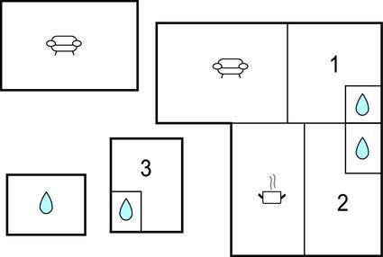 Badeværelse 3m2 (nr. 3) - WC. Varmt og koldt vand. Bruser