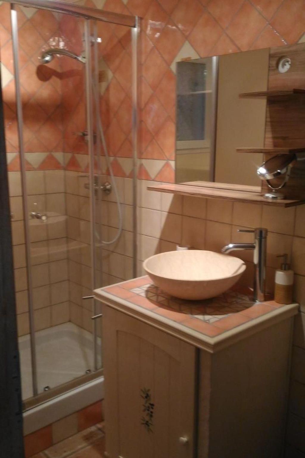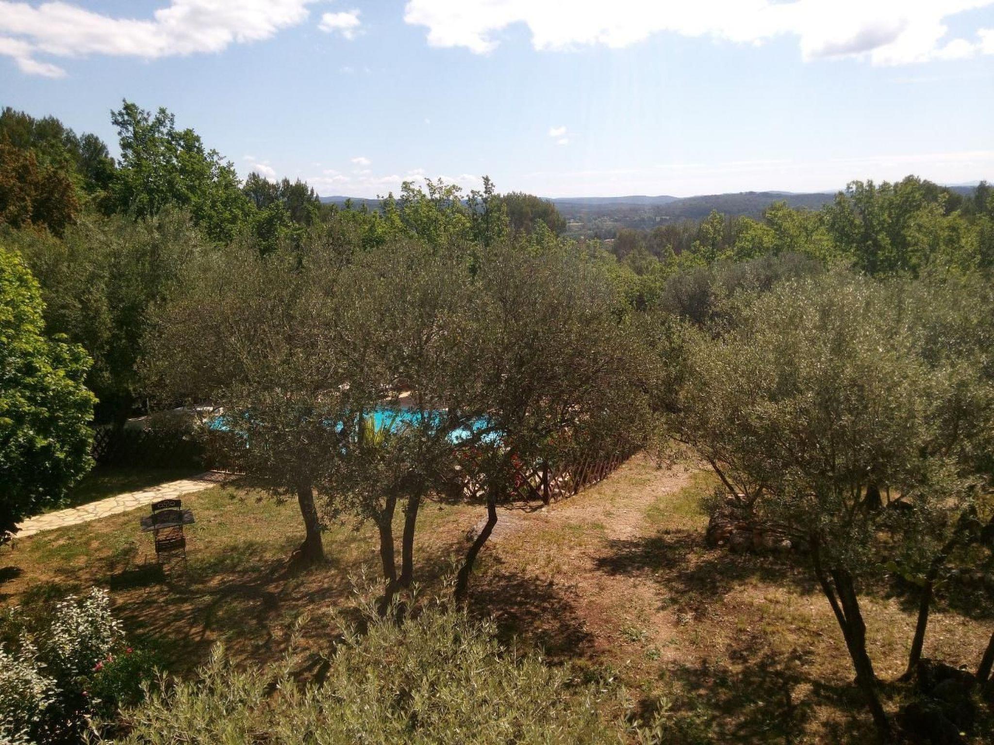Gîte for 4 people (adjoining the owner's house) with private parking (for several cars), covered terrace, kitchen/lounge, 1 bedroom with double bed (on the ground floor), bathroom with shower, separate toilet and 2 bedrooms (with double beds) on the 1st floor with private swimming pool (10 x 5 metres with diving board - depth: 1.20 m on the shallow end and 2.5 m on the deep end) available only to guests of the gîte on 9000 m² of land with several dozen oak and olive trees. The gîte is located 2.5 km from Cotignac, where you will find around fifteen restaurants and several shops. There is a supermarket 1 km from the gîte. The gîte is located 1 hour from the sea and 30 minutes from Lac de Sainte Croix (Gorges du Verdon) and 15 minutes from a river for canoeing and kayaking.