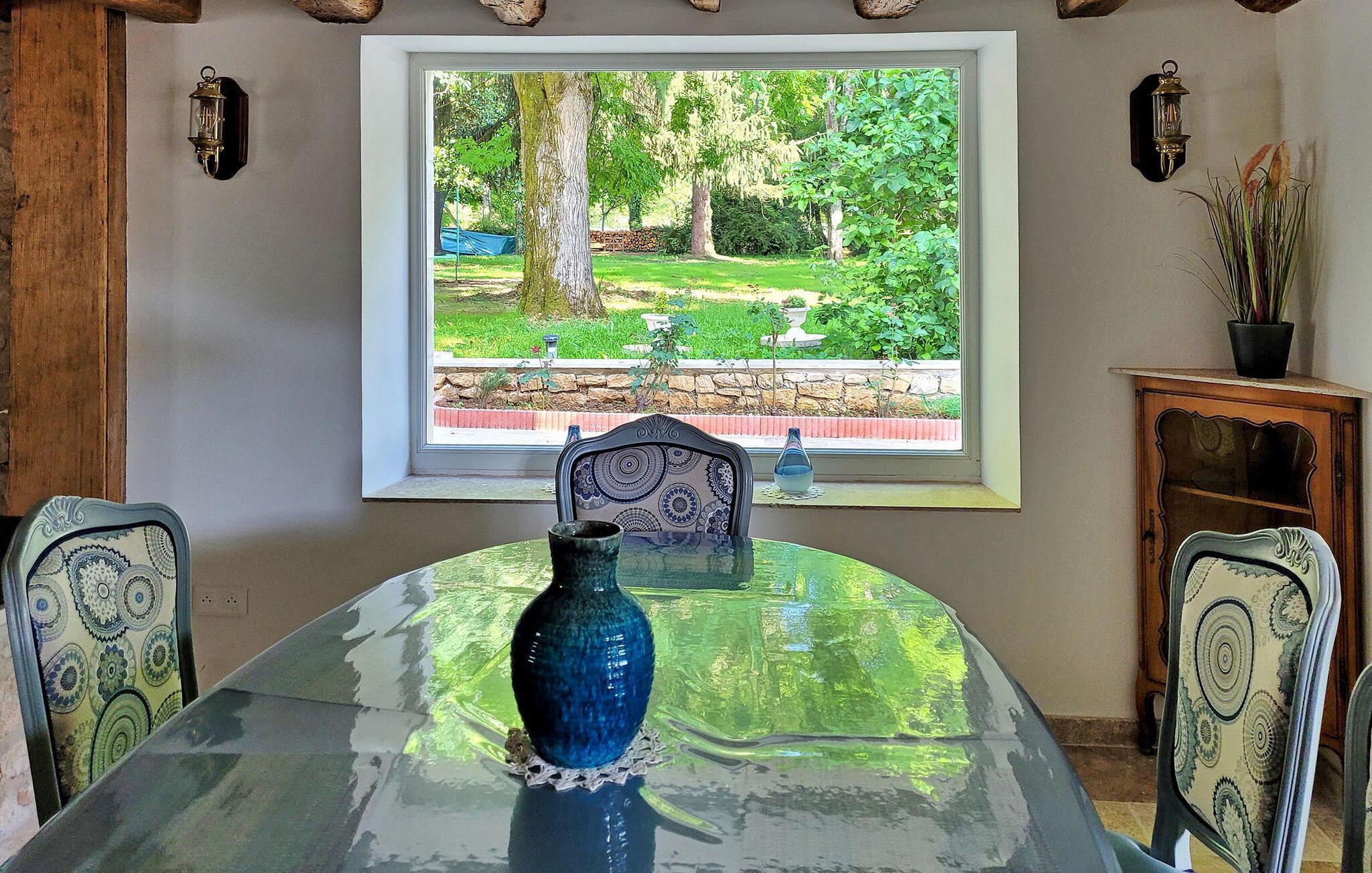 Dette rummelige feriehus, med to huse forbundet med en fælles indgang, ligger i det naturskønne landskab i Dordogne. Det første hus, omkring 120 m², har køkken, opholdsstue og soveværelser med eget bad. Det andet hus, cirka 180 m², indeholder et rummeligt køkken, opholdsstue, spiseplads og flere soveværelser med fælles badeværelser. Udenfor tilbyder ejendommen parkering udendørs spil for børn og en brolagt terrasse foran huset med rigelig siddepladser og en grill. På bagsiden er der en opvarmet swimmingpool med en stor kuppel, en brolagt terrasse med udendørsmøbler, liggestole og en udendørs solbruser. Derudover byder ejendommen på bevoksede og blomstrede områder med en behagelig udsigt til en valnøddelund. Ejendommen er beliggende på landet, men ikke afsondret, omkring 3 km fra Carlux med en sæsonbestemt udendørs restaurant og økologiske grøntsager og kød solgt af en lokal landmand.