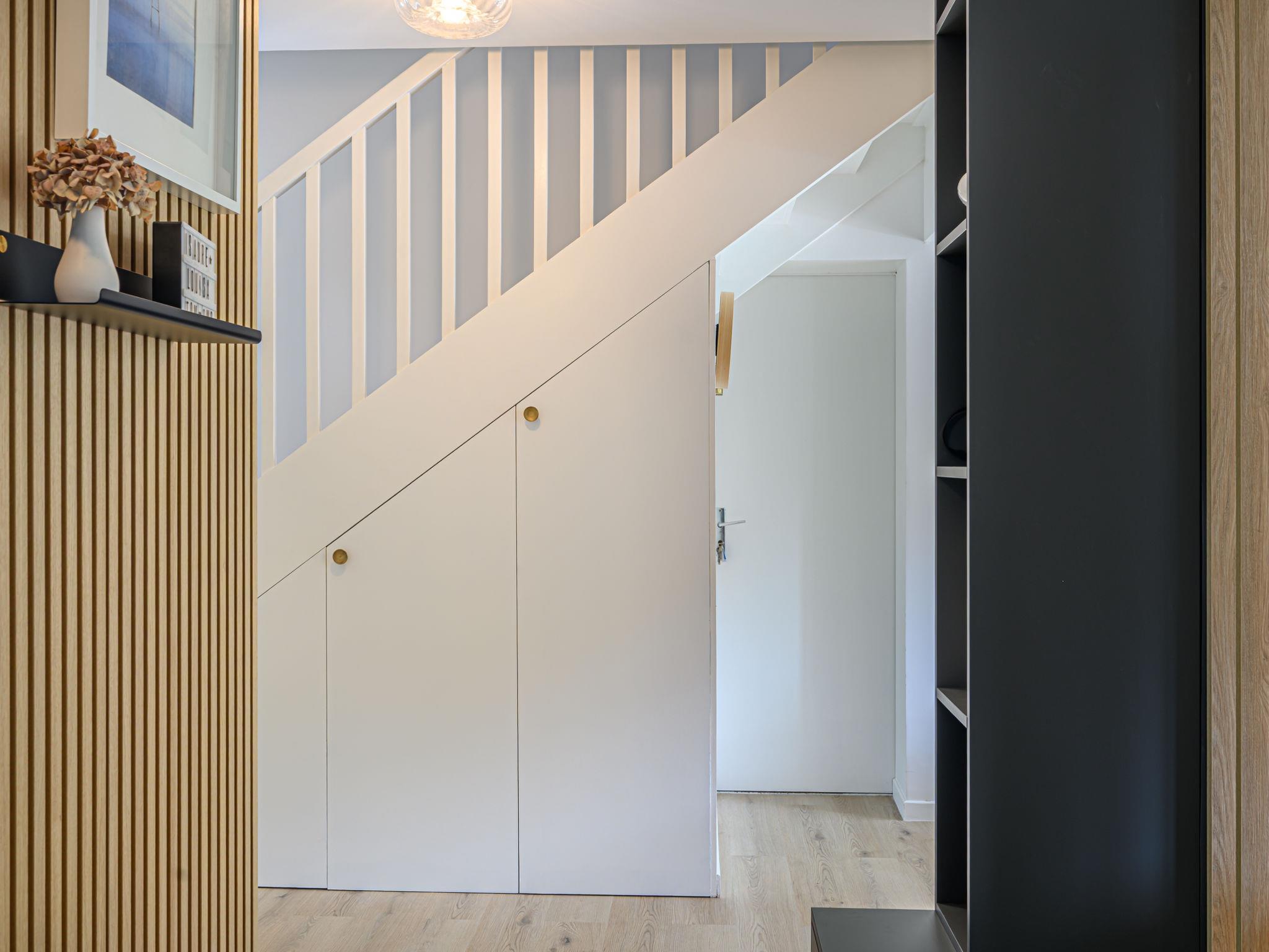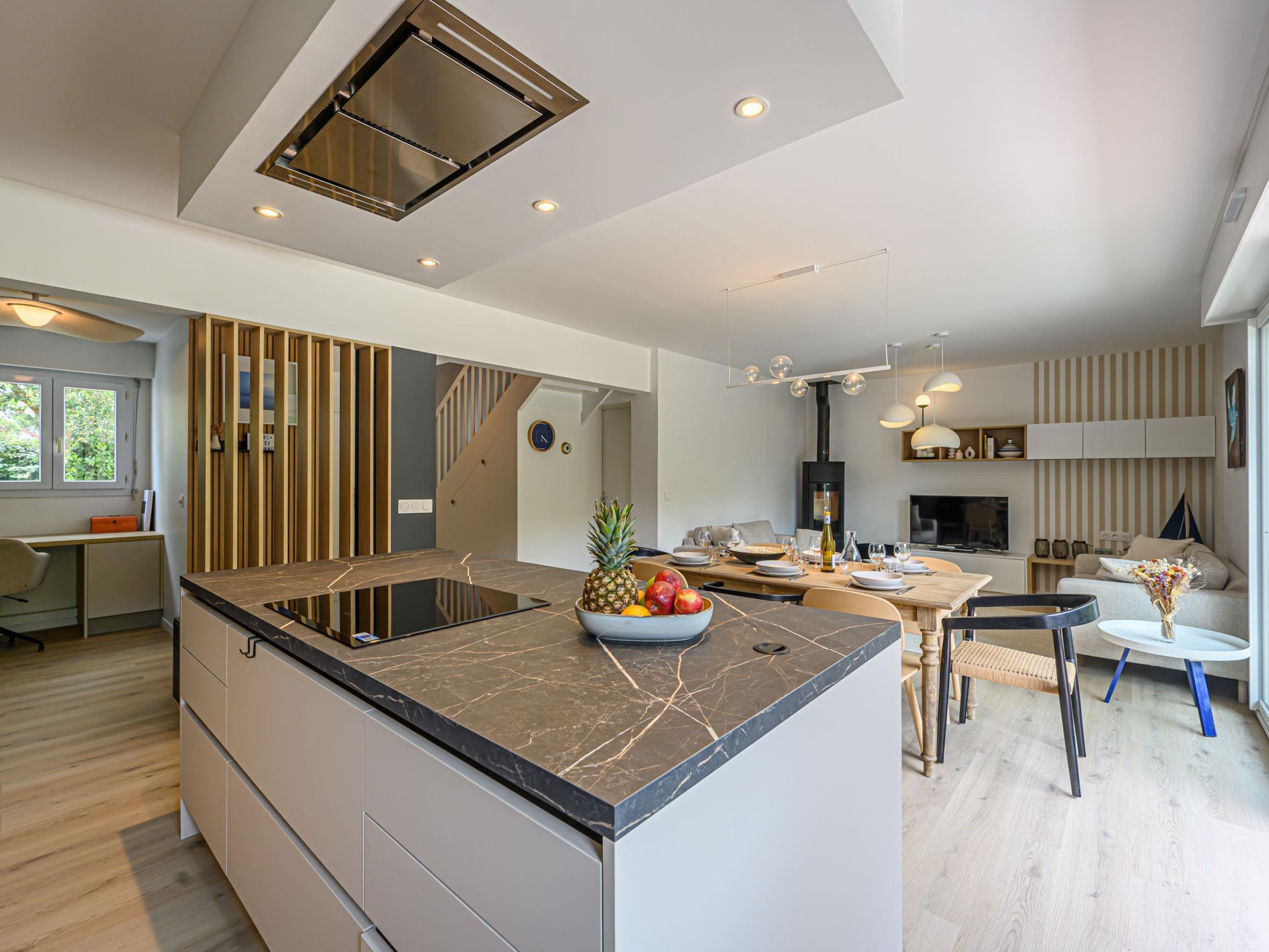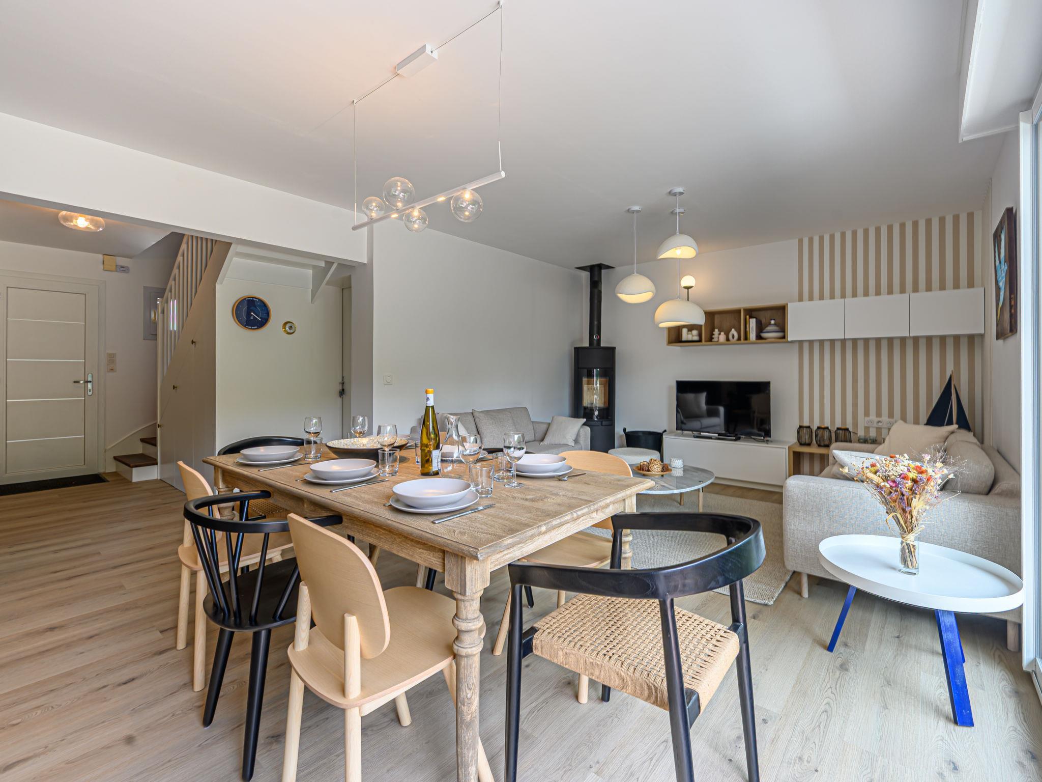 4-room terraced house 90 m2. Beautiful furnishings: living/dining room with TV. Exit to the garden. Kitchen (oven, dishwasher, 3 induction hot plates, microwave, freezer, electric coffee machine). Sep. WC. Upper floor: 1 room with 1 bed (160 cm, length 200 cm), bathroom. 1 room with 1 bed (90 cm, length 190 cm), 1 x 2 bunk beds (90 cm, length 190 cm). 1 room with 2 beds (80 cm, length 200 cm). Shower/WC. Electric heating. Terrace 10 m2. Terrace furniture. Facilities: washing machine, dryer, children's high chair. Internet (WiFi, free). Parking. Please note: suitable for families. Smoke alarm. 560340007245E
