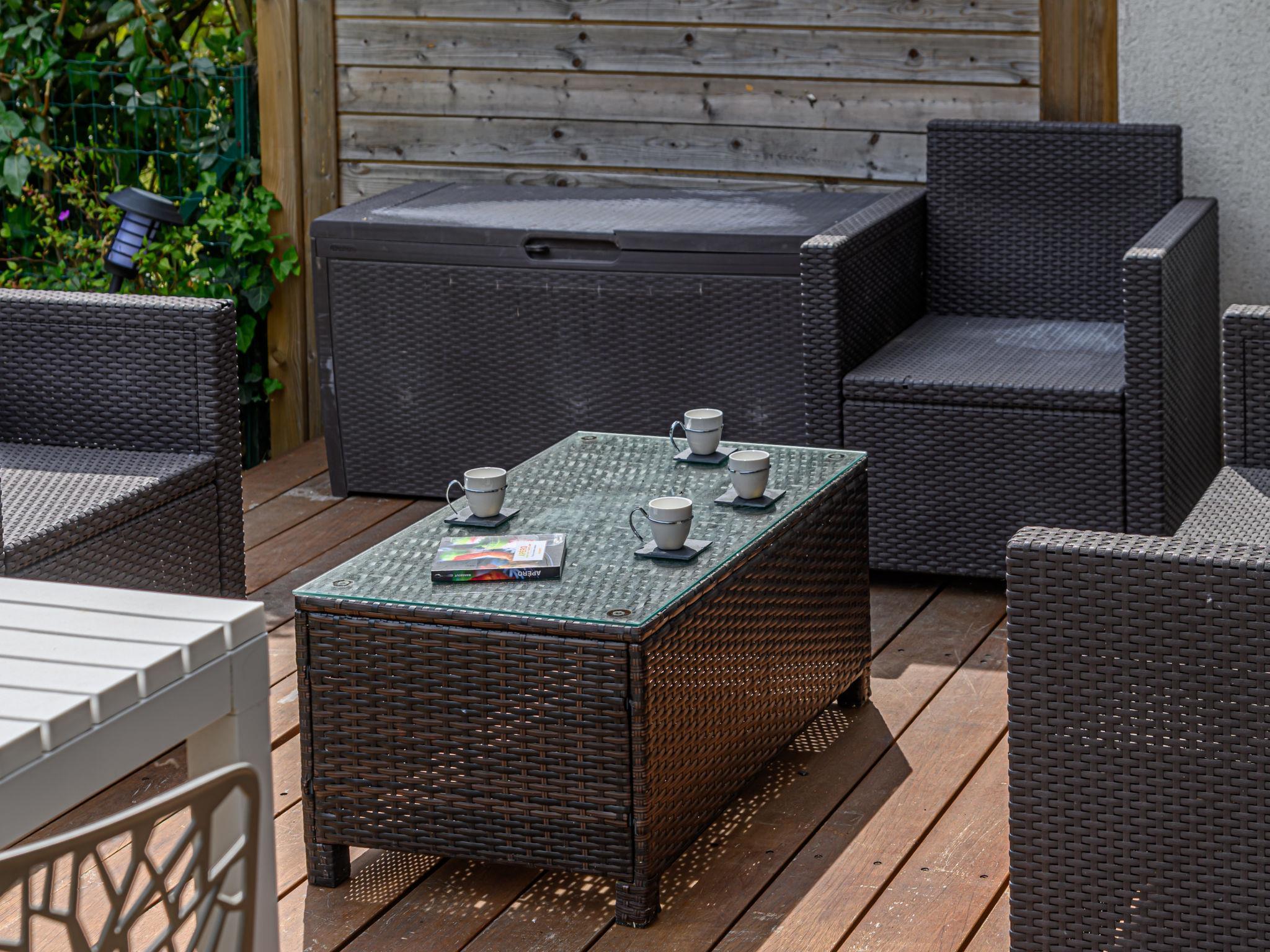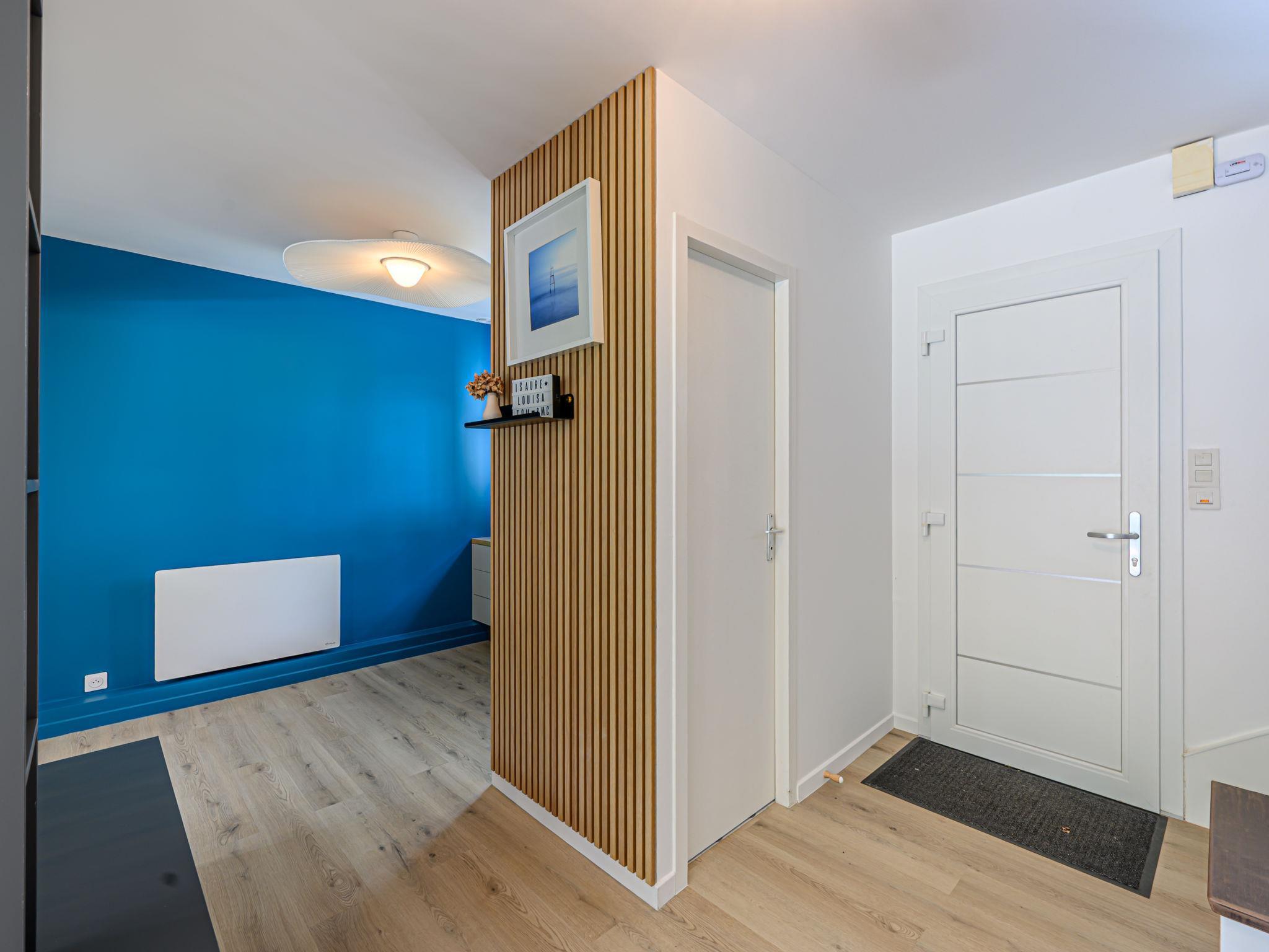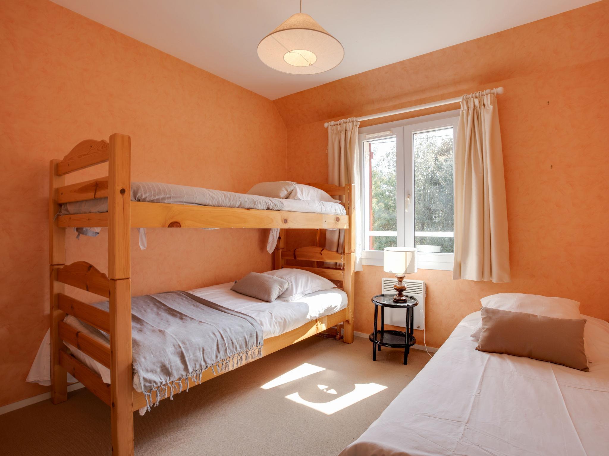Terraced house "Les Marines". In the resort 900 m from the centre of Carnac Plage, 130 m from the sea, 130 m from the beach. Parking at the house, single garage. Shop, grocery 900 m, supermarket 400 m, bakery 600 m, 5 minute walk to the centre, sandy beach "Grande Plage" 130 m, diving center 4 km, thermal baths "Thalassothérapie de Carnac" 1.3 km. Marina 4 km, golf course (18 hole) 15 km, surf school 6 km, sailing school 900 m, tennis 600 m. Nearby attractions: Les Alignements de Carnac 3 km, La Trinité sur Mer 4 km, Golfe du Morbihan 8 km, Quiberon 15 km, Vannes 35 km, Lorient 55 km.