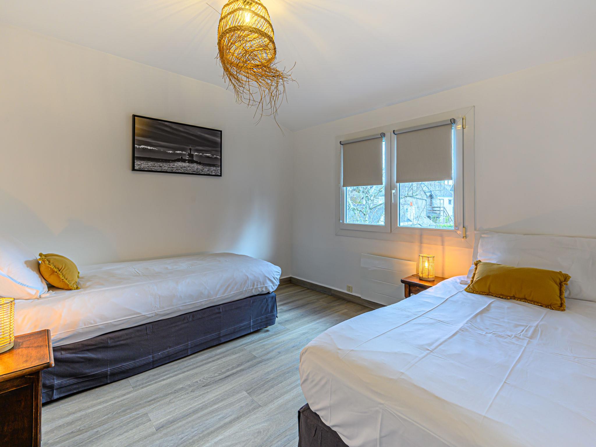 "Arvor", 5-room terraced house 110 m2. Fully renovated in 2023, comfortable furnishings: living/dining room with TV (flat screen). Exit to the garden. Open kitchen (dishwasher, 3 induction hot plates, toaster, kettle, microwave, electric coffee machine). Sep. WC. Upper floor: 1 room with 1 french bed (1 x 160 cm, length 200 cm). 1 room with 1 french bed (1 x 140 cm, length 190 cm). 1 room with 2 beds (80 cm, length 190 cm). 1 room with 2 beds (90 cm, length 190 cm). Bath/WC, shower/WC. Electric heating. Terrace 15 m2, south facing position, garden 150 m2. Terrace furniture, barbecue. Facilities: washing machine, dryer, iron, hair dryer. Internet (WiFi, free). Parking. Please note: smoke alarm. Offer by a private individual according to Art. 155, IV of CGI. 5603400065998