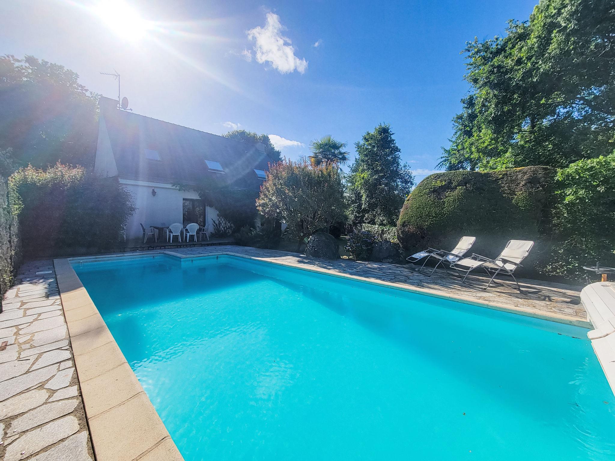 Large single-family house "Kergrim", 2 storeys, surrounded by trees. 7 km from the sea, 7 km from the beach. Private: garden 980 m2 (fenced), swimming pool heated (8 x 4 m, seasonal availability: 24.Jun. - 23.Sep.). Terrace (20 m2), garden furniture, barbecue, parking (for 3 cars). Supermarket 4 km, restaurant 4 km, bakery 4 km, café 4 km, sandy beach "Grande plage Carnac" 7 km. Golf course (18 hole) 7 km, surf school 5 km, sailing school 7 km. Nearby attractions: Les Alignements de Carnac 5 km, Port de la Trinité sur Mer 7 km, Presqu'île de Quiberon 15 km, Vannes 30 km. Hiking paths: Golf du Morbihan.